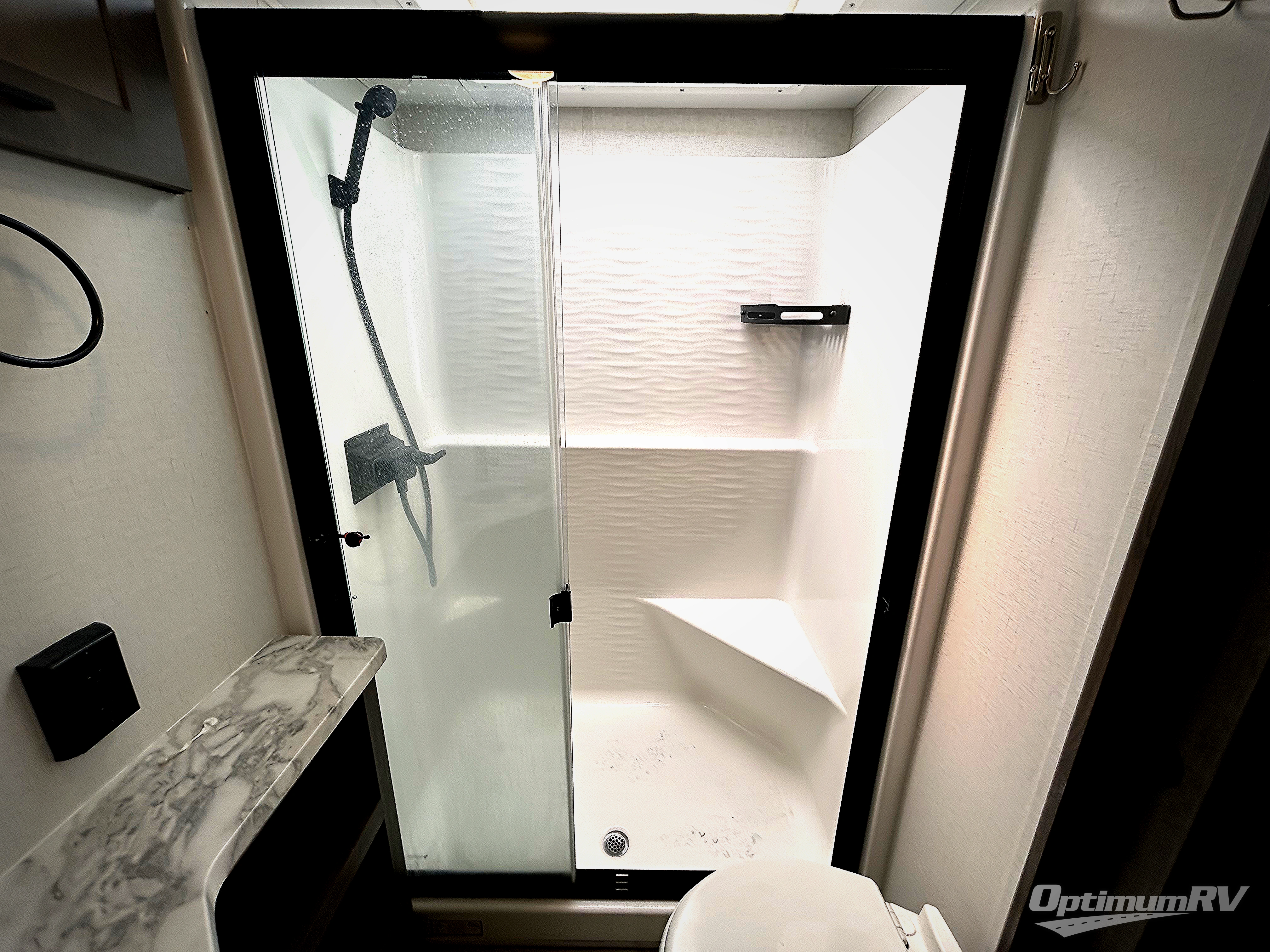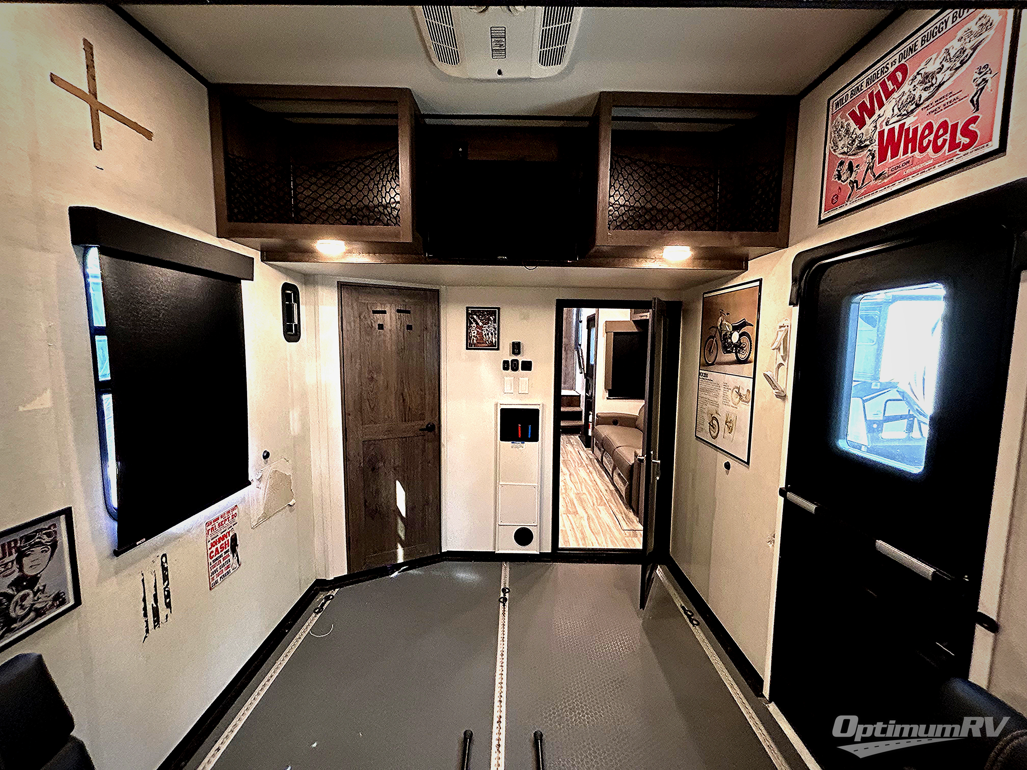 You won't believe all that this toy hauler has to offer! From the front private bedroom with a king bed slide for more walking around space and an entrance into the dual entry bathroom to the rear HappiJac roll-over sofas and two areas prepped to add optional washer and dryers. The 13' garage space also has one of the dual entry doors, a half bathroom, a loft, and a 8' weather resistant ramp door. The kitchen has plenty of countertop space and a three burner cooktop for you to prepare your best meals. After a fun day on the trails, relax on the sofa slide and watch your favorite movie on the 50" HDTV and fire up the fireplace below it for a truly comfortable evening!
