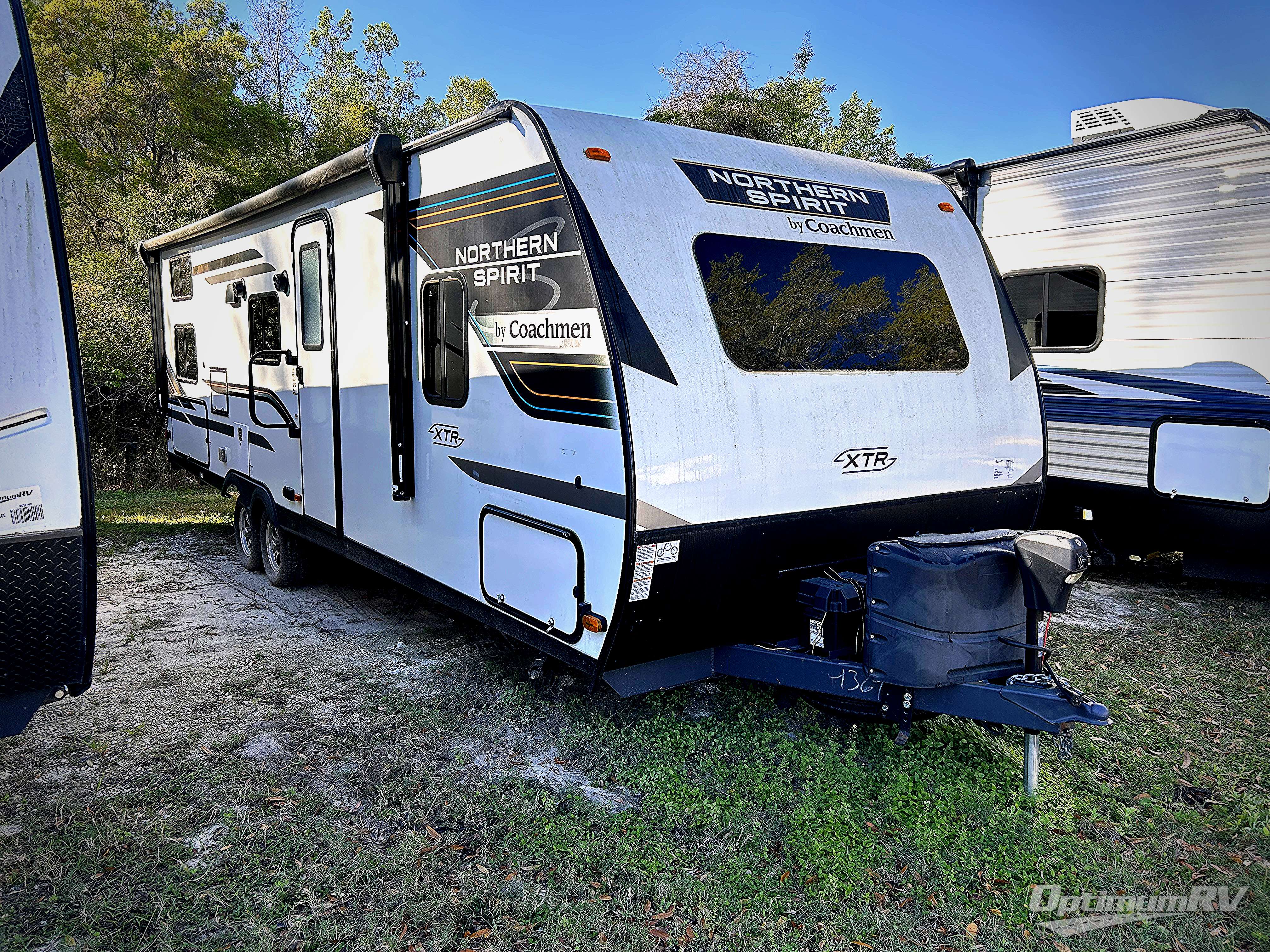 With any Northern Spirit XTR travel trailer by Coachmen you will enjoy years of use thanks to the solid construction that includes Azdel composite panels, a Tufflex PVC roof membrane, and laminated sidewalls. The panoramic front window will allow natural light in and make the area feel more open, and the "Twice Cool" dual ducted A/C unit will keep you cool during those summer camping months. Each model is pet friendly thanks to the exterior dog wash and dog leash clip, and the heated and enclosed underbelly will help extend your camping season. These travel trailers include ample storage space, including a pass-through storage with a motion activated light and Max Bed Storage on all models except 2146BHX that includes a versatile Murphy bed instead. Enjoy a little eXTRa with the Northern Spirit XTR travel trailers!
