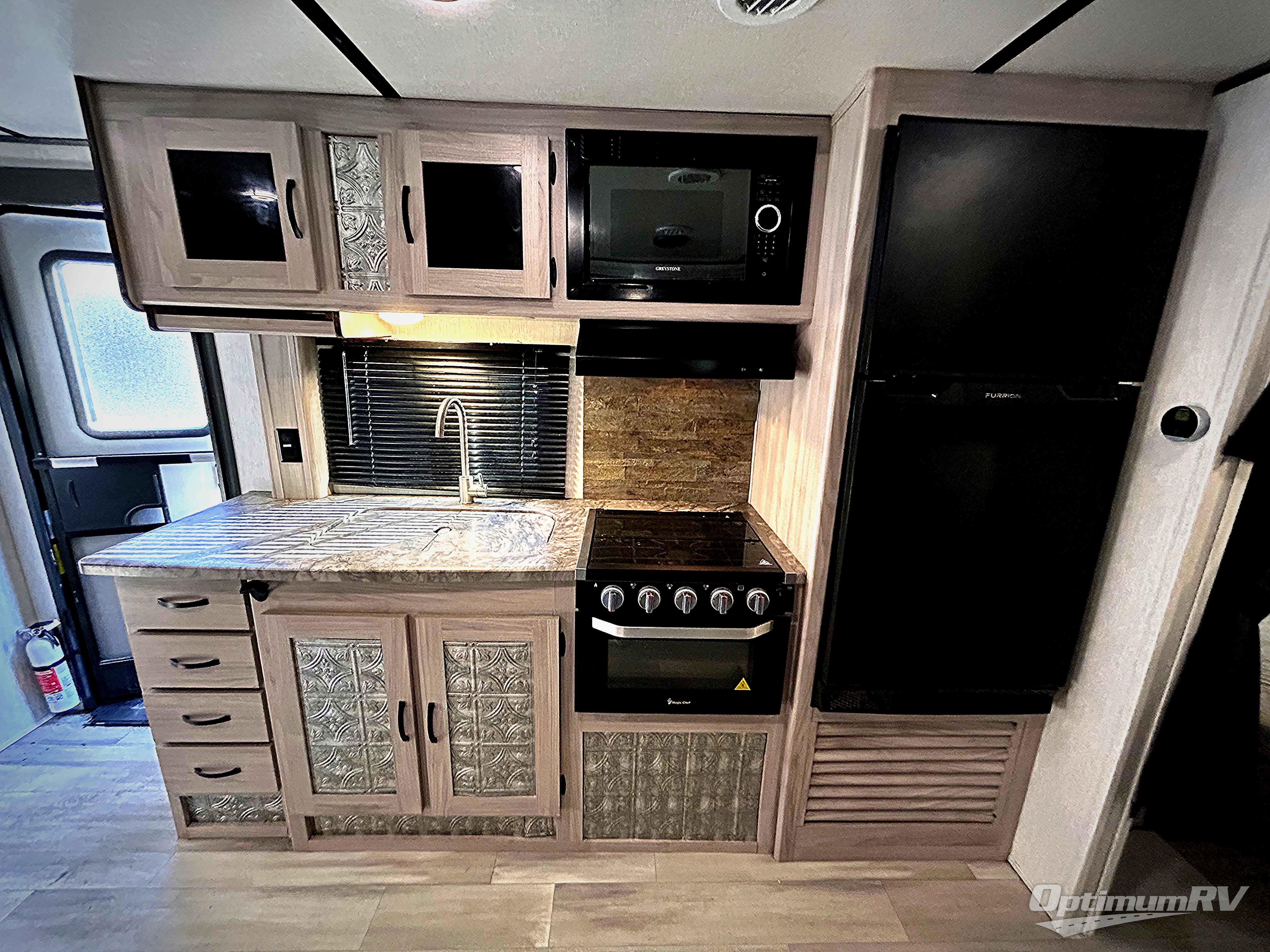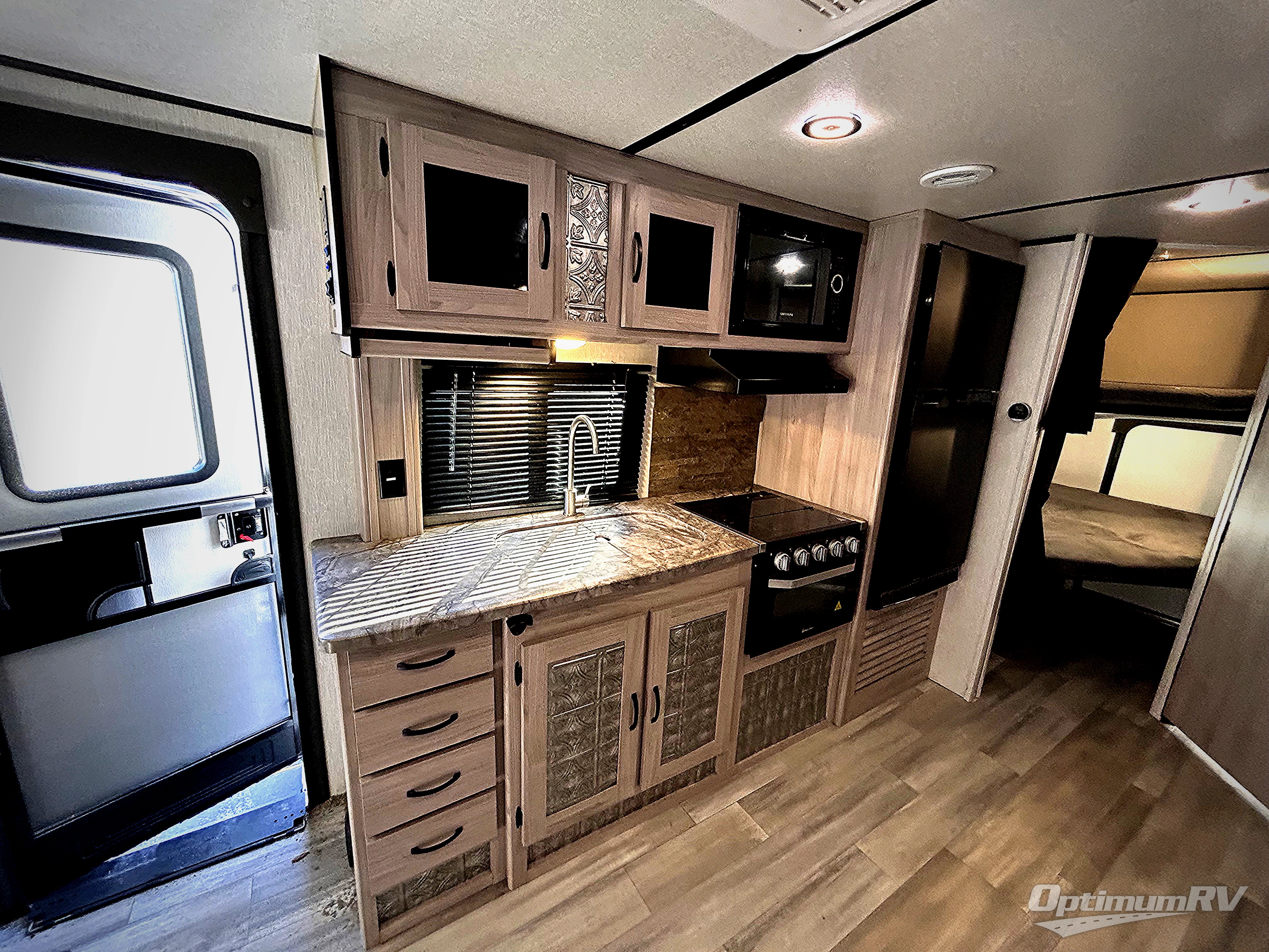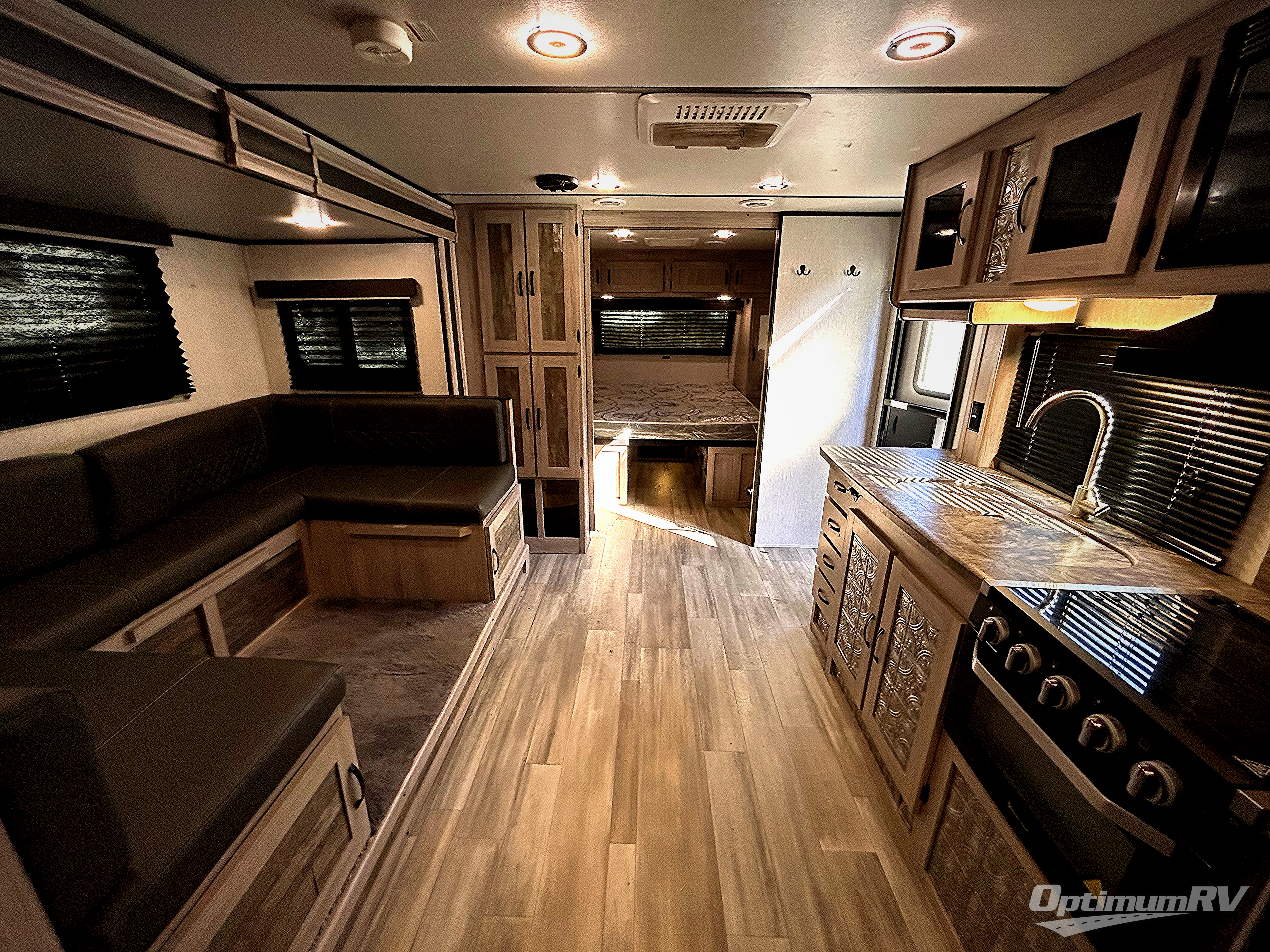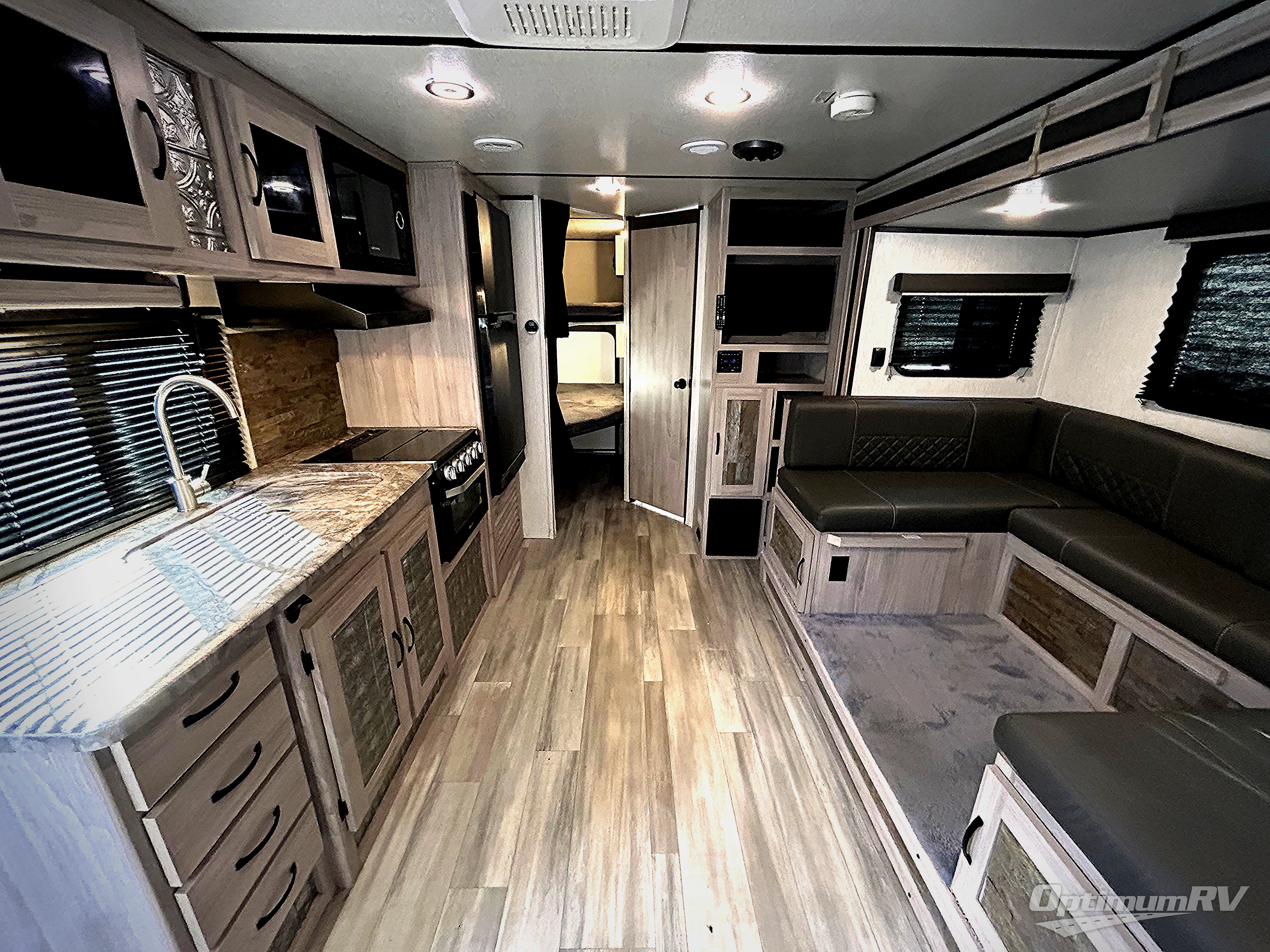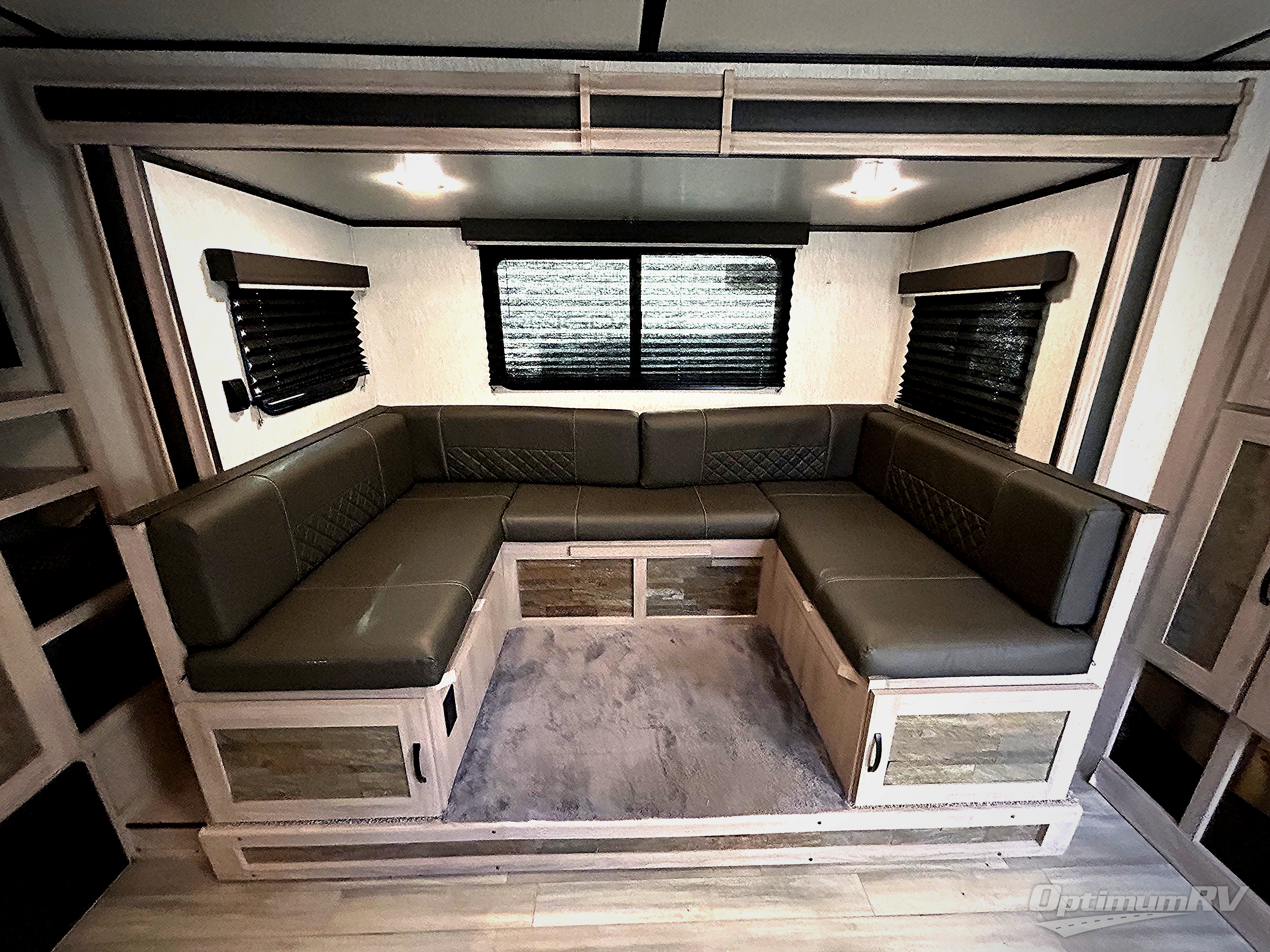 You can't go wrong with this travel trailer in tow! Once you arrive at the campground, set up the 20' power awning, then make a quick lunch on the exterior camp kitchen before heading out on a trail. There is a full bath inside that will allow you to clean up after your adventures, and sleeping space for eight between the double-size bunks, the queen bed, plus the U-shaded dinette within the slide out. After you've rested, you may want to watch a movie on the LED TV, and don't forget to grab your snacks from the pantry!