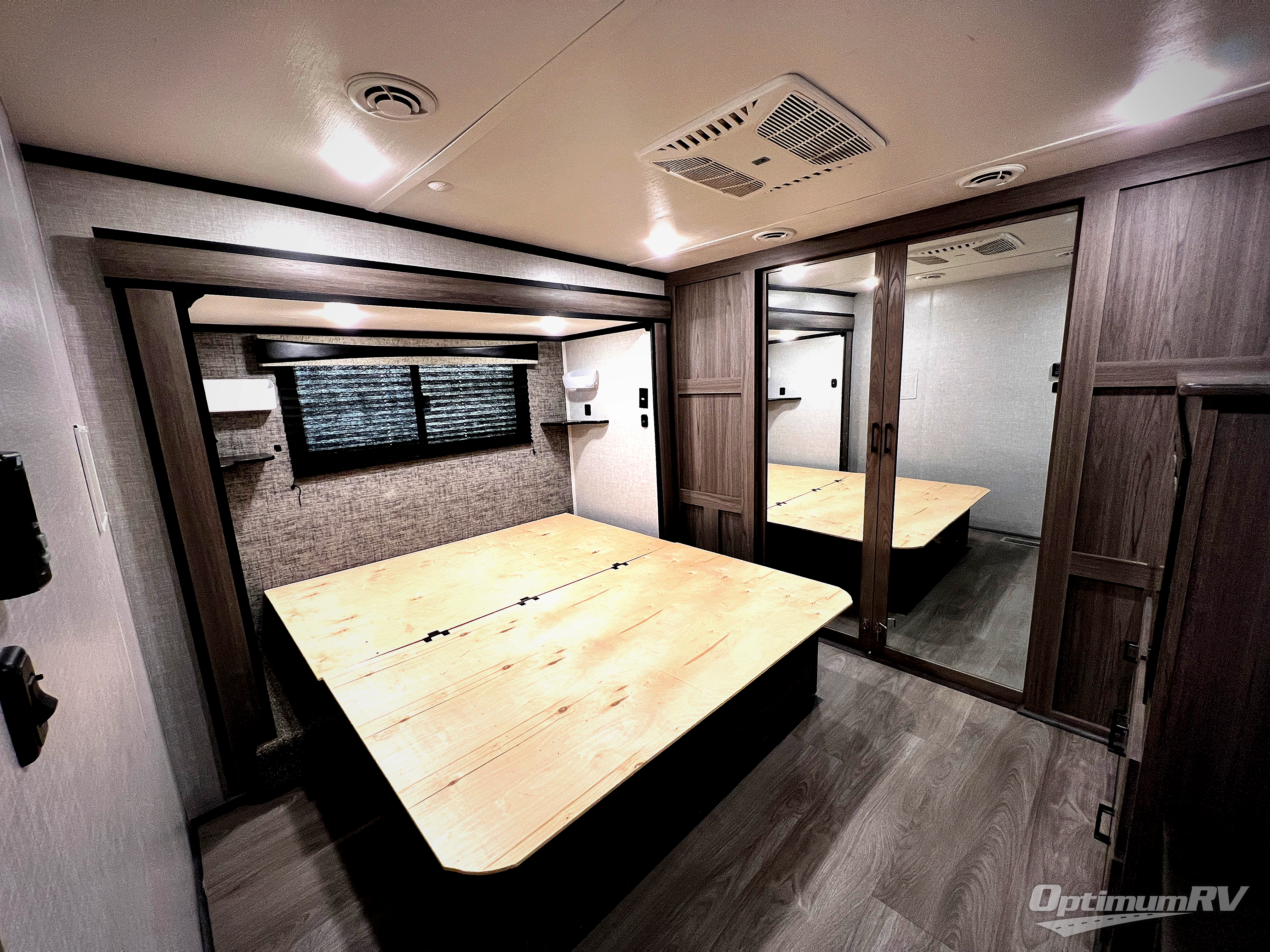 Every element of your home has been considered when creating these CrossRoads RV Cameo fifth wheels! From the oversized pantries, master suites, and full size theater seats with heat and massage to durable construction with the largest I-beam chassis in the industry. They also have the industry's first front windshield, an aerodynamic profile, and a full walk-on roof with an Alpha Ply II roof material. These modern fifth wheels were created with the customer in mind which is why they have convenient features like pass-through heated storage, spacious walk-in closets, an AM/FM/Bluetooth sound bar, a 6-point hydraulic auto level, and a 2" receiving hitch with 4-way plug. The Twice Is Nice package adds even more comforts like dual fireplaces for cozy evenings inside, dual awnings to protect you rain or shine, dual A/C units to keep you cool on those hot summer days, and dual wireless charging stations so your electronics can be at 100%. Come find the right model for you!
