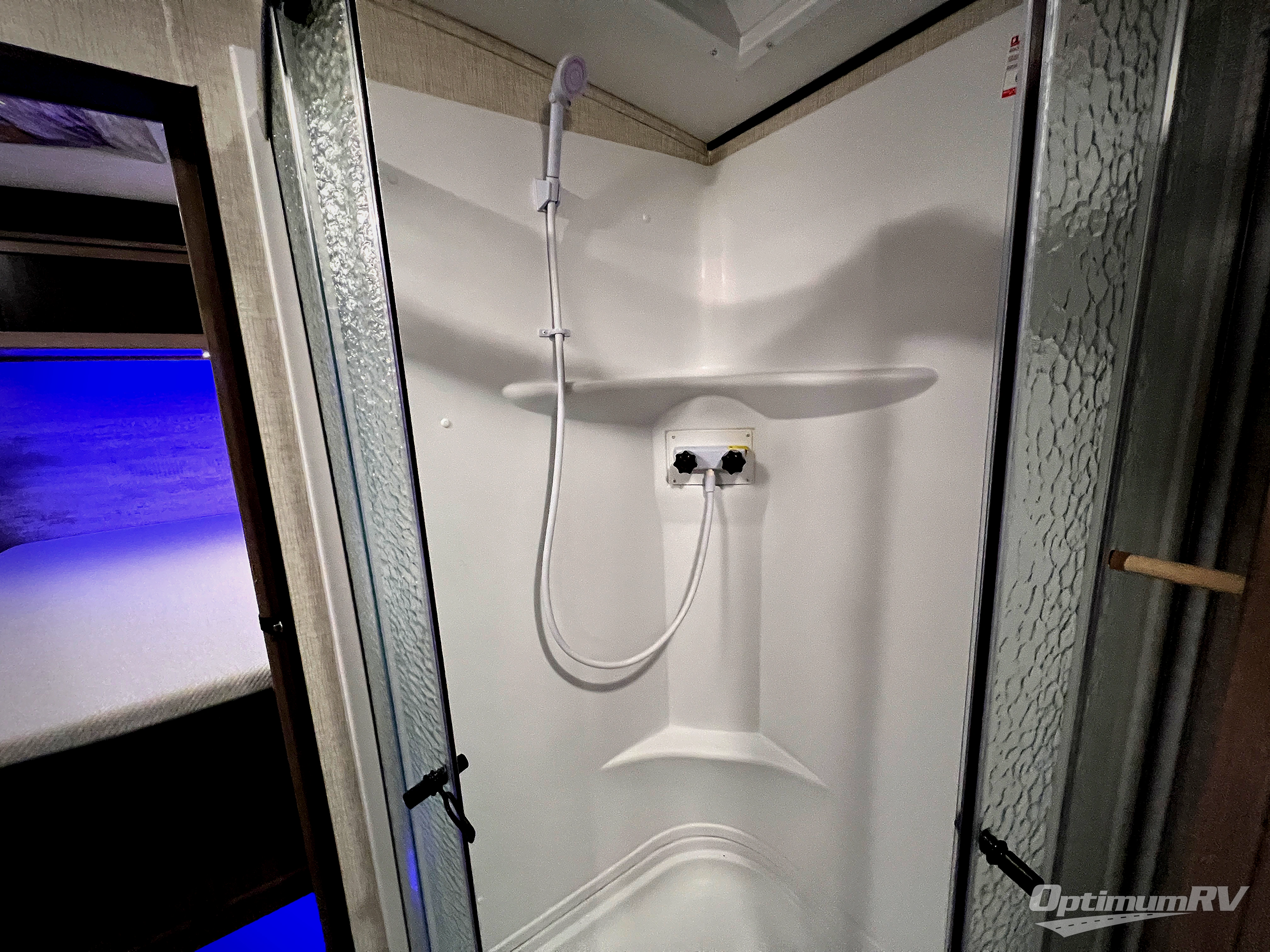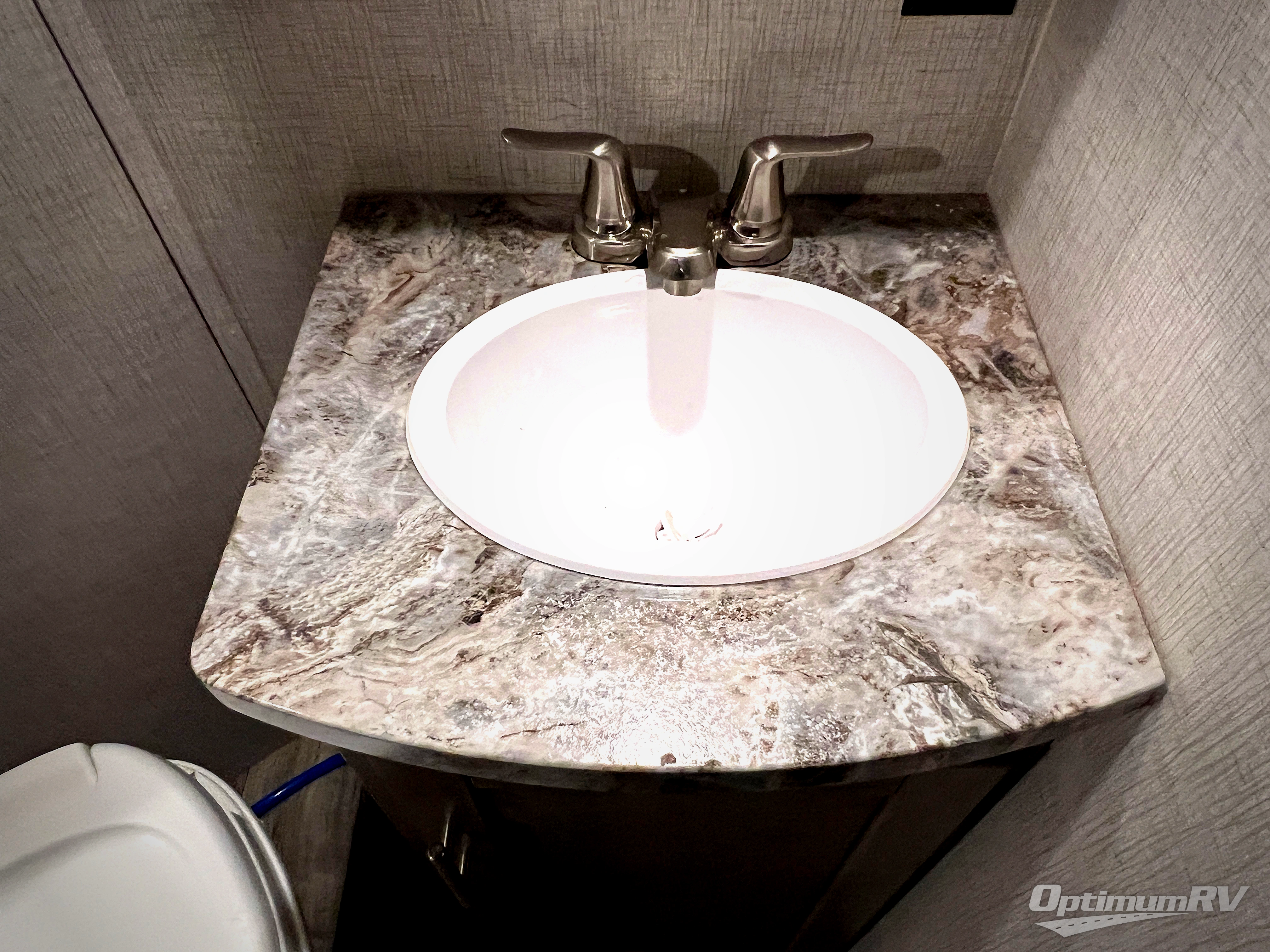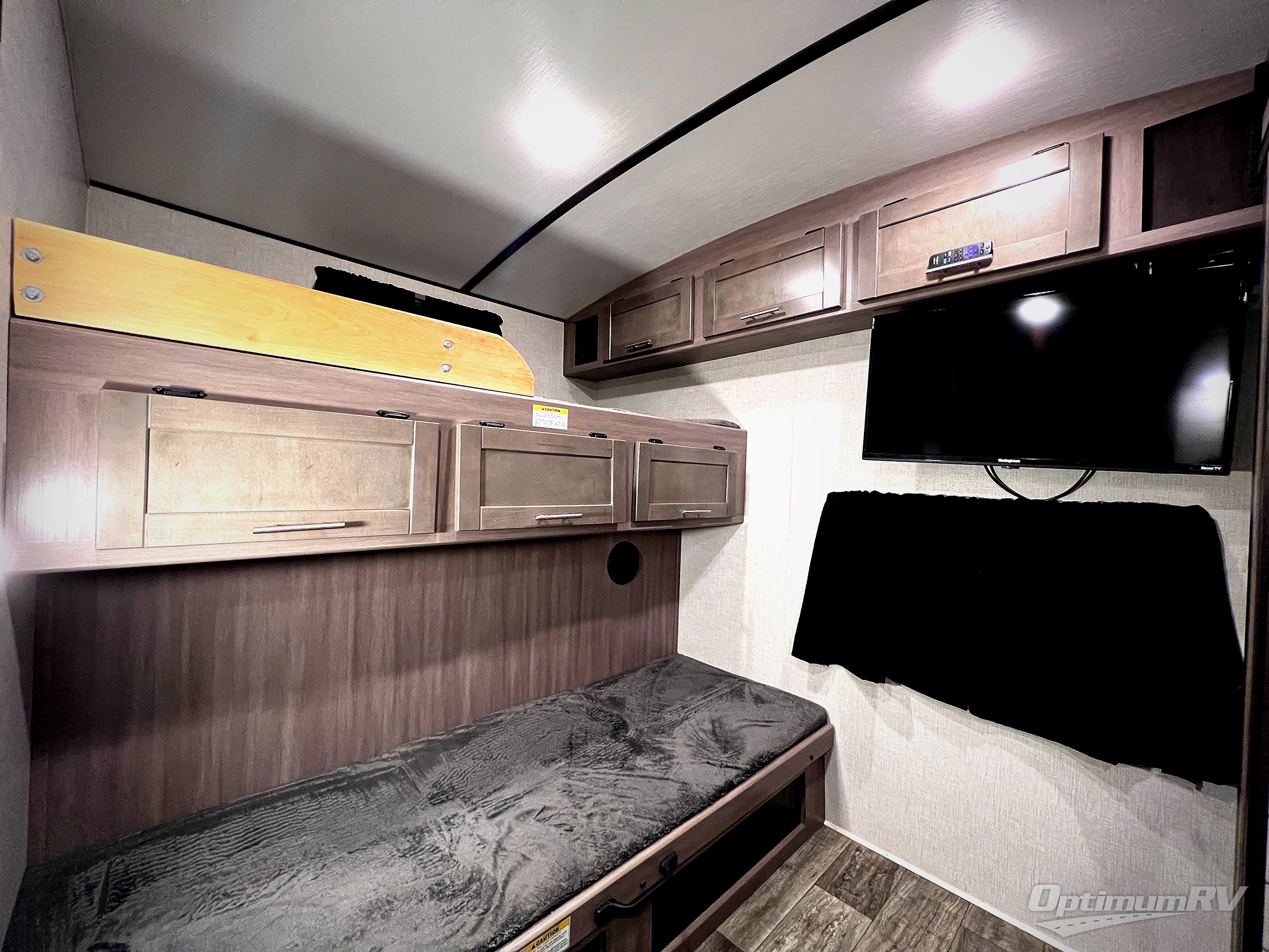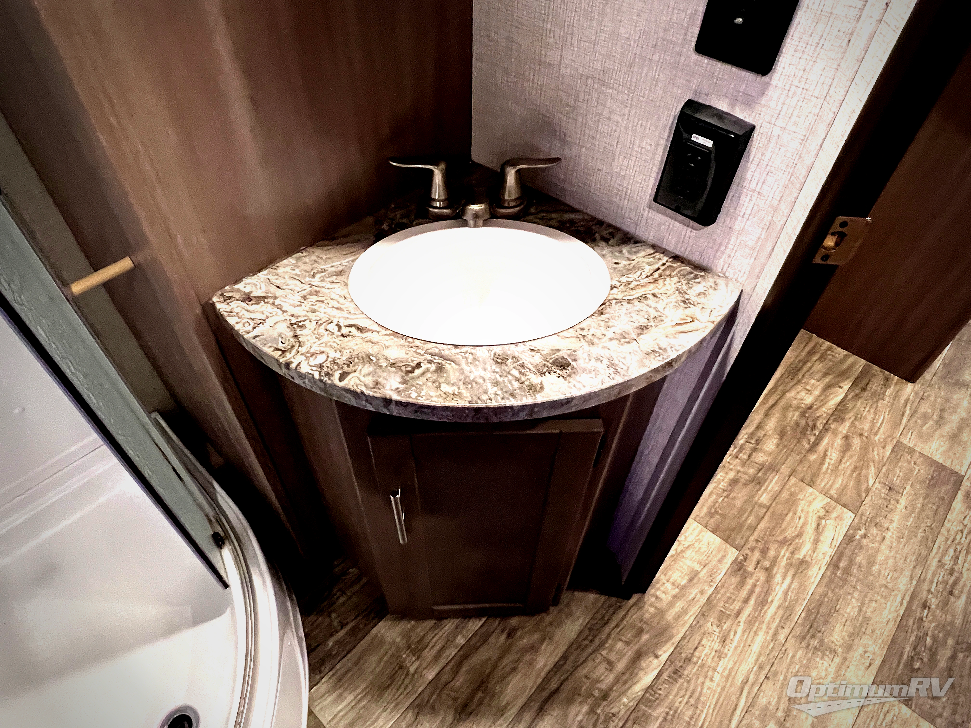 With any Sunset Trail travel trailer by CrossRoads RV, the interior offers a stainless steel farmhouse single bowl sink with a cover, solid surface countertops in the kitchen, a 12 volt refrigerator, USB ports in the bedroom and main area, and a Connexx entertainment TV with soundbar for inside enjoyment. Also included is the Extreme Weather package with maximum insulation with reflective foil, a 30,000 BTU furnace, and a 2" heat duct in the enclosed underbelly for four seasons of traveling. And the Blade Air system offers 20% more airflow and re-engineered components on the A/C. The HyperDeck flooring is water resistant, fiberglass reinforced and has polypropylene layers. Make your lightweight and comfortable RV decision today!