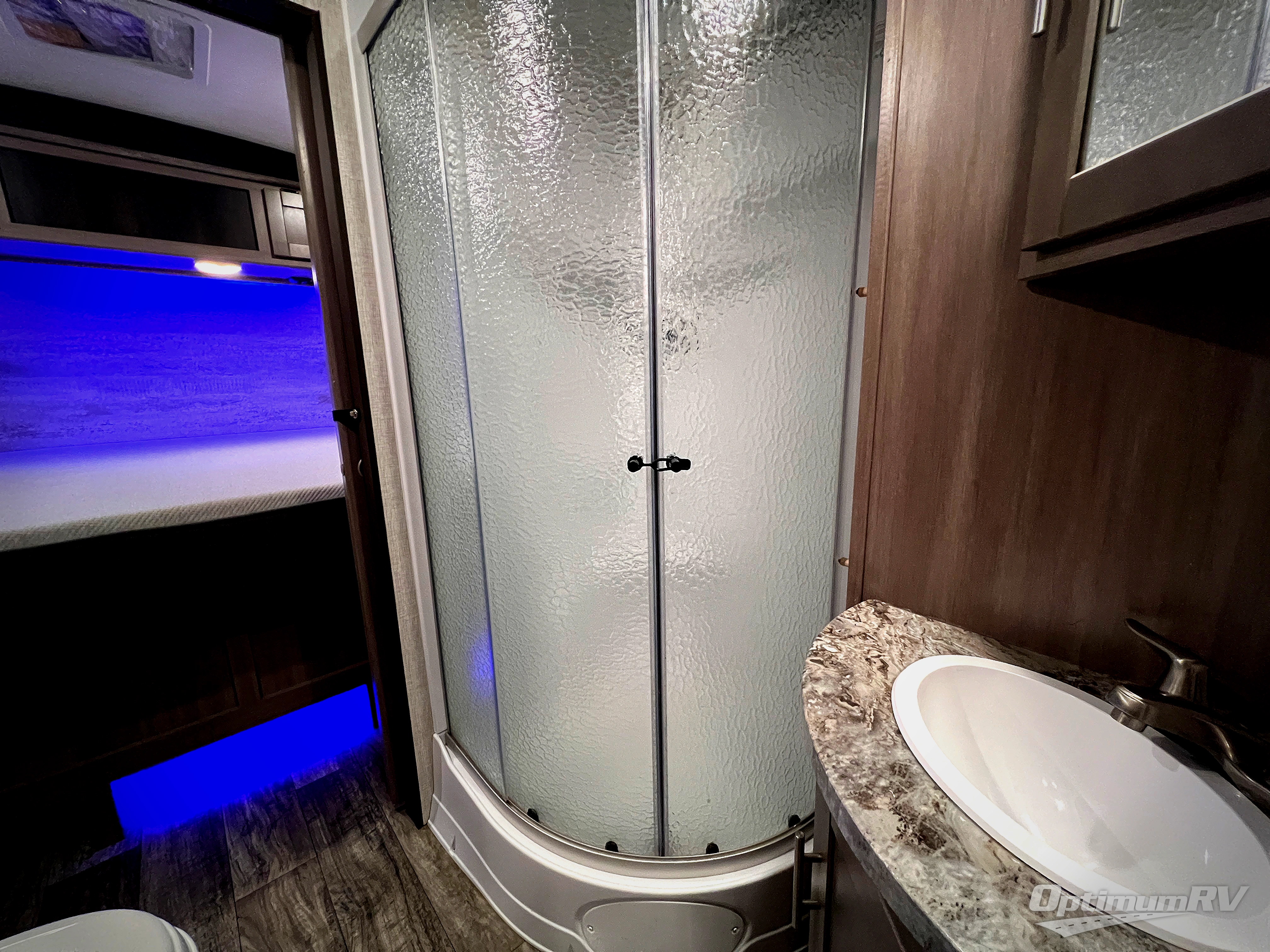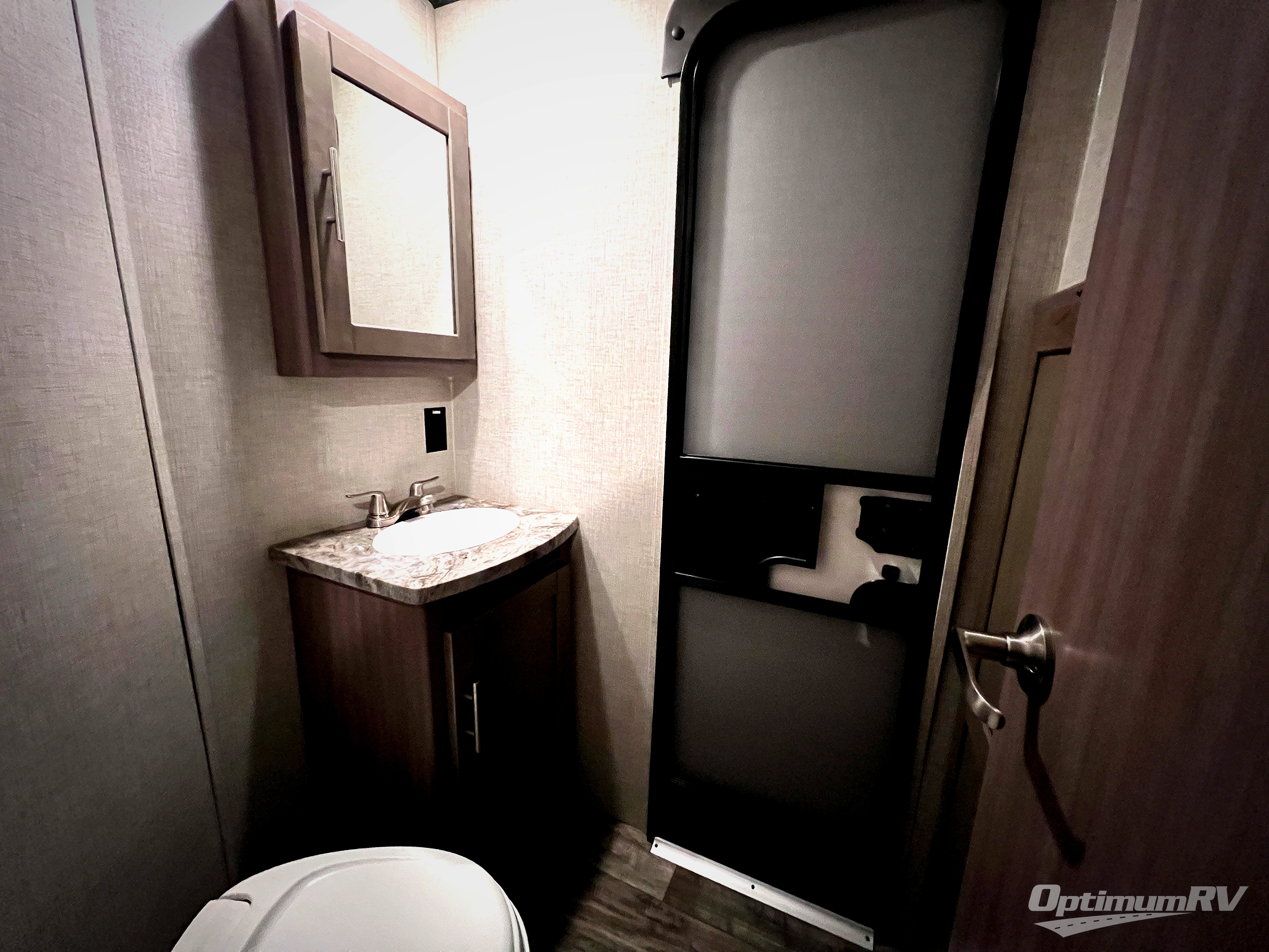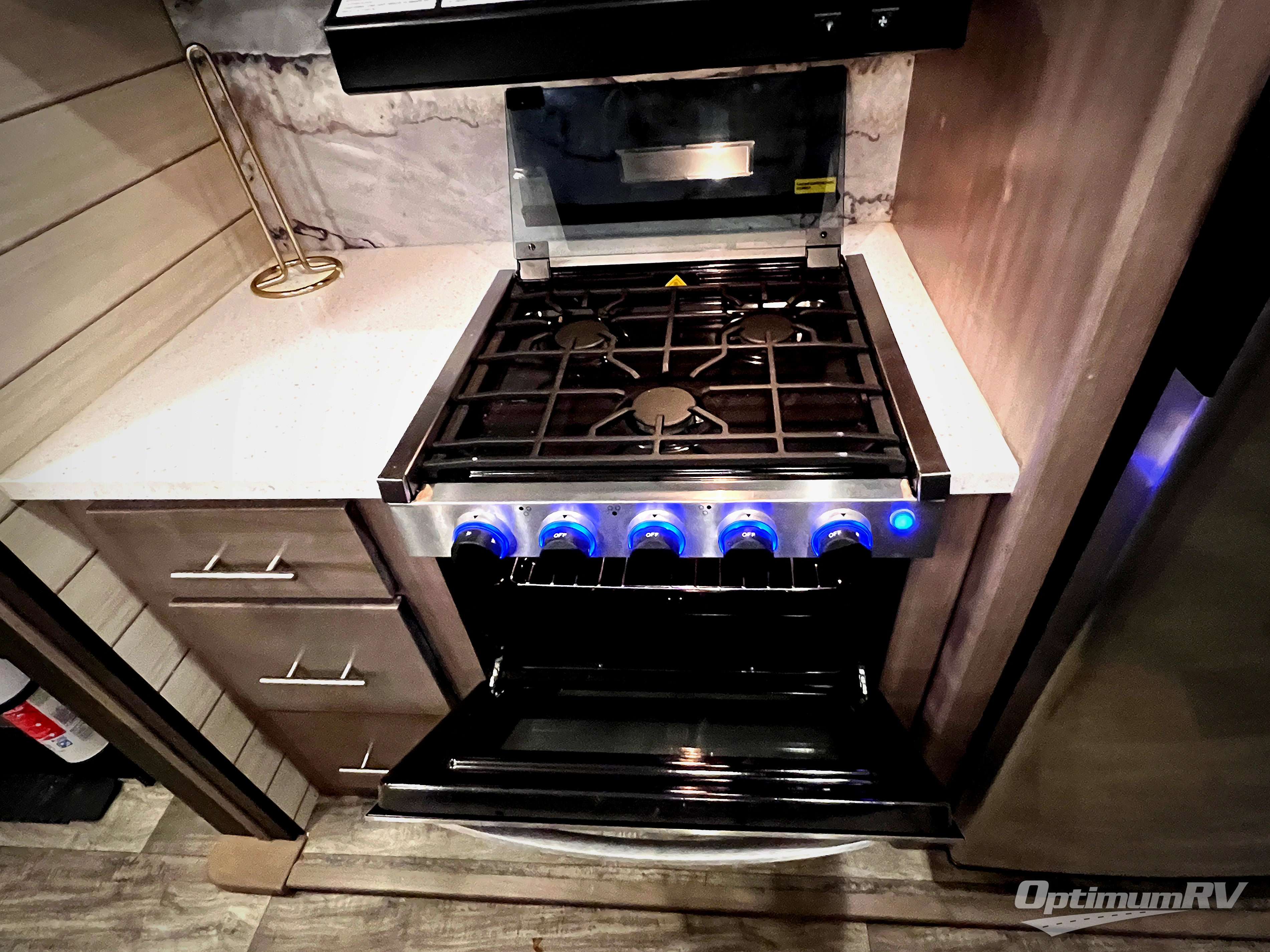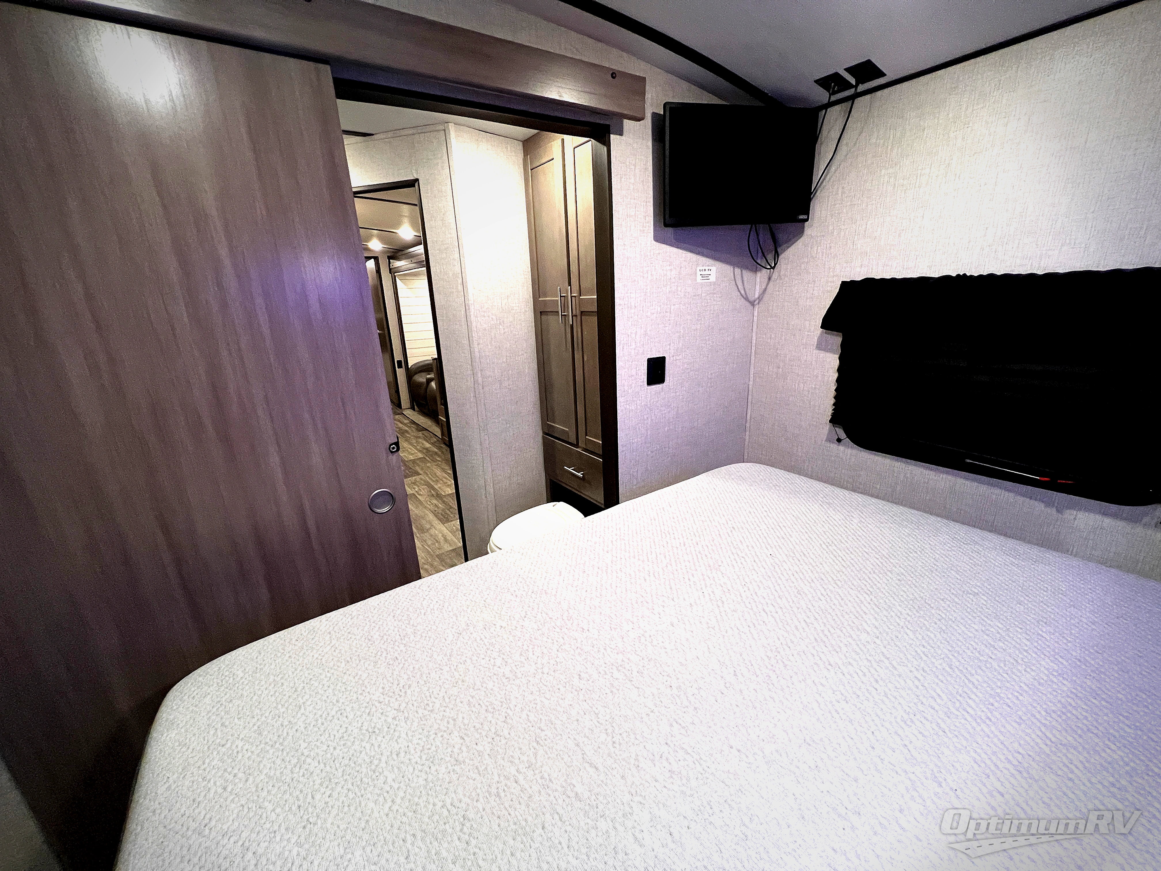 With any Sunset Trail travel trailer by CrossRoads RV, the interior offers a stainless steel farmhouse single bowl sink with a cover, solid surface countertops in the kitchen, a 12 volt refrigerator, USB ports in the bedroom and main area, and a Connexx entertainment TV with soundbar for inside enjoyment. Also included is the Extreme Weather package with maximum insulation with reflective foil, a 30,000 BTU furnace, and a 2" heat duct in the enclosed underbelly for four seasons of traveling. And the Blade Air system offers 20% more airflow and re-engineered components on the A/C. The HyperDeck flooring is water resistant, fiberglass reinforced and has polypropylene layers. Make your lightweight and comfortable RV decision today!