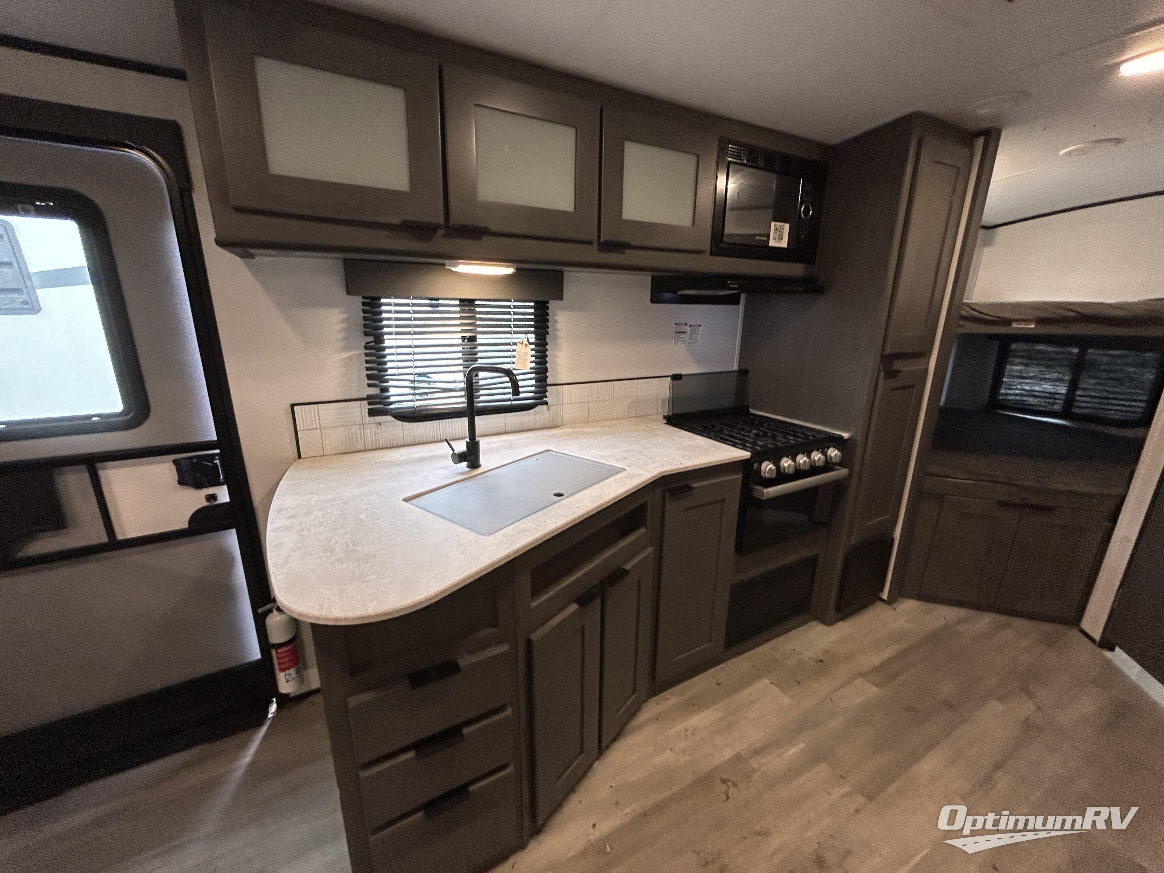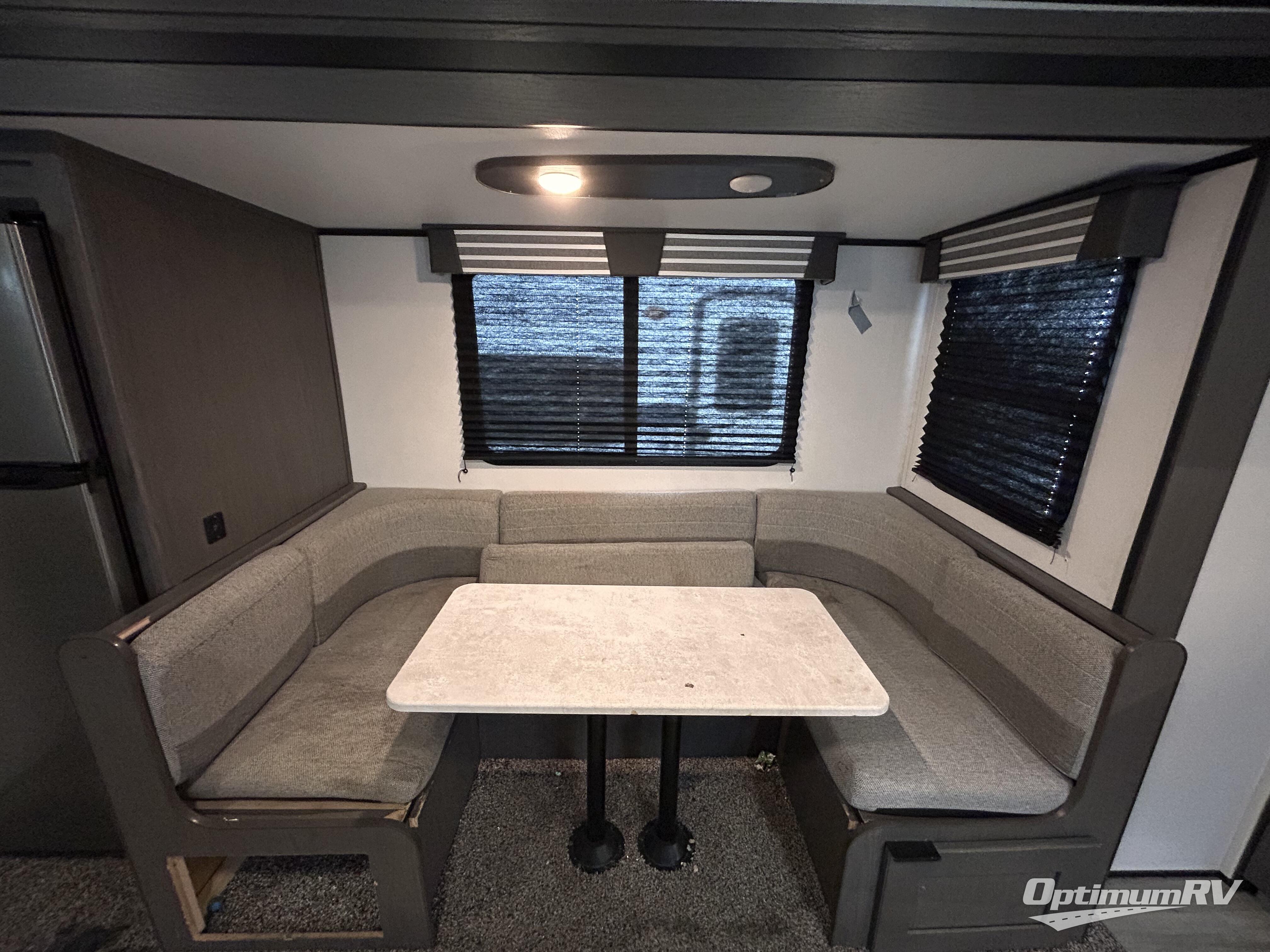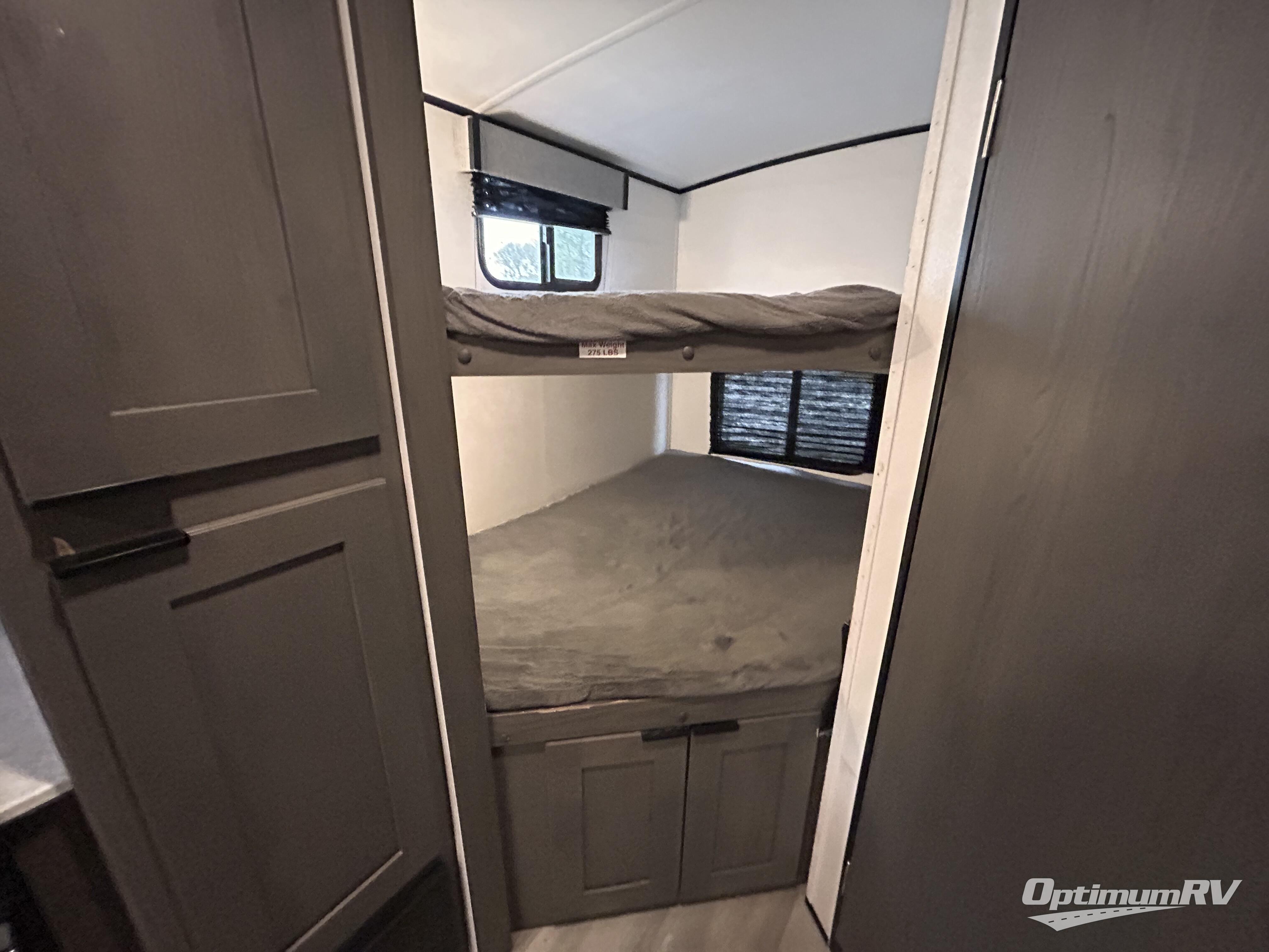 The whole family will love camping in this spacious travel trailer! There are double-size bunks for the little ones or your guests, a sliding king bed in the front private bedroom for you, plus a U-shaped dinette within the large slide out in the main living area to dine at or even sleep on. The chef can cook indoors on the three burner cooktop, or outdoors at the outside kitchen. And the rear corner full bathroom will keep everyone refreshed after being outdoors all day. There is a 19' patio awning to relax under and a full belly storage system to store the yard games in.