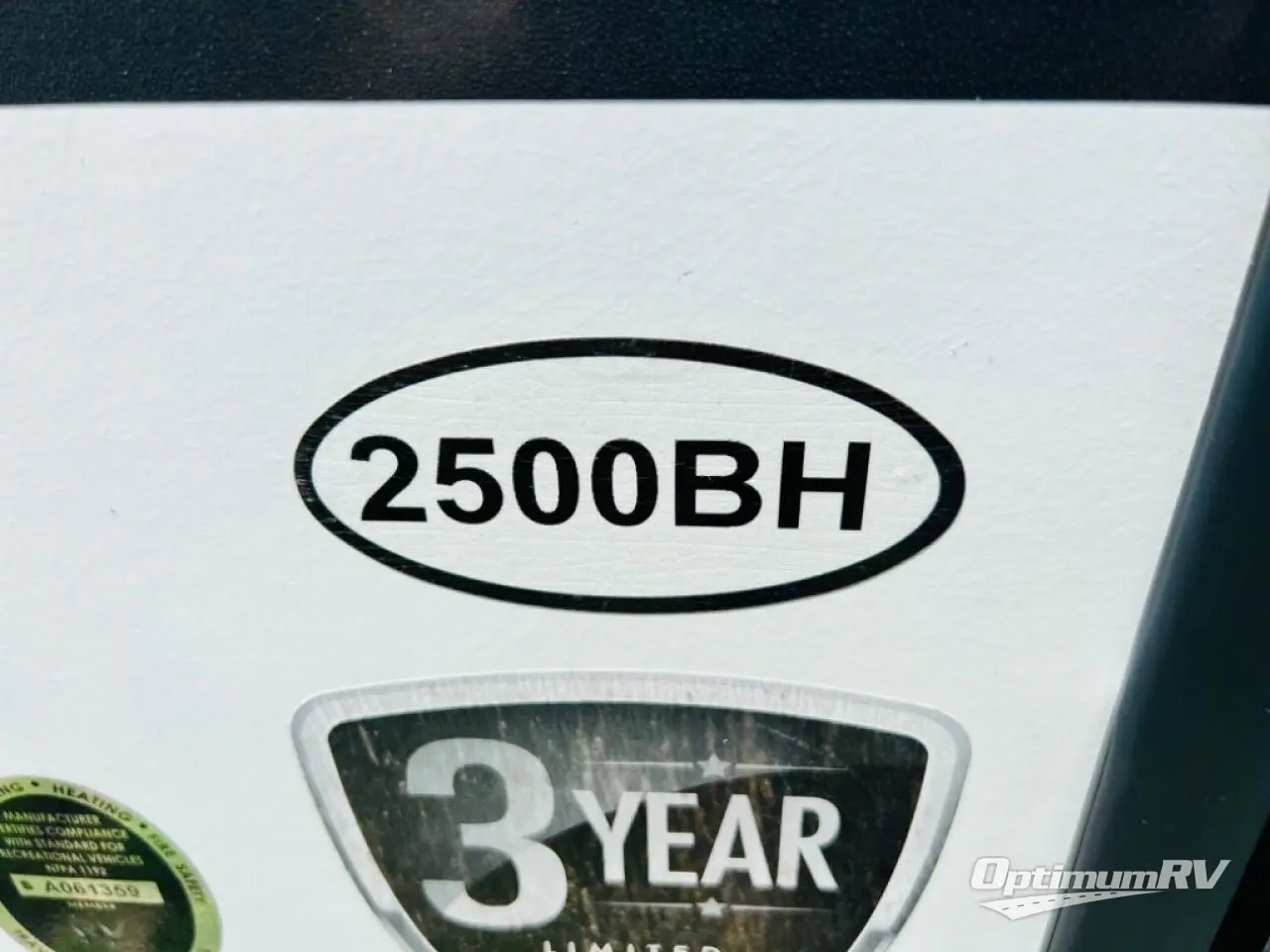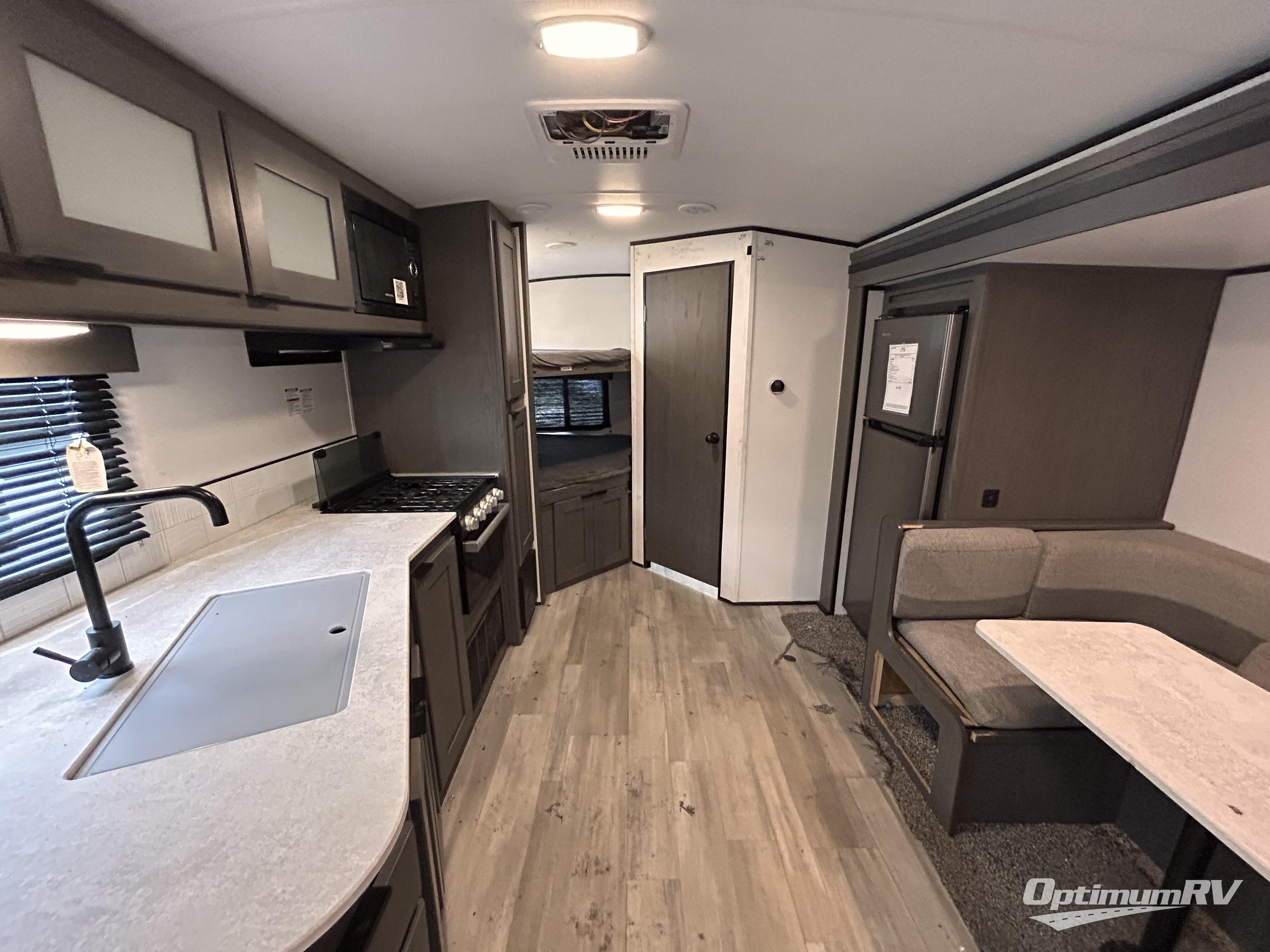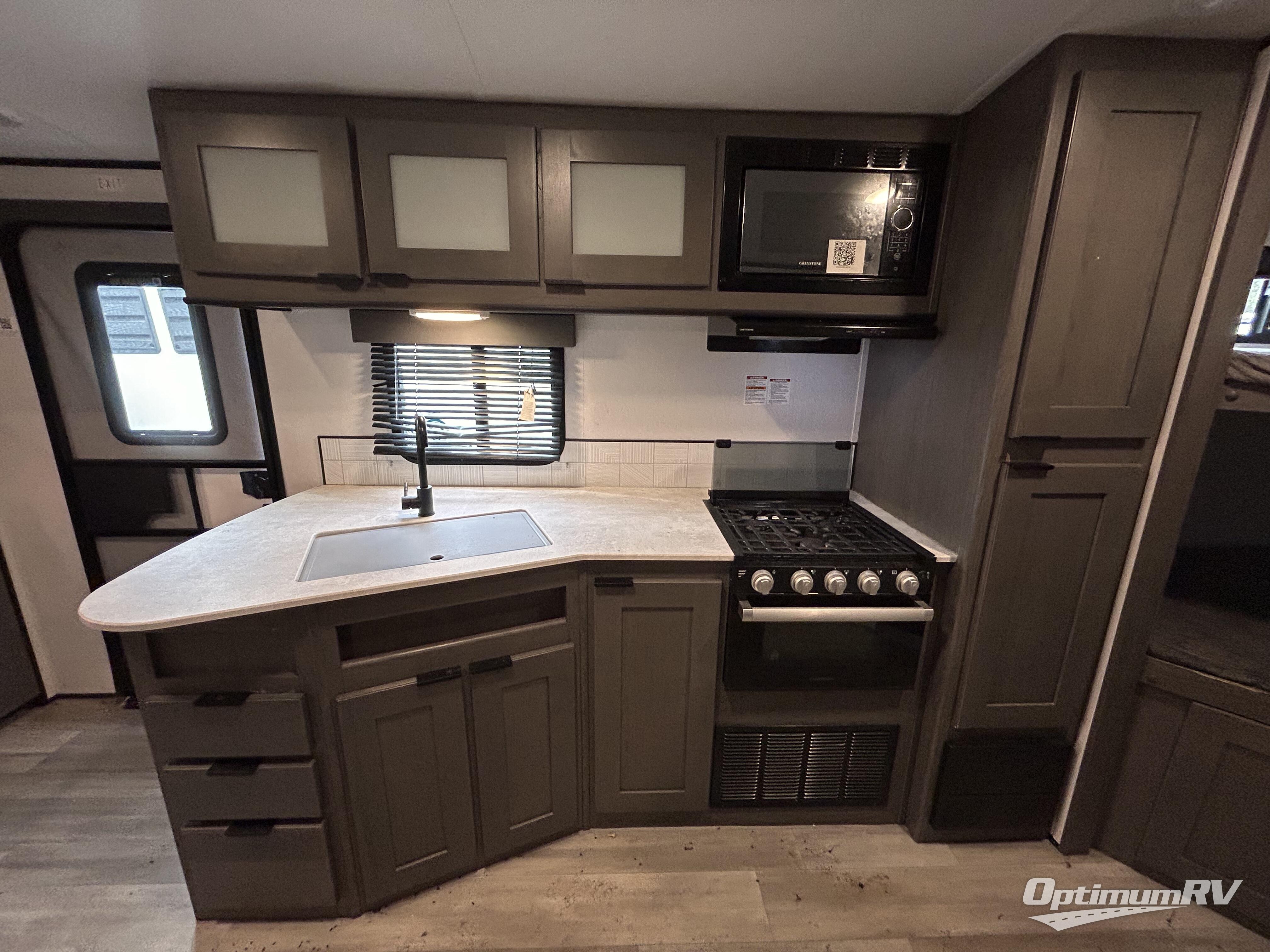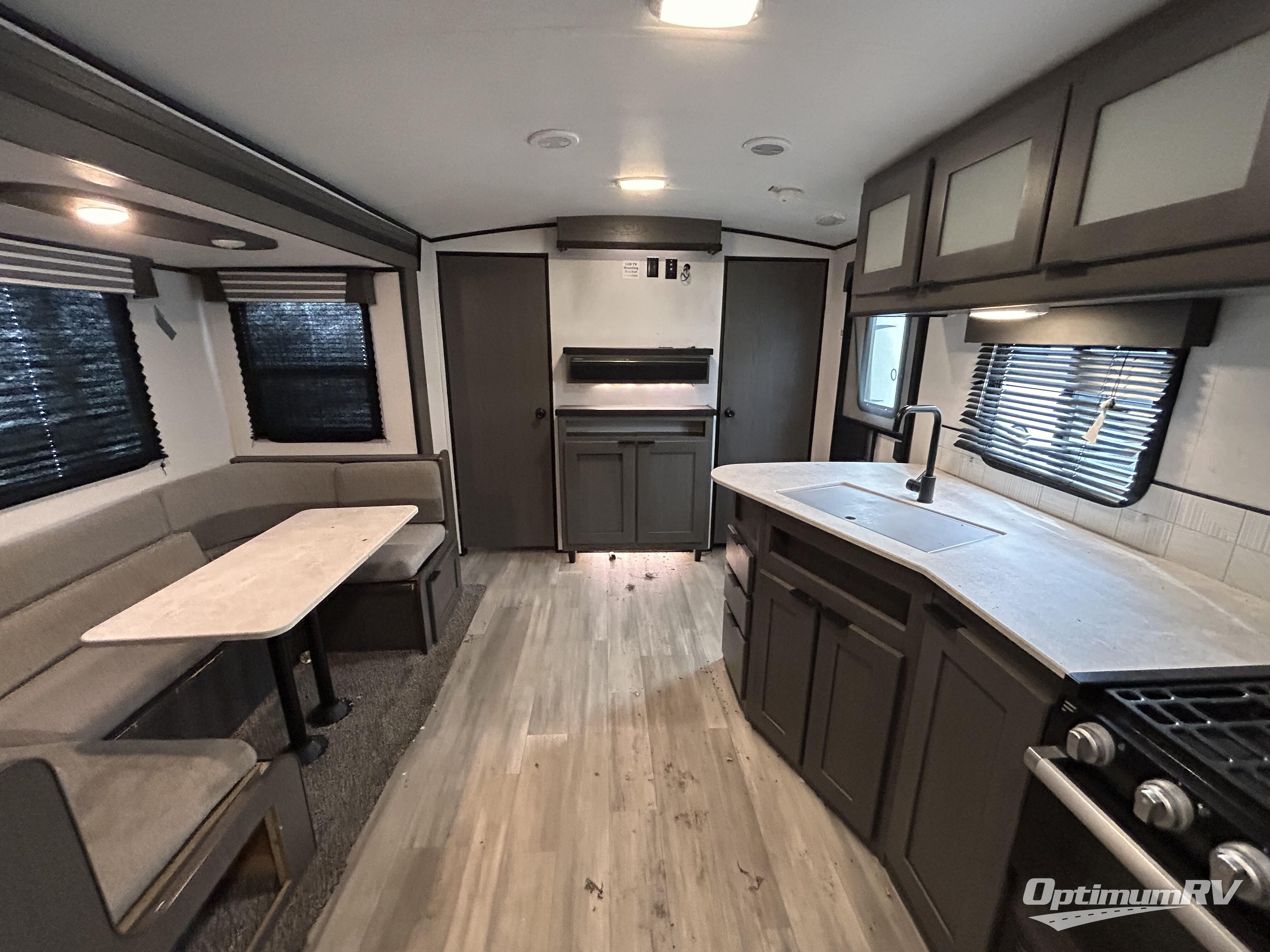 The whole family will love camping in this spacious travel trailer! There are double-size bunks for the little ones or your guests, a sliding king bed in the front private bedroom for you, plus a U-shaped dinette within the large slide out in the main living area to dine at or even sleep on. The chef can cook indoors on the three burner cooktop, or outdoors at the outside kitchen. And the rear corner full bathroom will keep everyone refreshed after being outdoors all day. There is a 19' patio awning to relax under and a full belly storage system to store the yard games in.