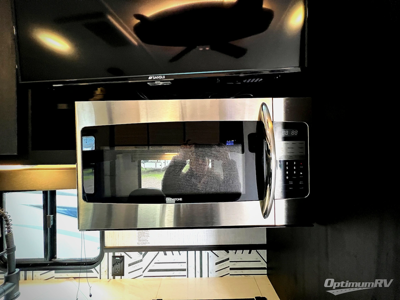 Lace up your riding boots, grab your helmet, and hold on for a wild ride in this toy hauler. You will have an 8' ramp door to easily load your toys in the 13' 4" garage, plus 5,000 lb. tie-down rings to keep everything secure on the way to the campground. Once the bikes are unloaded, set up the 16' power awning to enjoy a cold drink, or head inside to relax on the opposing sofas with a dinette. Your guests can sleep here, as well as the power queen bed above the dinette. This model includes a three burner cooktop and a large residential microwave oven for your best meals, and the high-rise pull-out faucet will make clean up a breeze. When you're ready to wind down for the night, you'll find a spacious shower with a skylight in the dual entry bath, and a king bed in the master bedroom for a great night's rest!