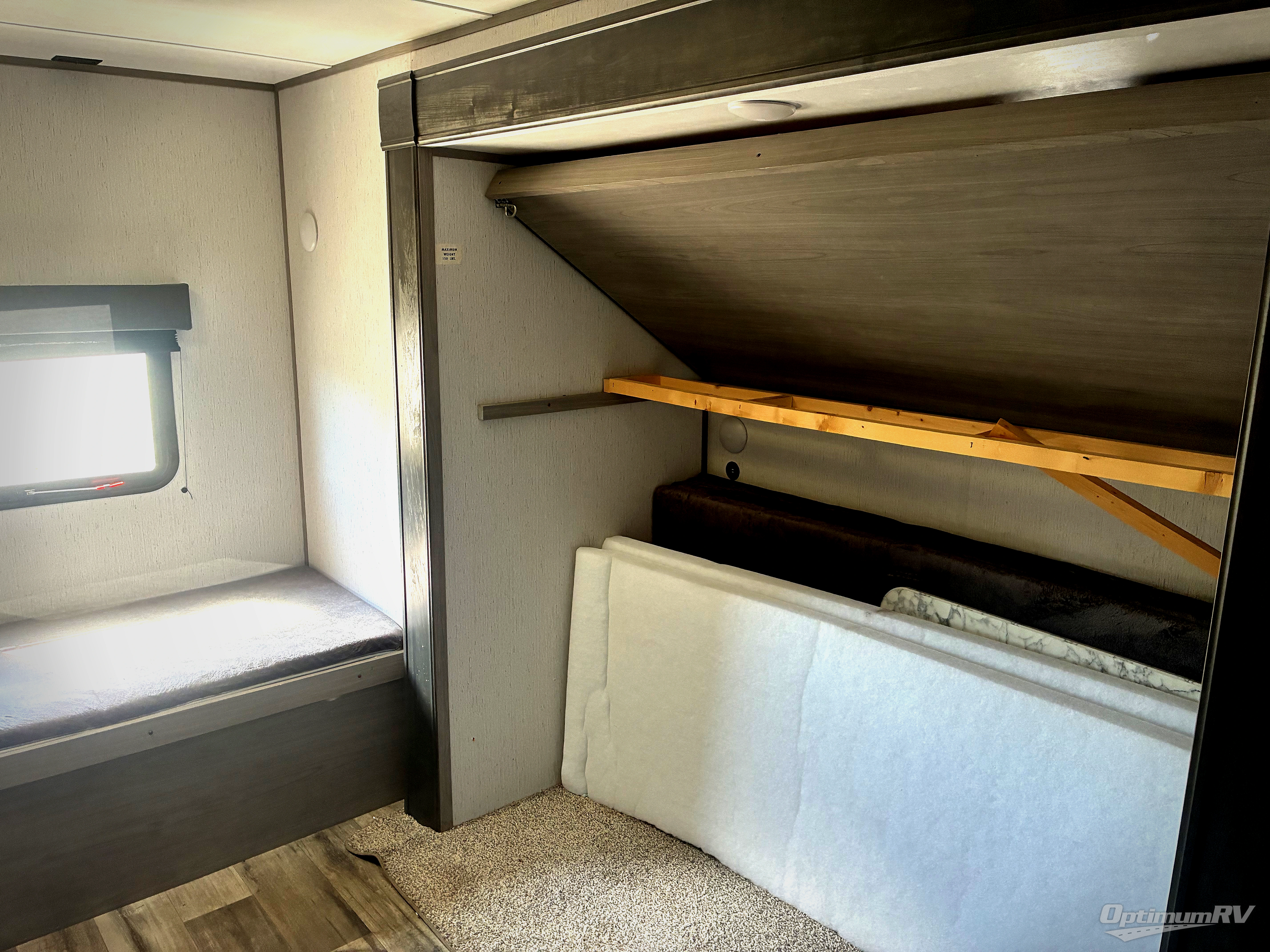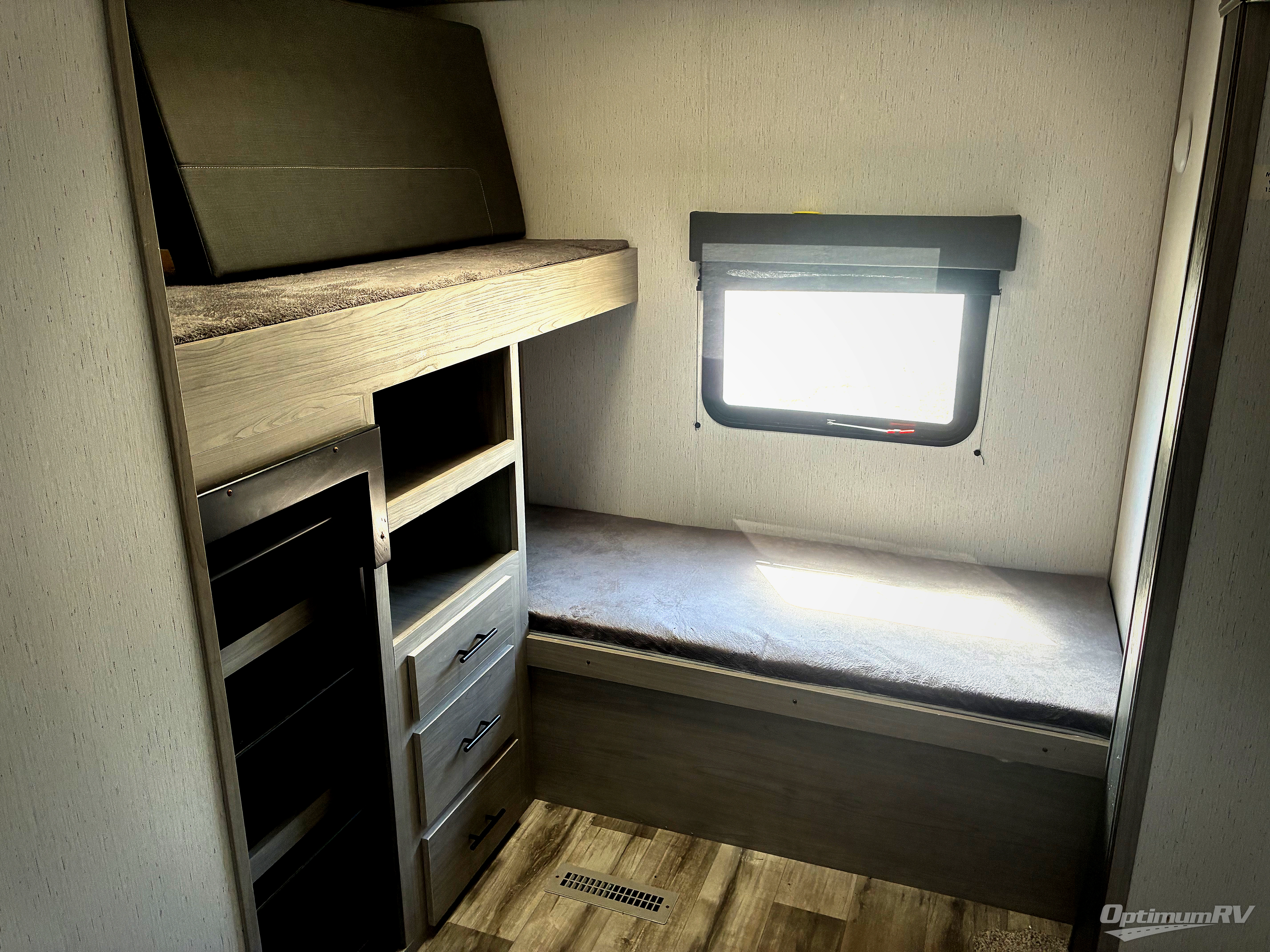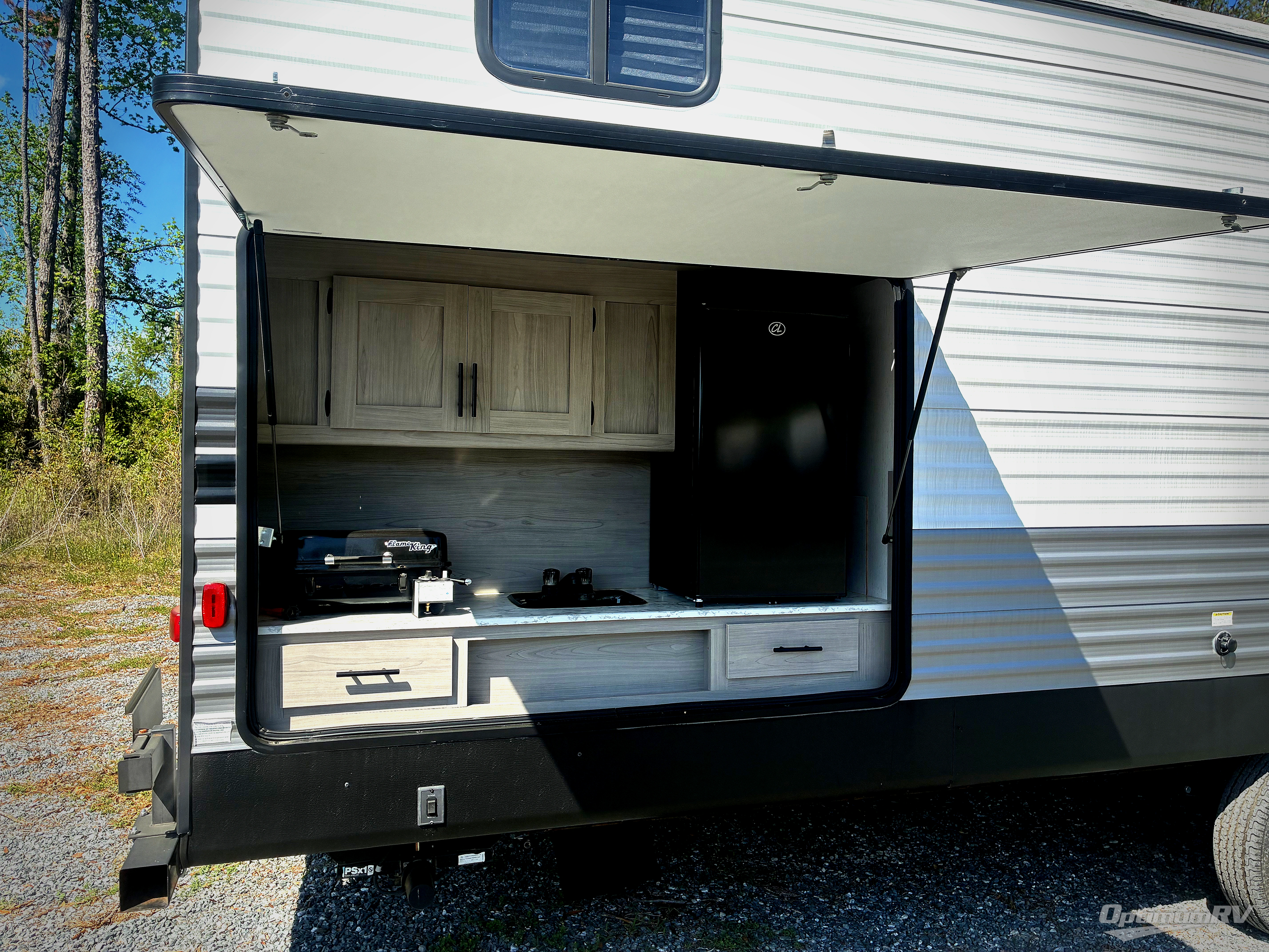 Spacious, inviting and comfortable, this trailer offers it all! You and your group will love the rear bunkhouse with four bunk beds, a slide out giving you more floor space, and privacy when you close the door. And there is a full bathroom just outside the bunkhouse for convenience and easy access when in the main area. You and another can sleep on the opposite side of the trailer in the front bedroom on a queen bed with access from each side and your own clothing storage. The cook will enjoy having a farm style sink with high rise faucet, and full amenities including a 10 cu. ft. refrigerator to store leftovers. There are many more features to enjoy such as the power tongue jack when setting up, the pass-through compartment for your larger outdoor gear, the outside shower to rinse off the dirt from your shoes, and the USB ports for all the electronics.