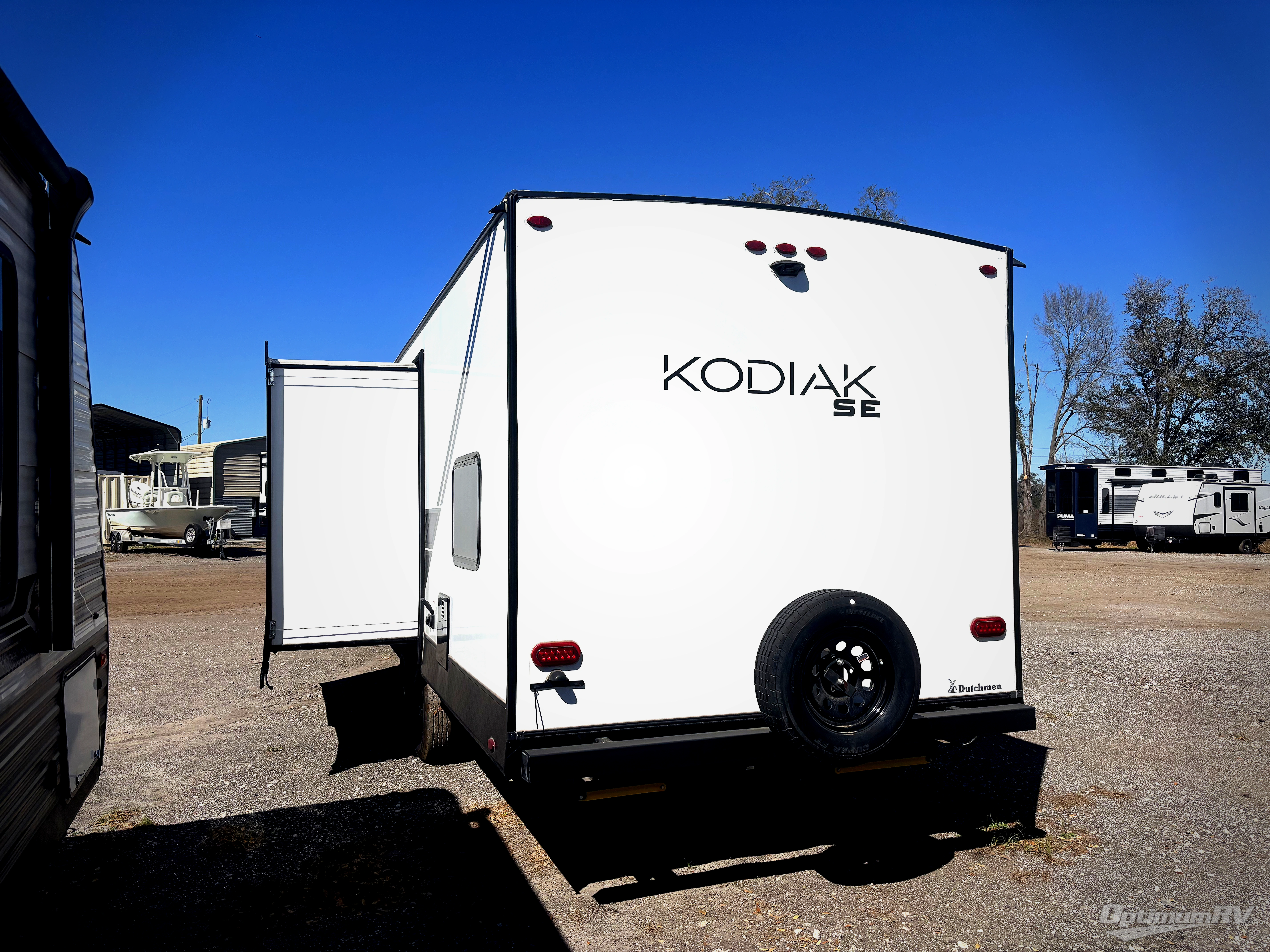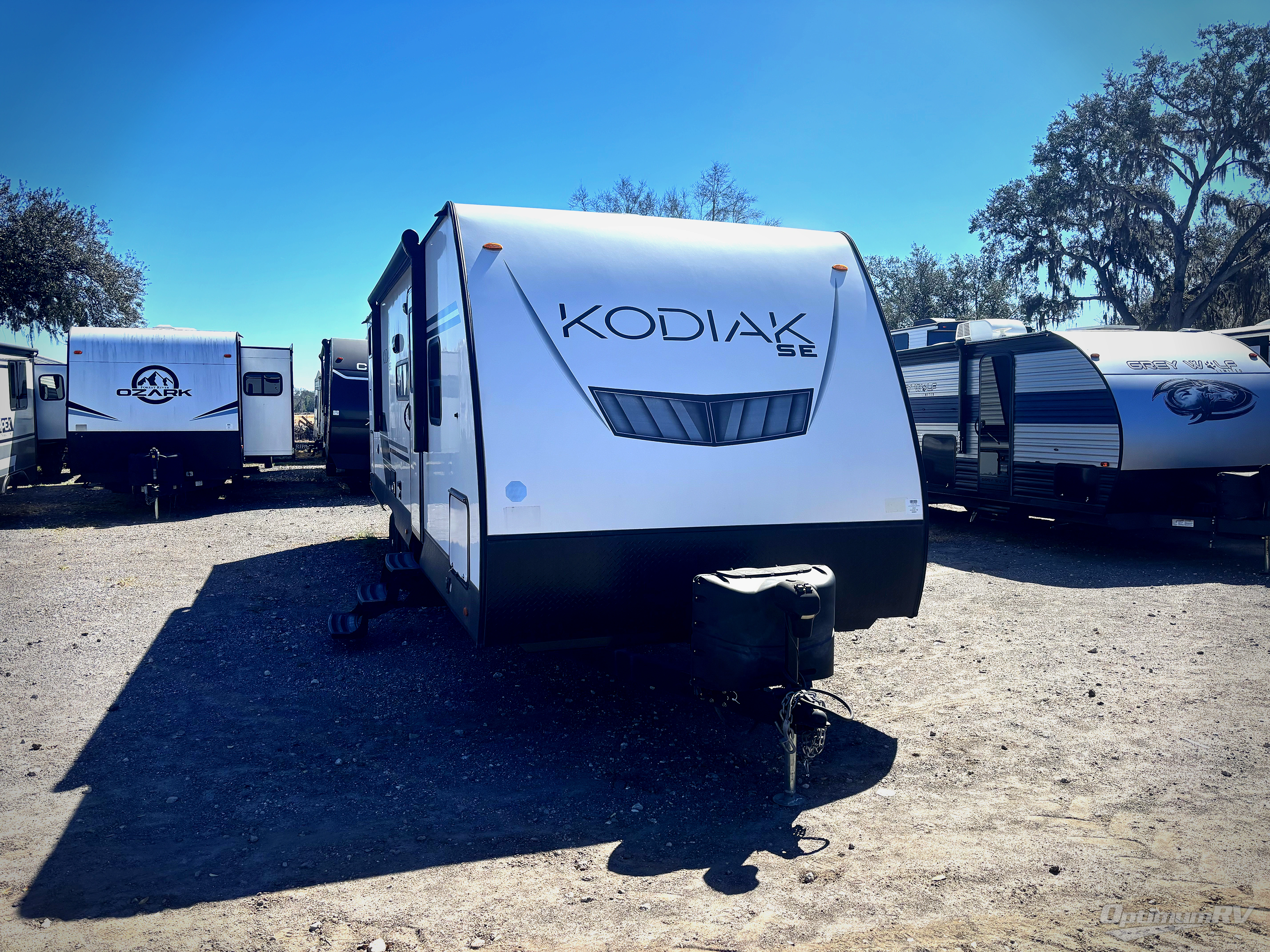 With any Kodiak SE travel trailer by Dutchmen RV, you can experience comfort while camping at a moment's notice. Each trailer includes features such as power front and rear stabilizer jacks, a power tongue jack making set-up easy, and a power awning with LED light. Each model is pet-friendly with the carpet-free slide out floor, tile flooring, and the pet leash D-ring. You can enjoy the wireless Bluetooth speaker, the LED interior and exterior lighting, and the 80" interior height. From the floor structure which includes a fully enclosed underbelly to the laminated walls with aluminum frame and block foam insulation, any Kodiak SE is built lightweight and ready for adventure!