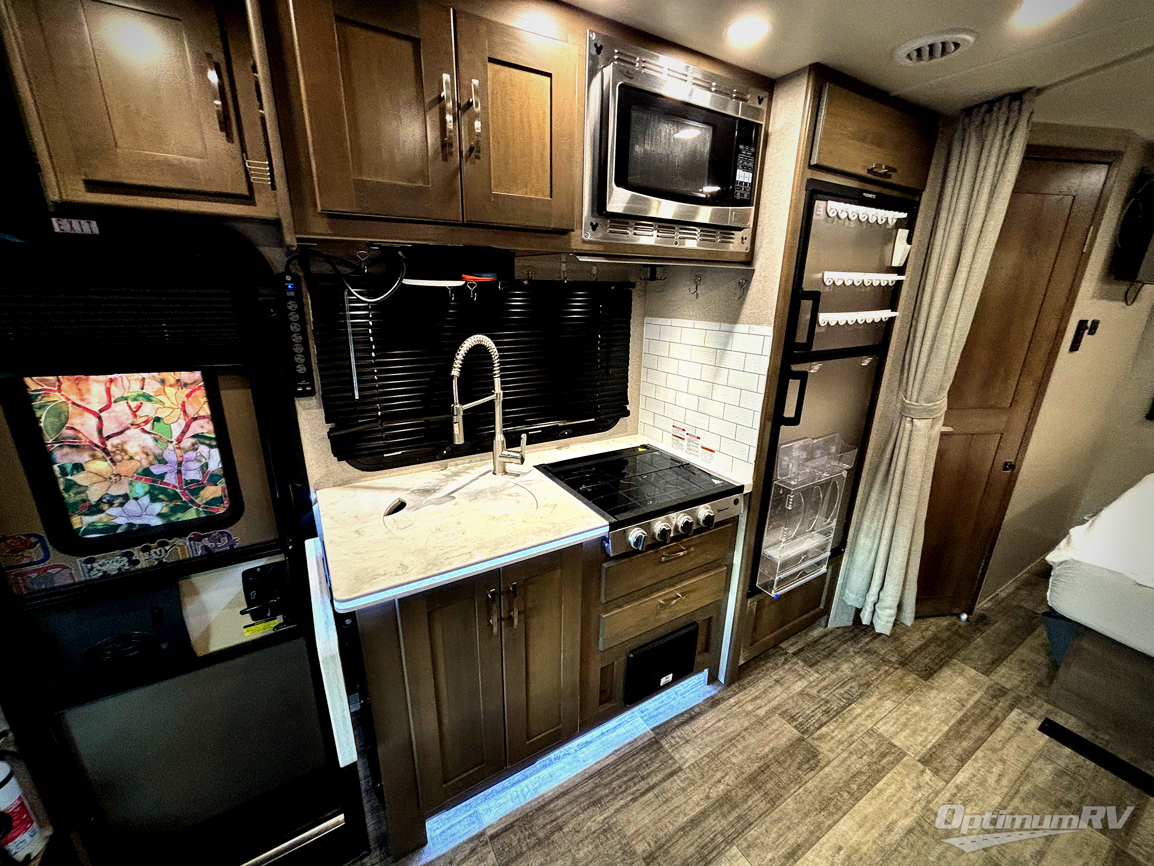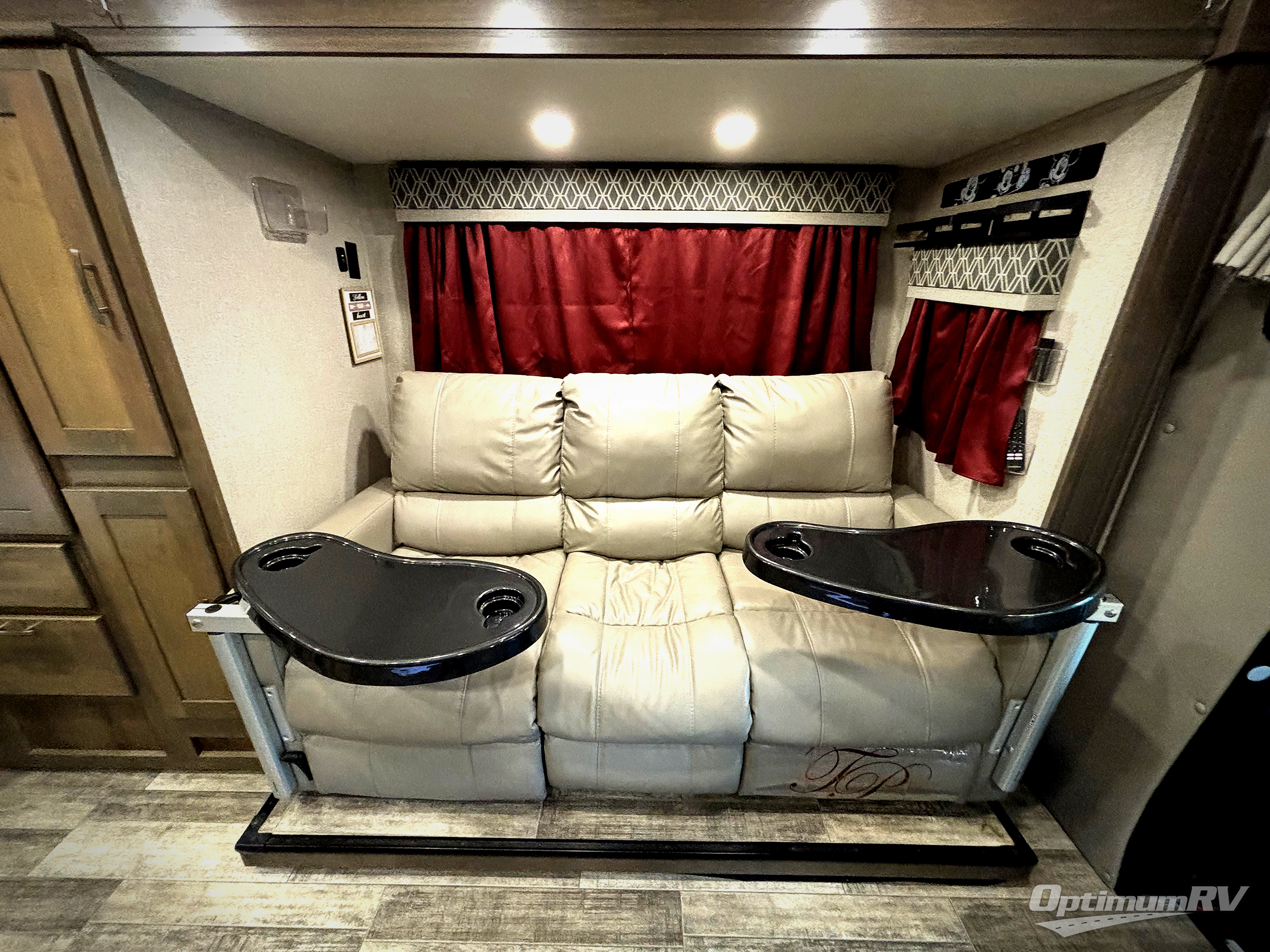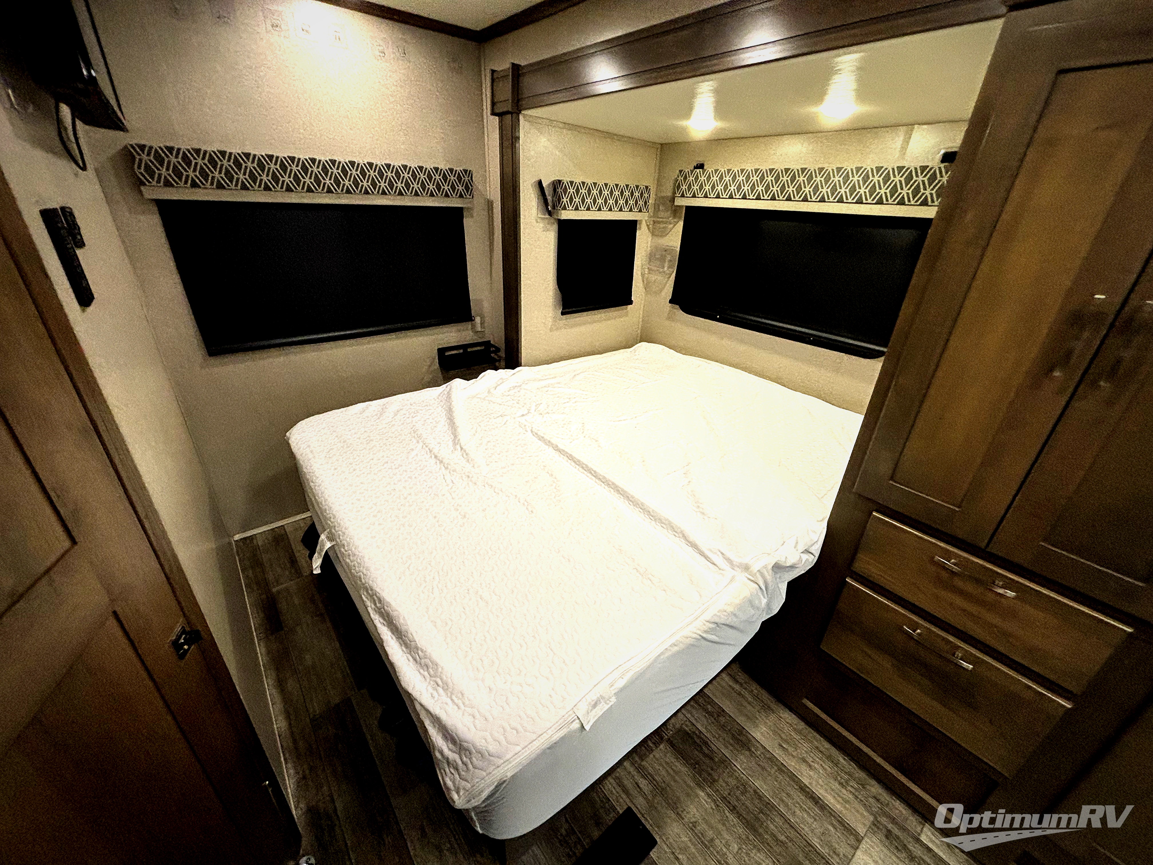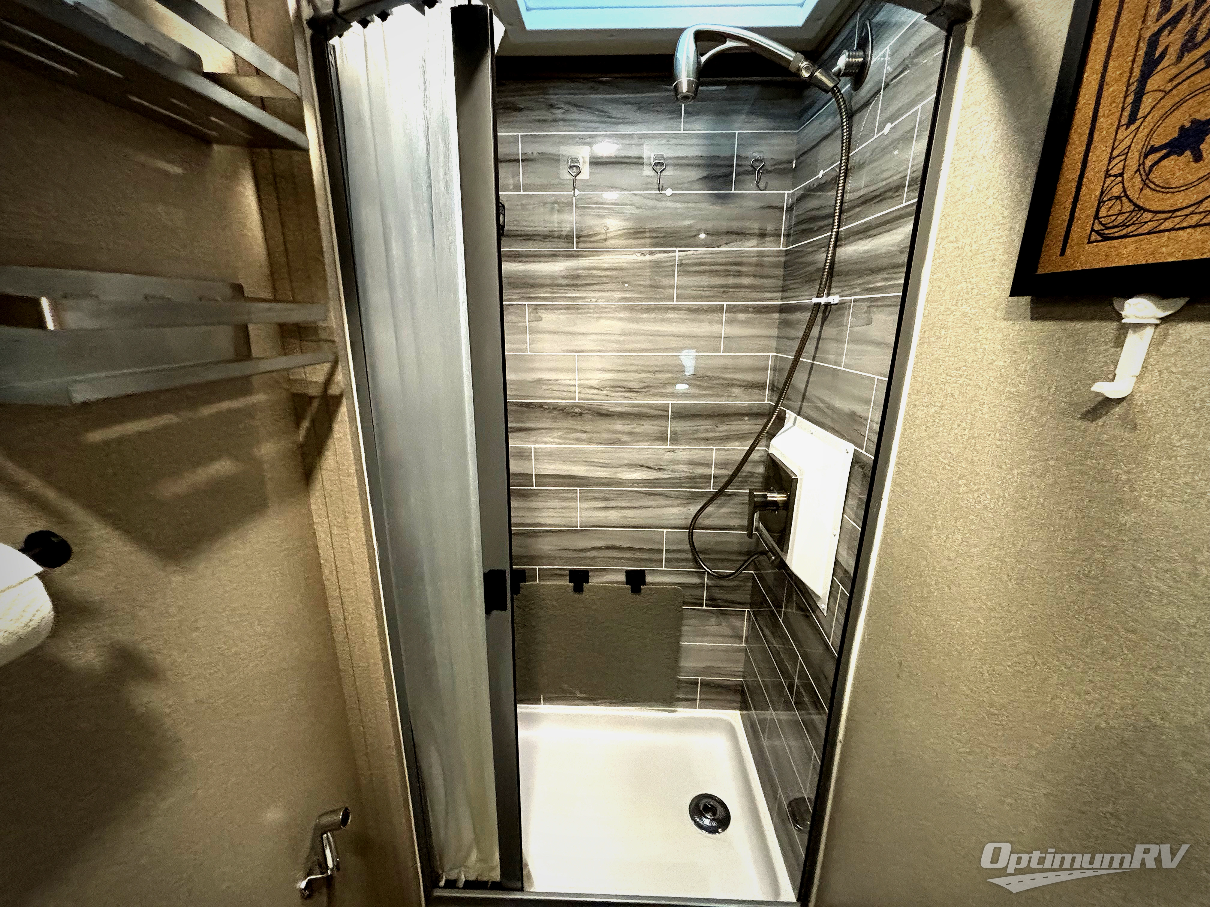 Take this motorhome on your greatest adventures yet! Start each morning feeling well rested after sleeping on the corner queen bed then head to the rear corner bathroom to freshen up in the shower with an Oxygenics body spa RV shower head and a skylight above for added headroom and natural lighting. Now that you're ready for the day, you can grab some eggs from the 6 cu. ft. double door refrigerator and fry them up on the three burner cooktop then enjoy them at the booth dinette. The kitchen also has a countertop extension for more meal prepping space and a convection microwave oven to pop a bag of popcorn before watching your favorite movies on either the living room 32" LED TV or the 32" LED smart TV across from the bed. You could even switch things up by replacing the booth dinette for either the optional tri-fold sofa with table or the optional three seat power recliner, and even add an optional cab over bunk too!