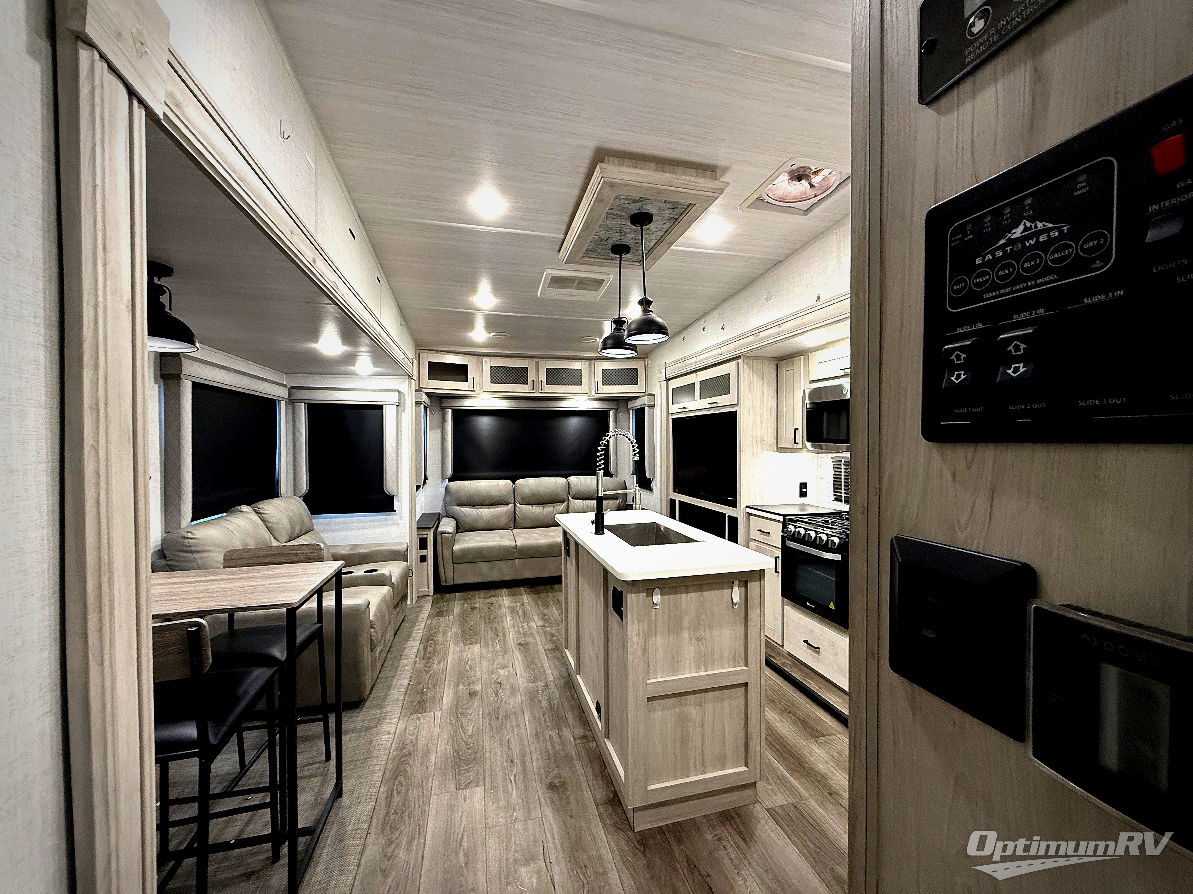 At any point you want to get away to your favorite secluded spot, you can grab your EAST TO WEST Tandara fifth wheel and head out because it has a Four Seasons Package that will keep you protected during all seasons! There is an automatic leveling system that you can use during set-up, and the MORRyde CRE 3000® suspension will make traveling smooth. The Tandara has been prepped for a rearview camera, and the interior is very stylish with its artisan maple décor. Some of the luxury features you'll find are the 30" over-the-range residential microwave, seamless fiberglass shower, preparations for a washer/dryer, and a 10-gallon water heater.
