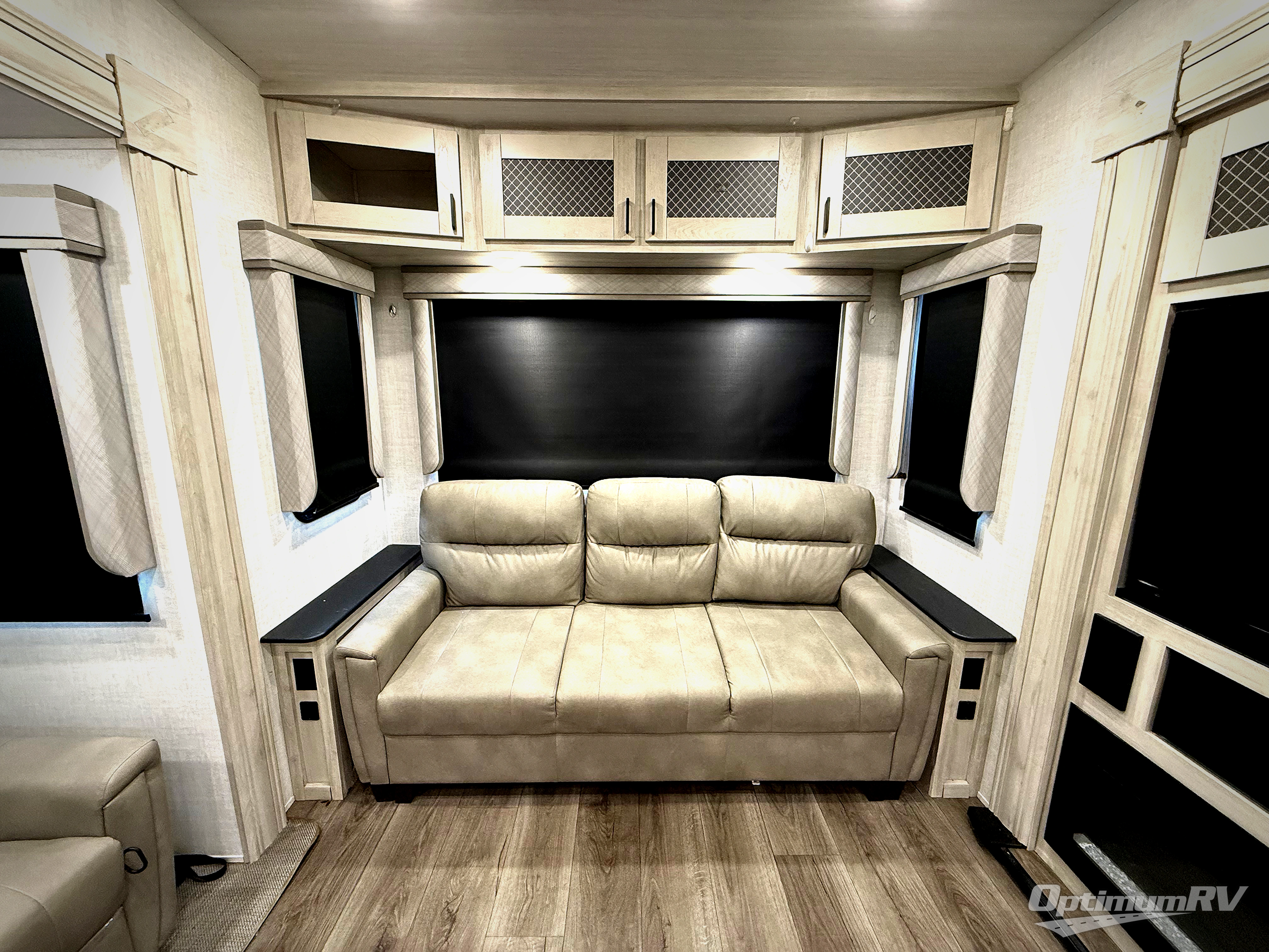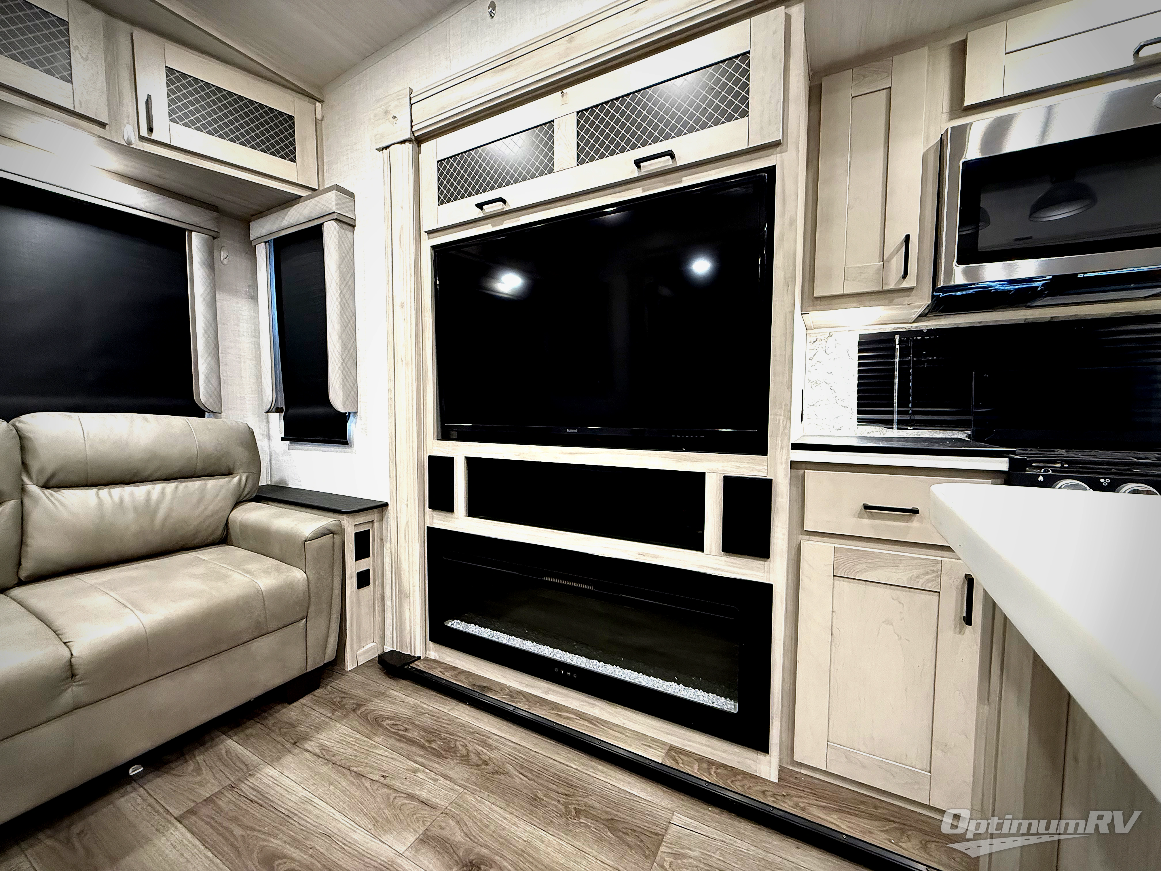 If you're ready to enjoy some luxury at an affordable price, choose this Tandara fifth wheel! The opposing slides will keep the interior feeling open and spacious so that you can enjoy some time in the theater seating. As you relax, you can watch the 50" LED TV across from you, and the fireplace below the TV will provide some extra ambiance. You'll enjoy your own private bedroom to sleep in each night, and the king-size bed is going to be ultra comfortable. There is even under-bed storage where you can keep some extra belongings. The four-burner range in the kitchen is going to be unbelievably helpful when you have a lot of food to prepare for breakfast in the morning.