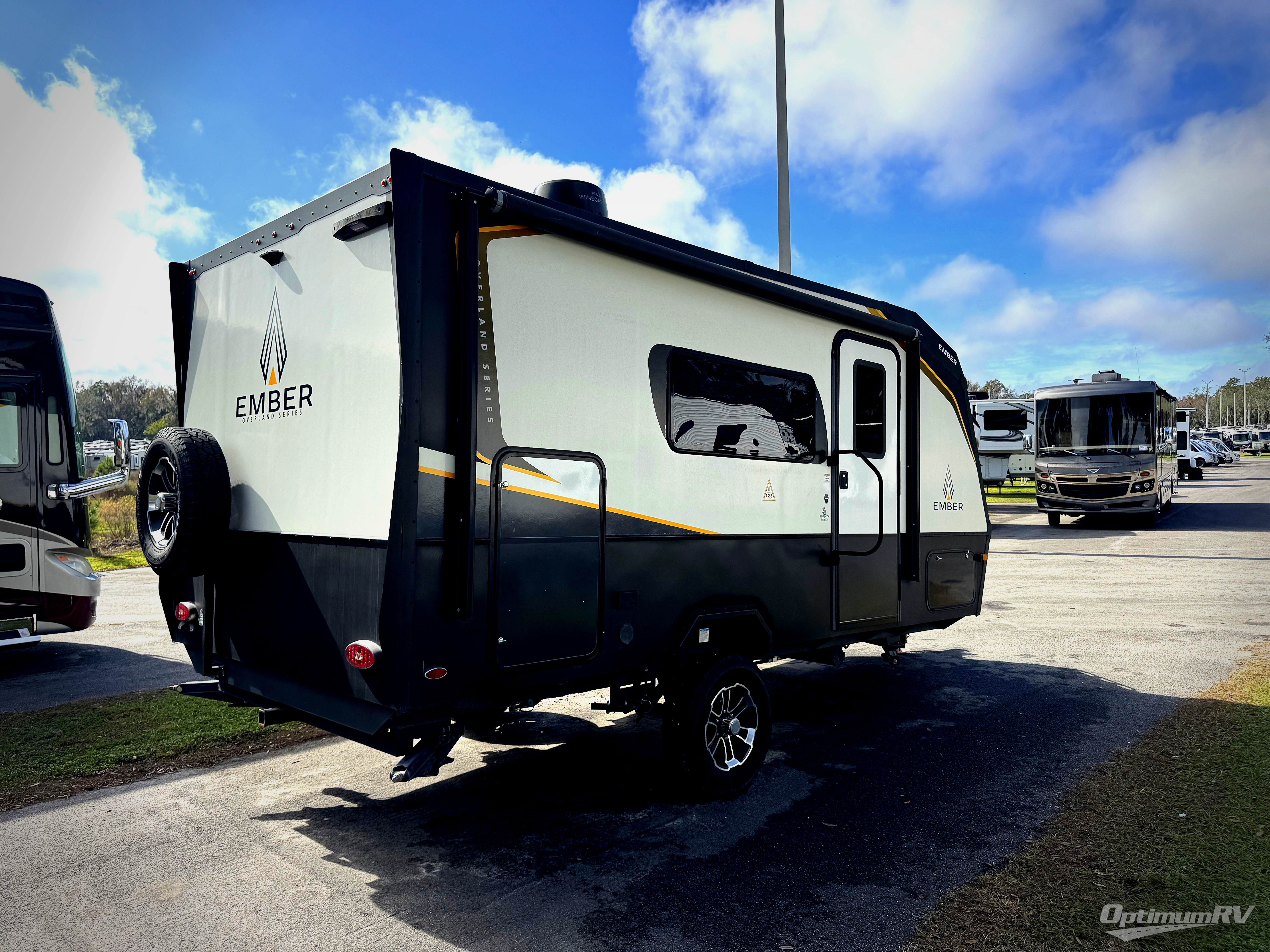 Each one of these Ember RV Overland Series travel trailers were built to meet the needs of today's most discerning RVers with layouts to fit couples and families! The CURT independent suspension comes with heavy-duty coil springs with dual shock absorbers on each wheel, and the heavy-duty off-road tube steel frame is sure to hold up through whatever adventure you throw its way. Laminated Azdel Onboard composite walls and rooftop prevent rotting or molding of the unit. Their chic interior design comes with Shaw flooring that will be easy to clean, European dual pane acrylic windows with integrated shades for added privacy, and an EmberLink smart RV control system to use at the touch of a finger. The Off-Grid Solar package lets you go further into the woods and the Safety First package ensures you and your unit will safely arrive to each destination. Come find the right one for you today!