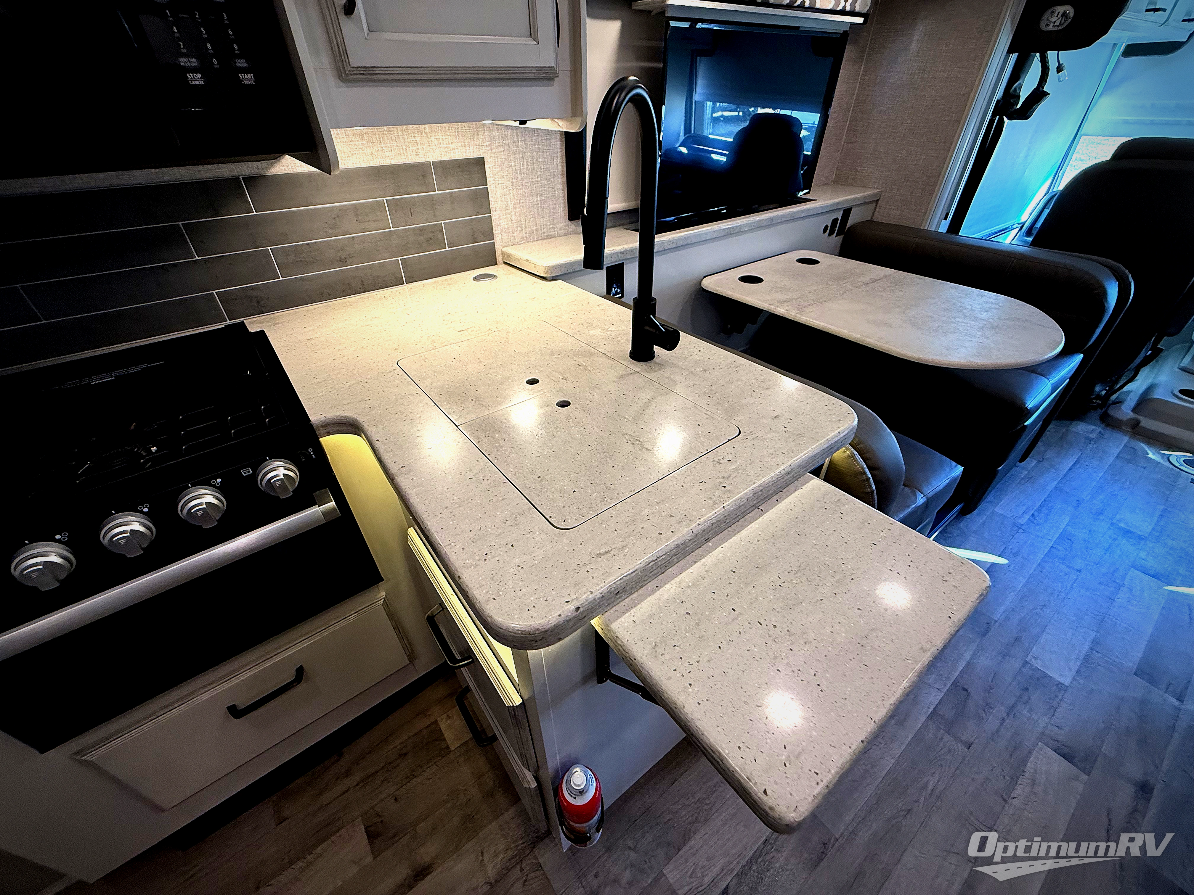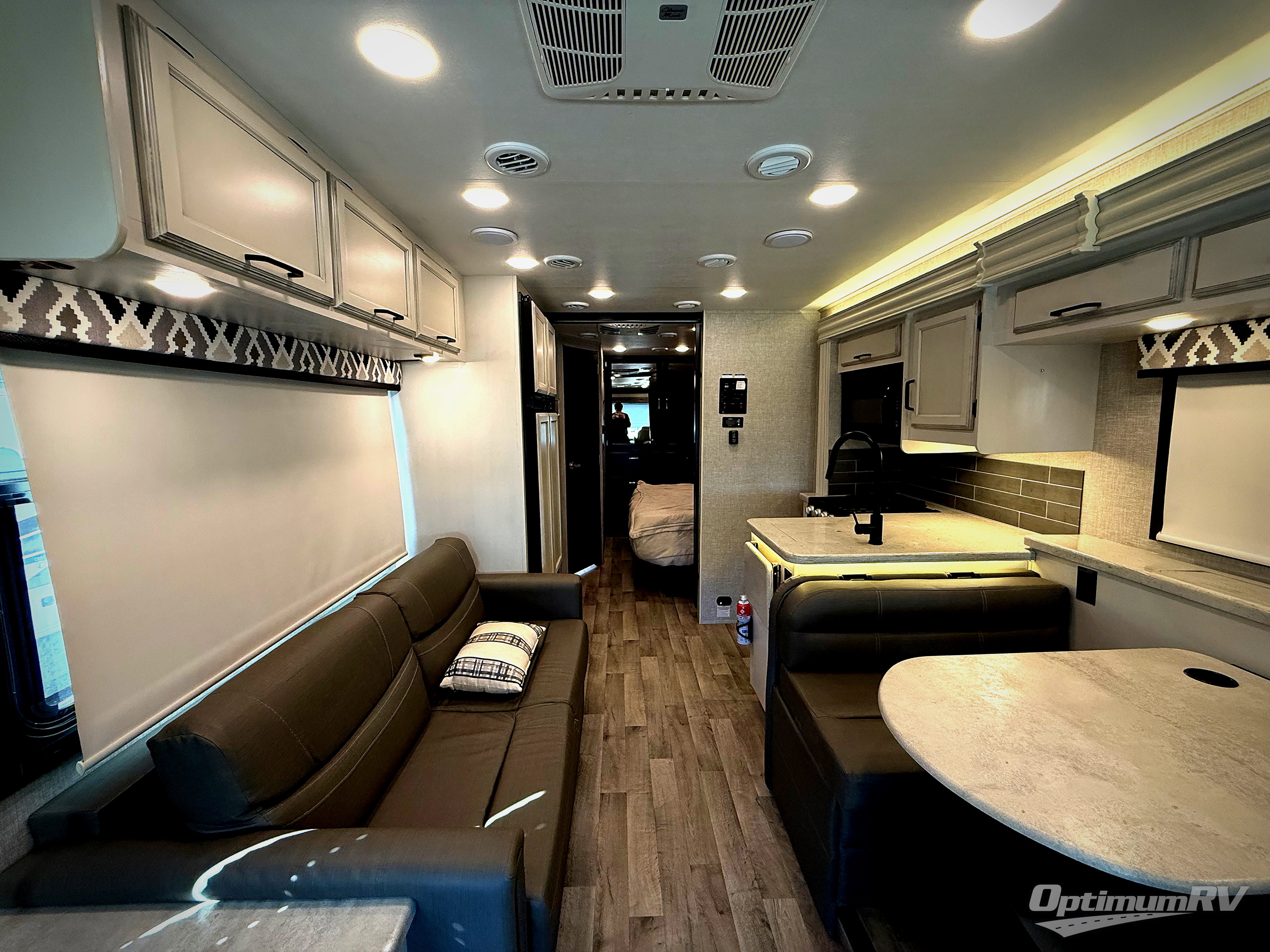 You'll love spending time with your favorite people in this Vision Class A gas motorhome! You can roam freely while inside thanks to the two slides, and the main living area has a booth dinette and sofa for relaxing. You can also turn these pieces of furniture into beds at night, and if you add the optional bunk above the cab, you'll have even more sleeping space. In between the two cab seats you'll find a removable cockpit table so that you can keep some snacks next to you as you travel. The rear private bedroom holds an RV king bed on one of the slides so that you can get to the wardrobe, and the full bathroom is right there next to the bedroom for easy access in the morning when you need to clean yourself off in the 30" x 36" shower.