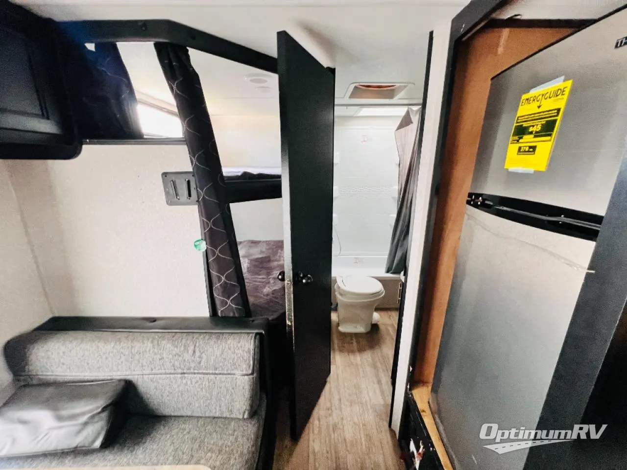 Enjoy cooking for nine in this Cherokee Grey Wolf travel trailer. With a three-burner cooktop, an overhead microwave, and an oven, you can easily cook just like home. The residential farm-style stainless steel sink makes cleaning your larger pots and pans quite simple, and the large overhead cabinets make storage an easy task as well. There is plenty of seating for the whole gang with the sofa and the booth dinette to play a game or two after you have enjoyed your delicious meal. Your kiddos are sure to love having their own set of double-size bunks conveniently located next to the rear bath, and you will love having your own front semi-private bedroom when you close the privacy curtain. You can also create some outdoor living space beneath the 15' power awning so that you can enjoy the great outdoors whether rain or shine!