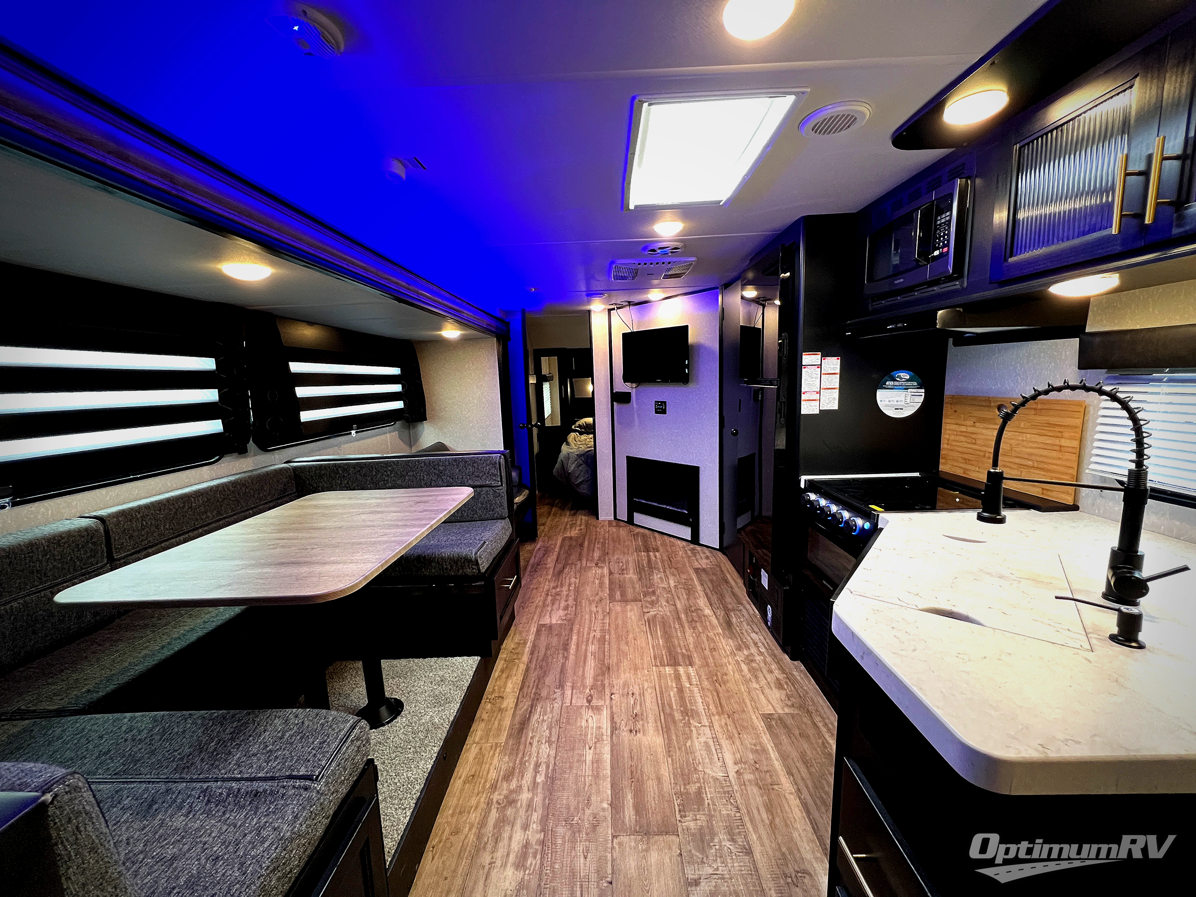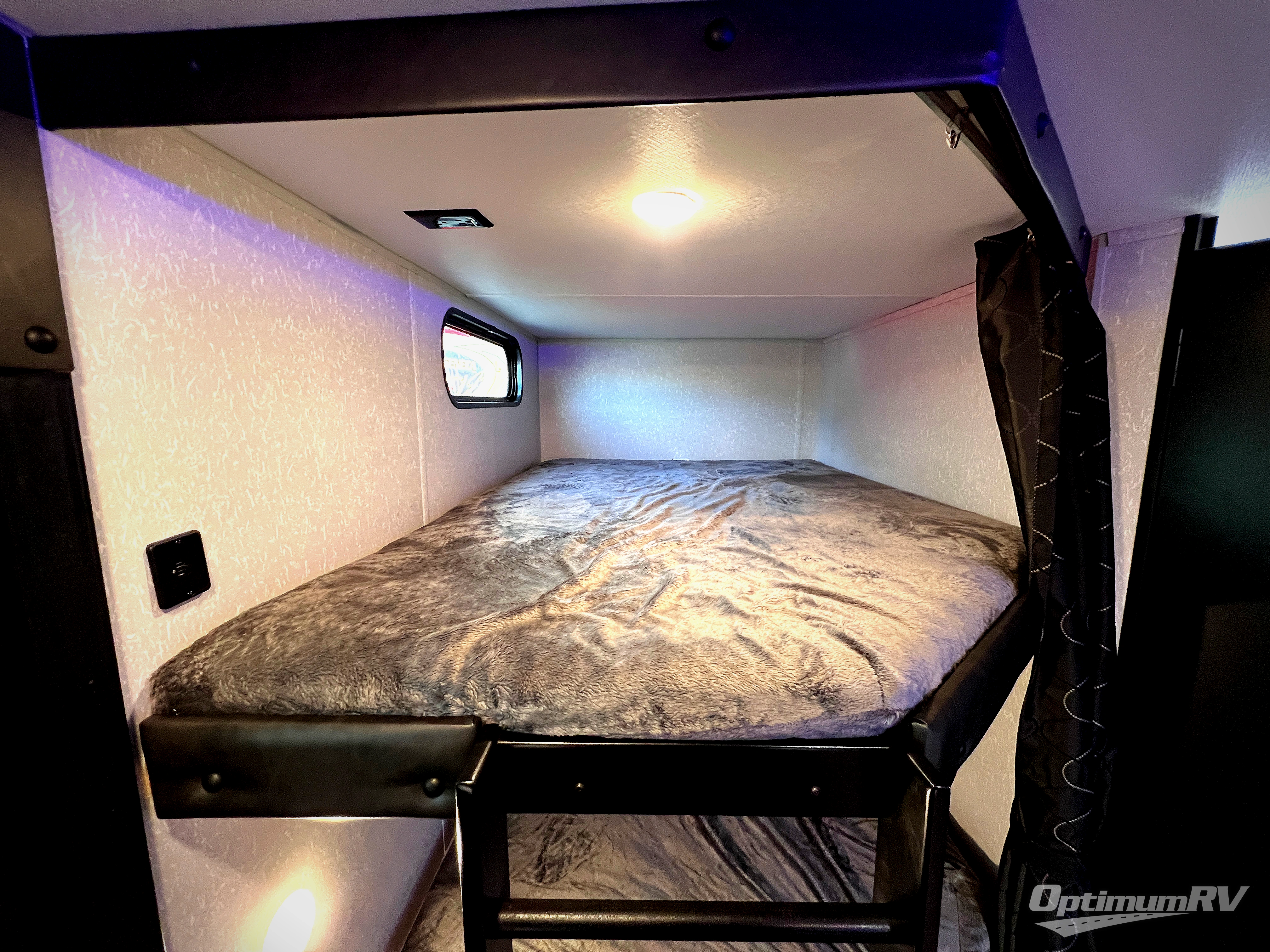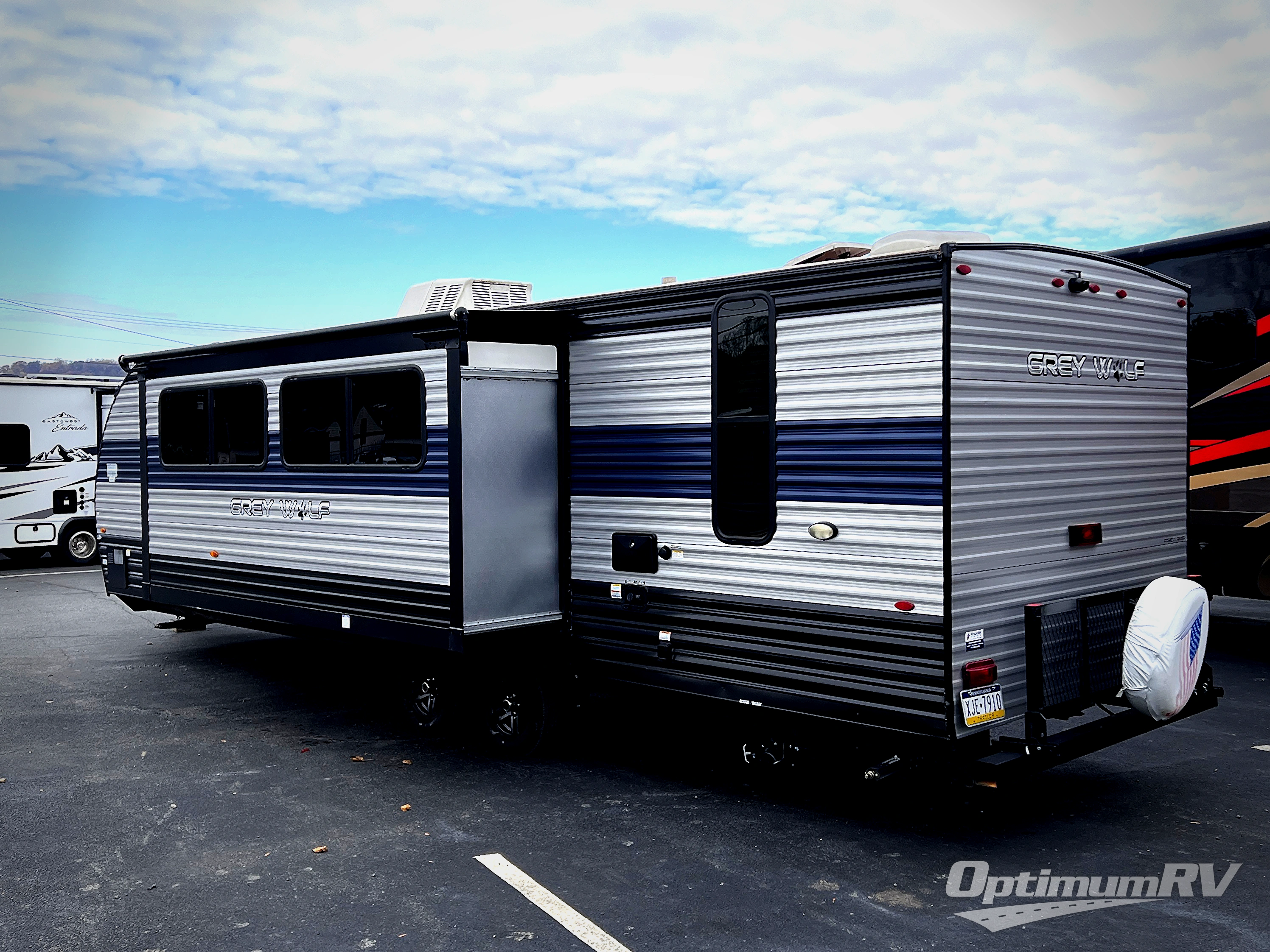 It's time you go camping the right way with this Forest River Cherokee Grey Wolf travel trailer! It features a front private bedroom with a queen bed for you to escape and recharge after a fun-filled day. Your kiddos are sure to love having their own set of rear double-size bunks with a ladder for safety, and you are sure to love that the rear corner bath is located right next to them. Inside the kitchen, there is a pantry big enough to hold your group's favorite snacks and a residential farm-style stainless steel sink to make your clean-up a breeze. There is also a U-shaped dinette for you to enjoy your meals at or play a card game or two!