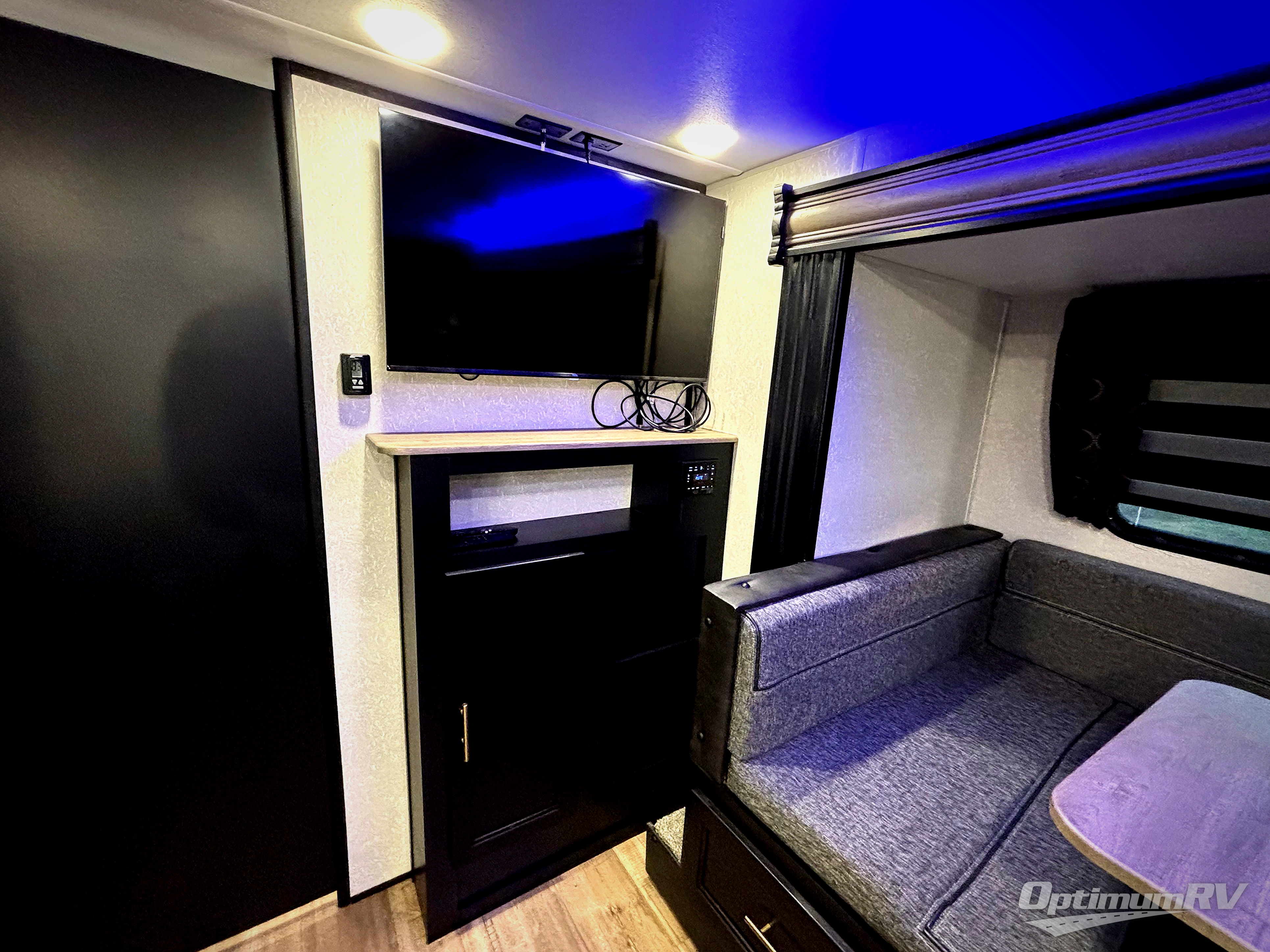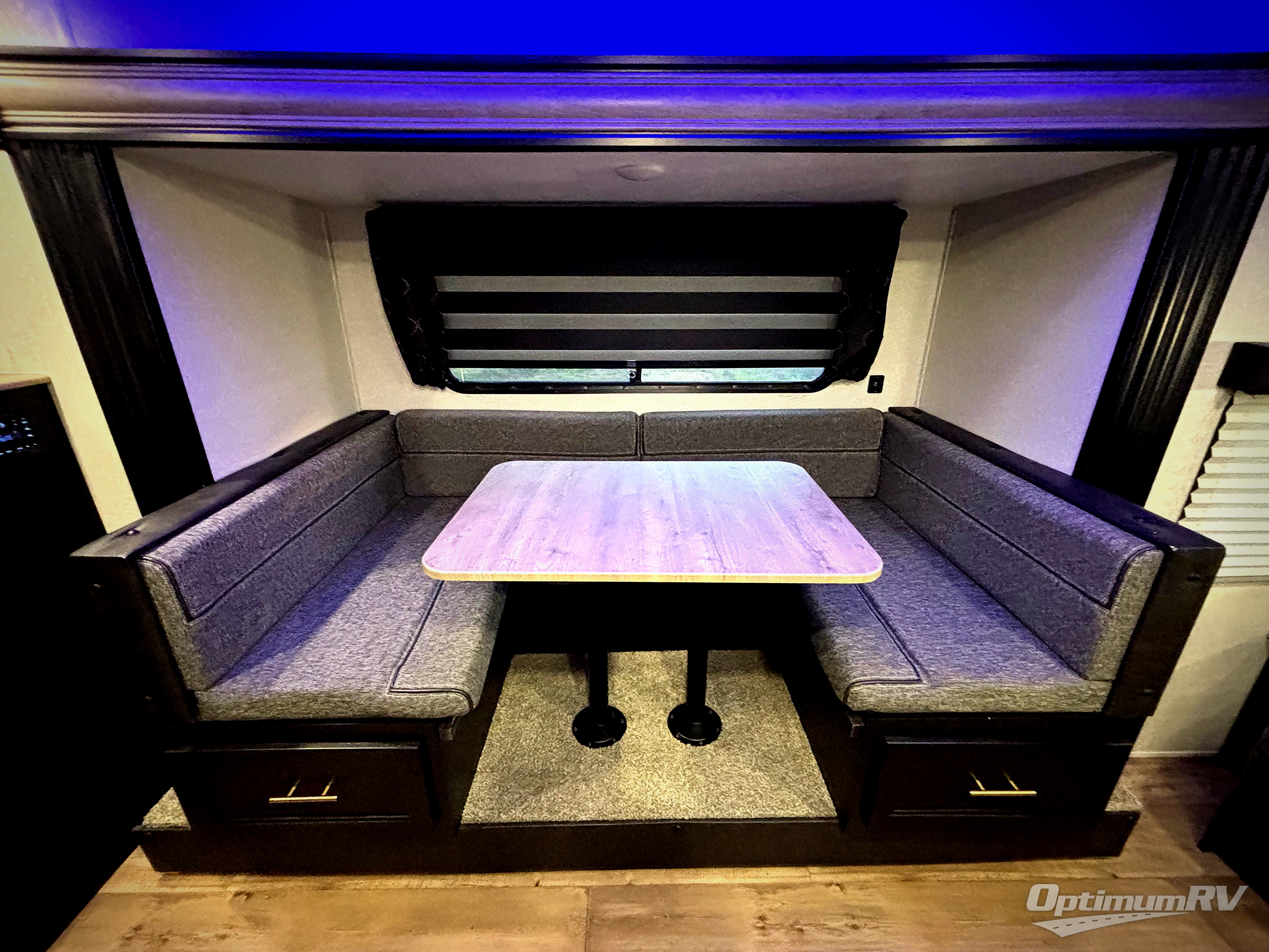 This Cherokee Grey Wolf toy hauler is perfect for those who are concerned about keeping the fuel smells and grime from entering the main living area. In this unit you can enjoy the separation with a door and the walk-though bath. In the cargo area, you will have plenty of space for hauling all of your favorite toys. This area also features dual fold-down sofas with a dinette table that is great for your thrill seekers to come in for a break from riding. It also allows quick access into the bathroom without having to wander through the entire main living area where you are likely to leave a trail behind. After a full day of playing hard, you can get cleaned up and head into the main kitchen area where you will enjoy a U-shaped dinette. A full kitchen allows you to refuel your body, and there is also a Cherokee Sleep System up front for a great night's sleep.