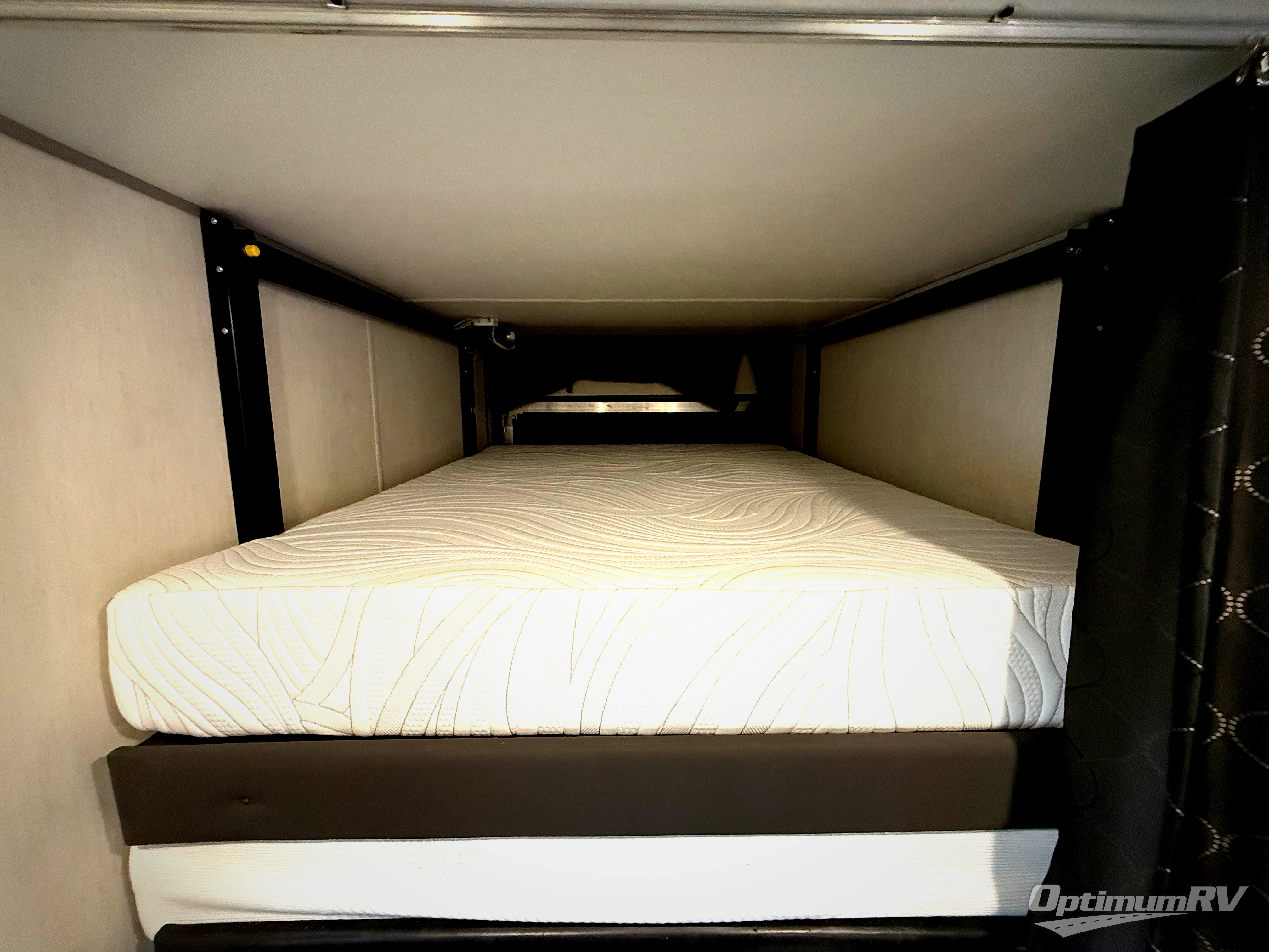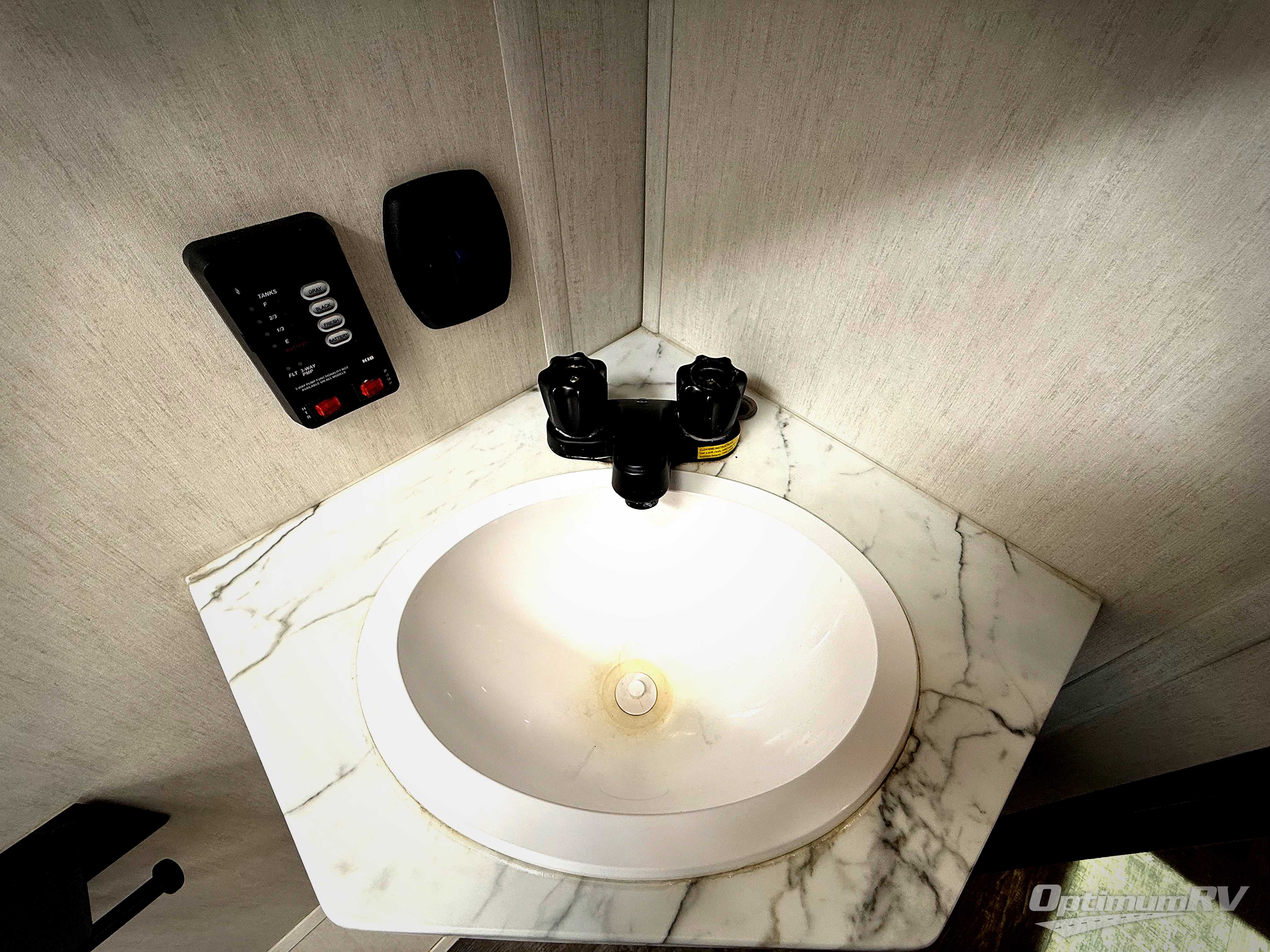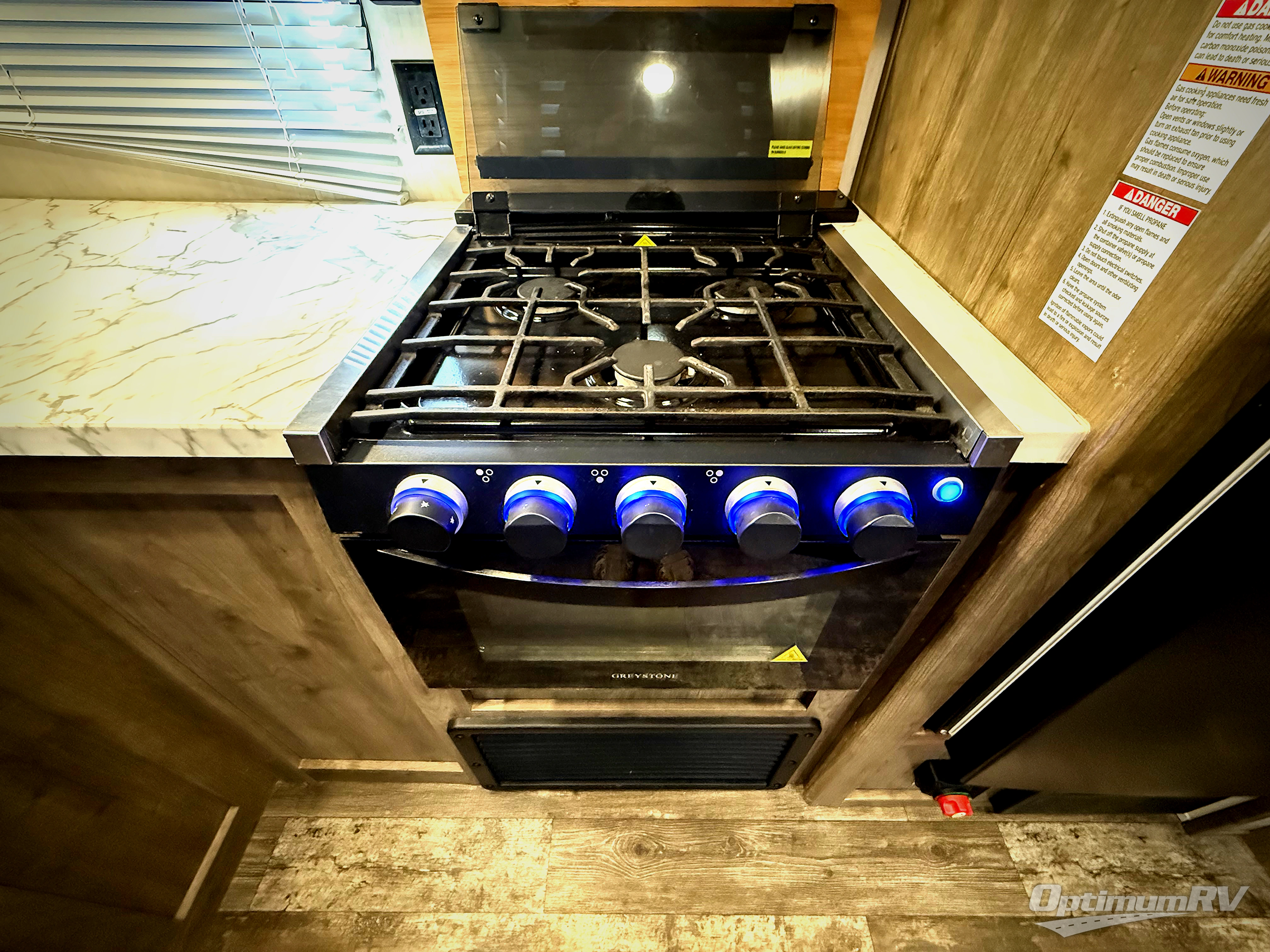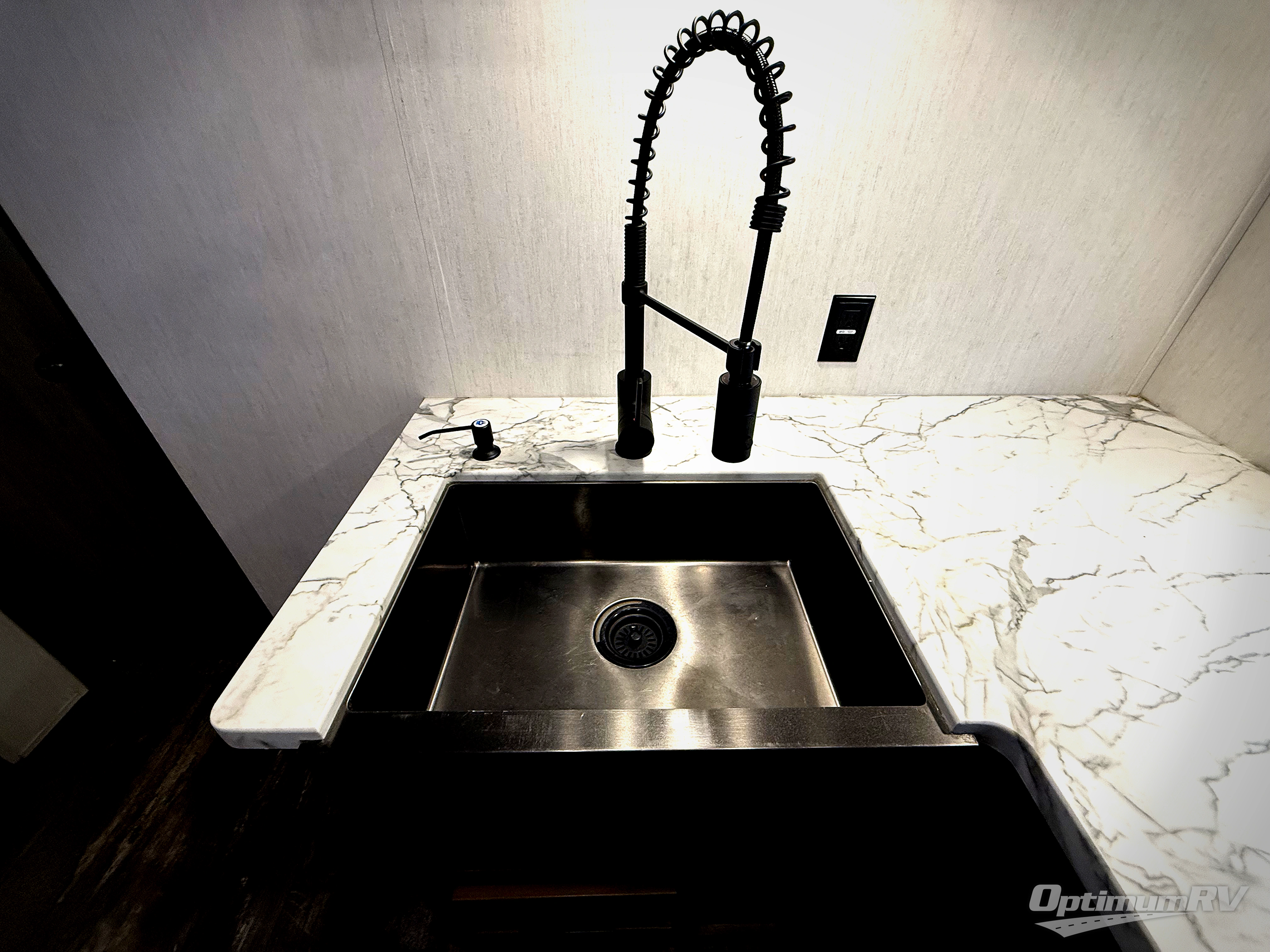 Every part of this toy hauler is maximized for utility and comfort! The Happijac bed lift system bunk beds can be set up within minutes of arriving at your destination. Behind the entertainment center with a fireplace is a large pantry for your snacks and across from it is a sofa and booth dinette slide. You can switch out the sofa for an optional theater seating if that fits your needs better. Freshen up in the rear corner bathroom then head to the front private bedroom to change your clothes that are store in the wardrobes on either side of the 67" x 74" Wolf Pack king bed. You will be the talk of the campground with the "party patio" that has outside TV hookups. Plus, there is an outside kitchen for sunrise breakfasts!