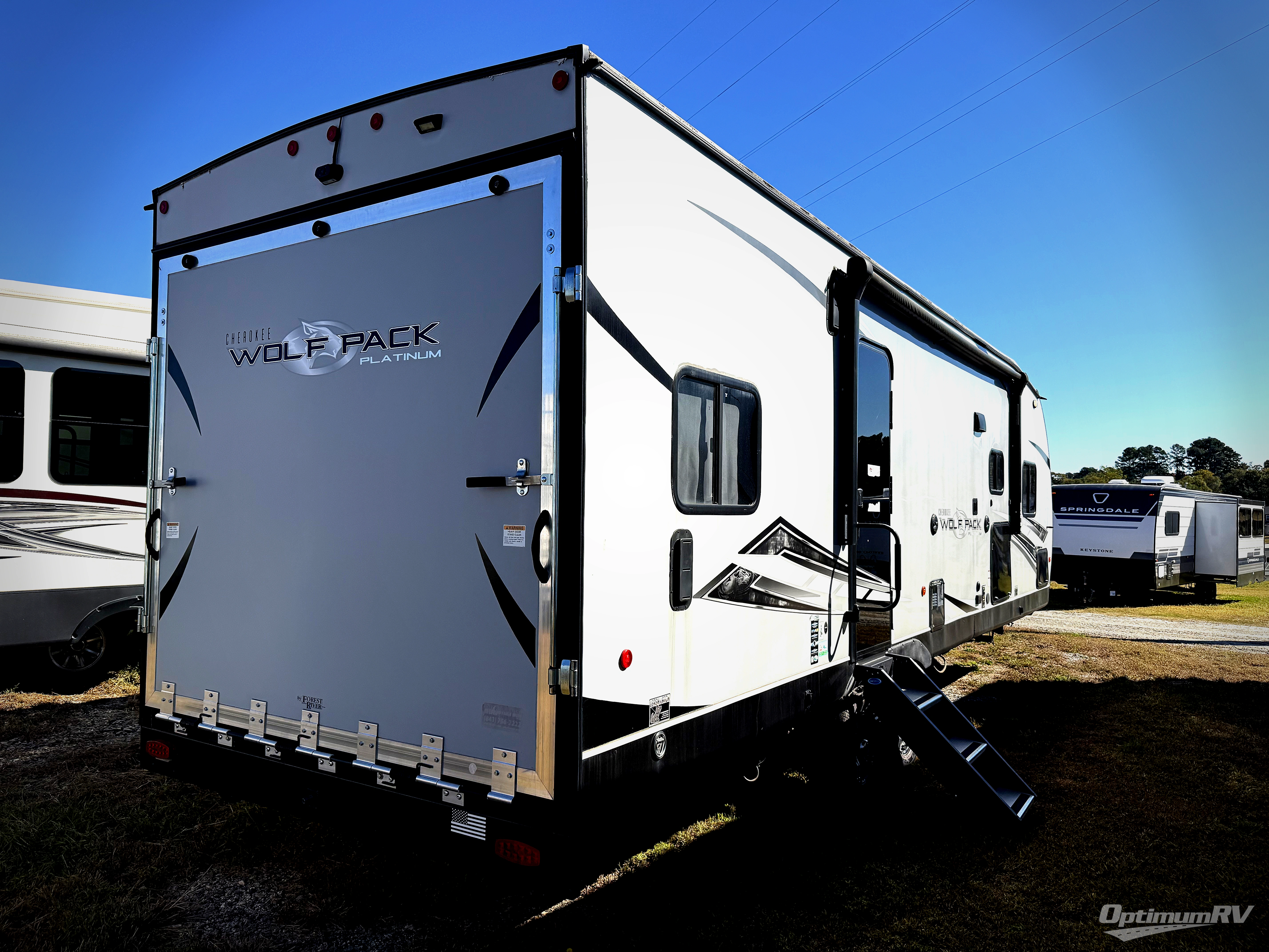 Run with the pack in any one of these Forest River Cherokee Wolf Pack toy haulers! They are affordable and versatile with a 102" widebody design to pack in all of the necessary features for a great adventure with your family and toys. The grey high gloss gel exterior will turn heads on the highway and the LED interior/exterior lights will make life easier. An outside shower with hot and cold water helps to keep the mud outside where it belongs. With an external 30 gallon fuel station, you won't have to worry about your toys being low on fuel. The Platinum package adds extra conveniences like a ramp door patio deck railing system, a Happijac bed lift system, and an industrial rubber garage floor on enclosed garage models. Come find the perfect model for you today!