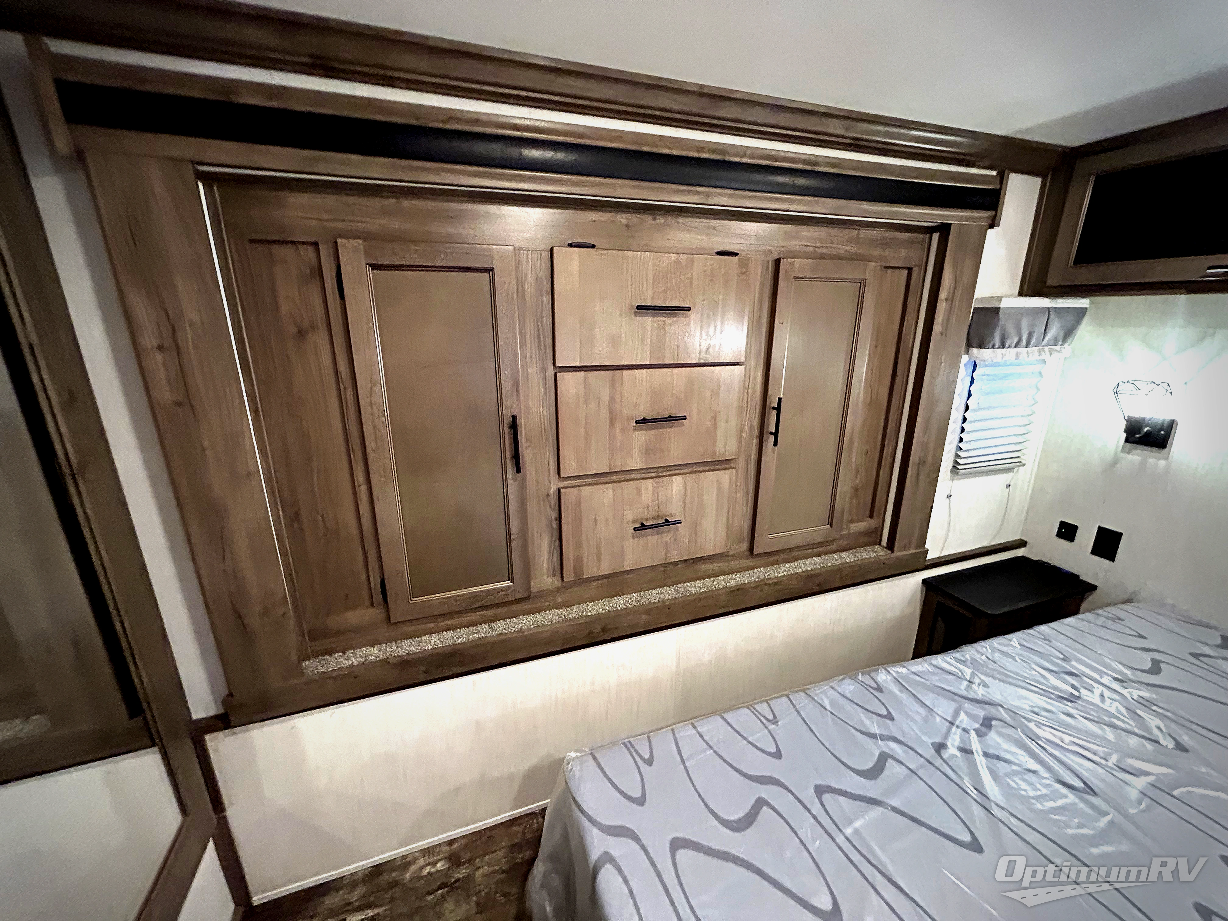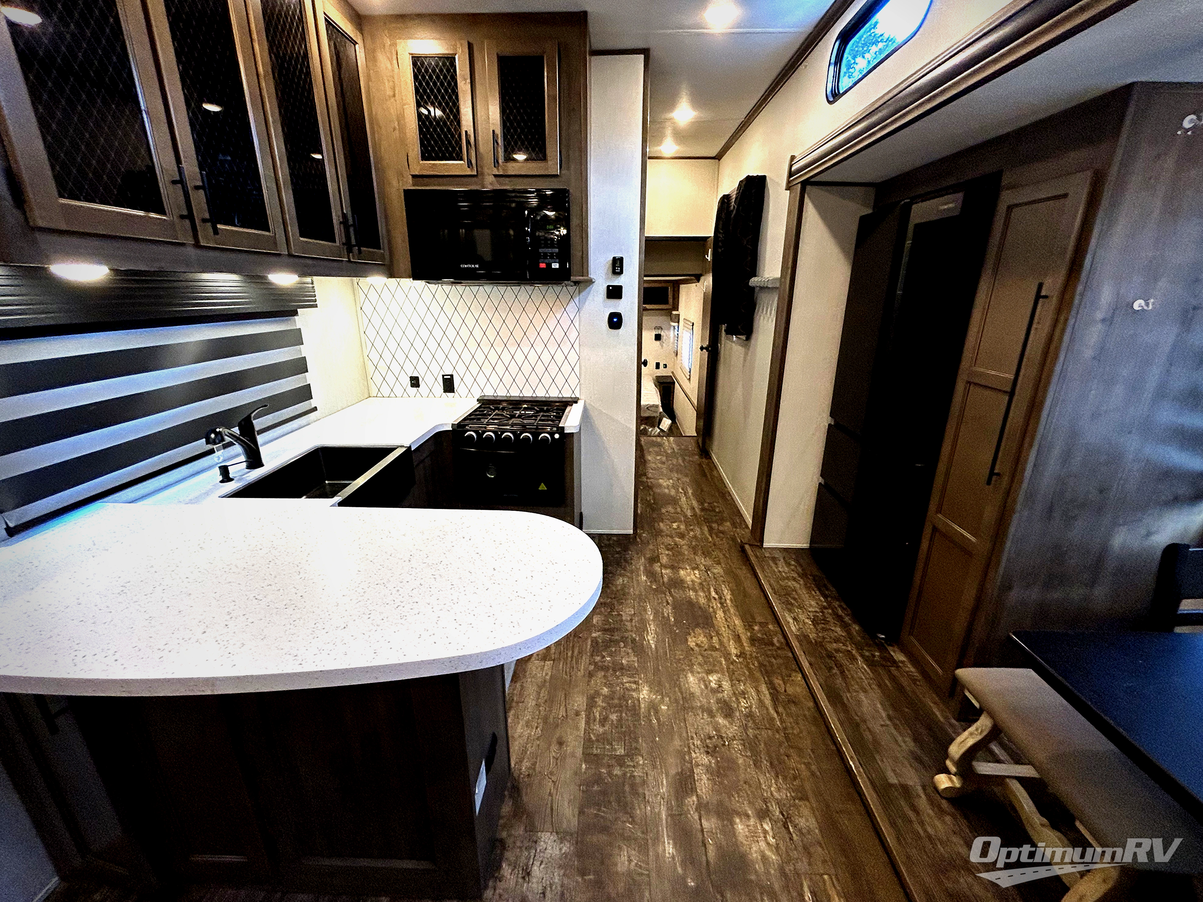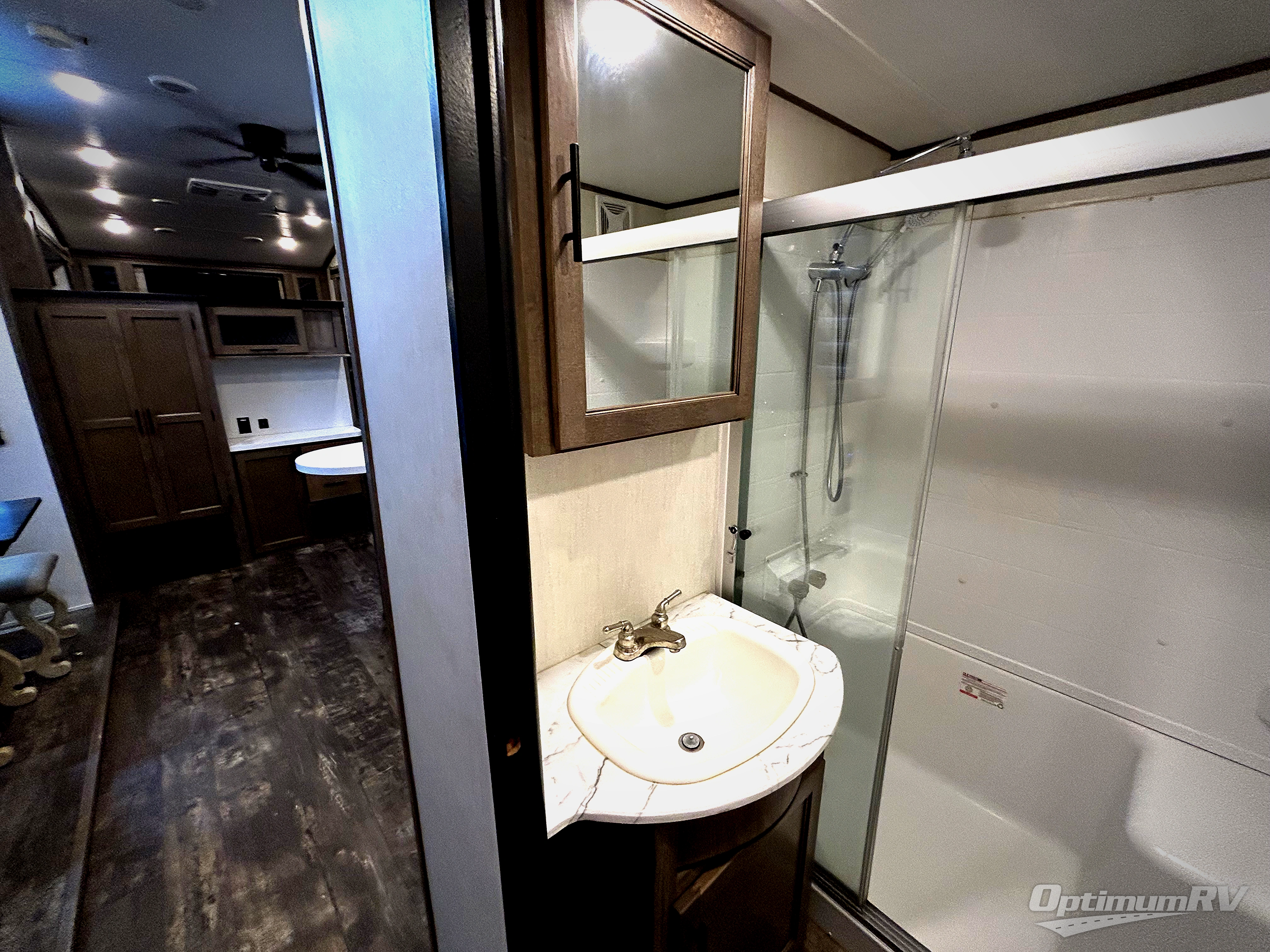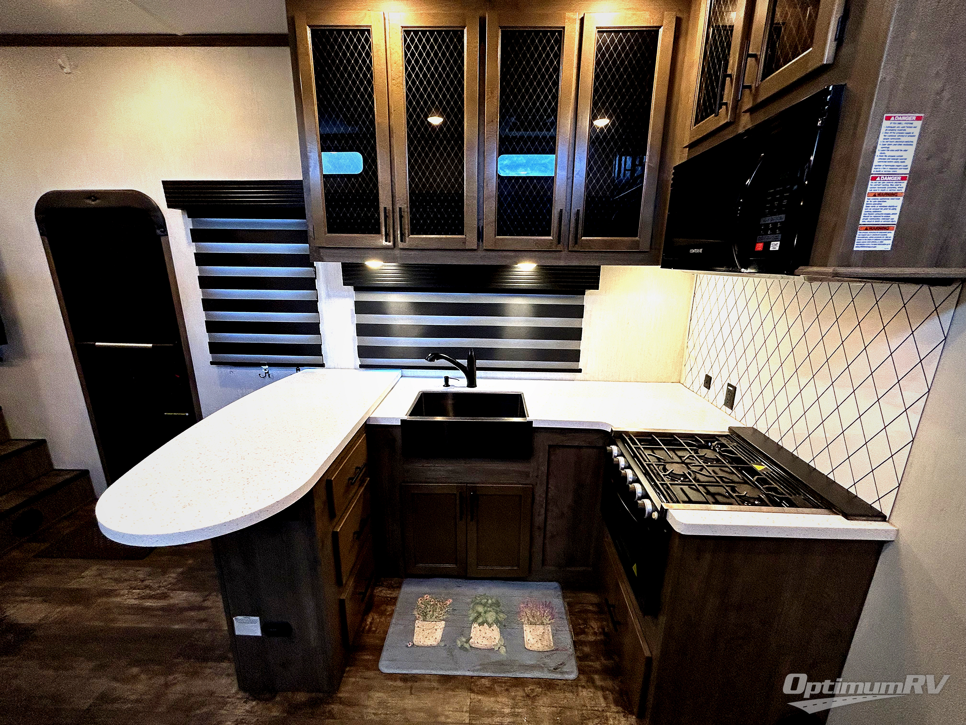 You will experience luxurious camping trips at an affordable price with any one of these Forest River Sabre fifth wheels! These models are durable and ready to travel anytime of the year thanks to features like the high-gloss gel-coat front cap with LED lighting, the PVC roof membrane, and the forced air underbelly with enclosed gate valves. The electric auto-leveling system makes setting up easy and safe, and the adjustable power awning with LED lighting will create an inviting outdoor living space. Each model includes a universal docking station which includes a black tank flush and an outside shower, and the backlit "Secure Step" landing for you to enter and exit the unit safely. Inside, you will love the design of the ambient accent lighting above the crown molding in the living area, the real wood lumbercore cabinetry, and the vintage gaslight decorative lighting!