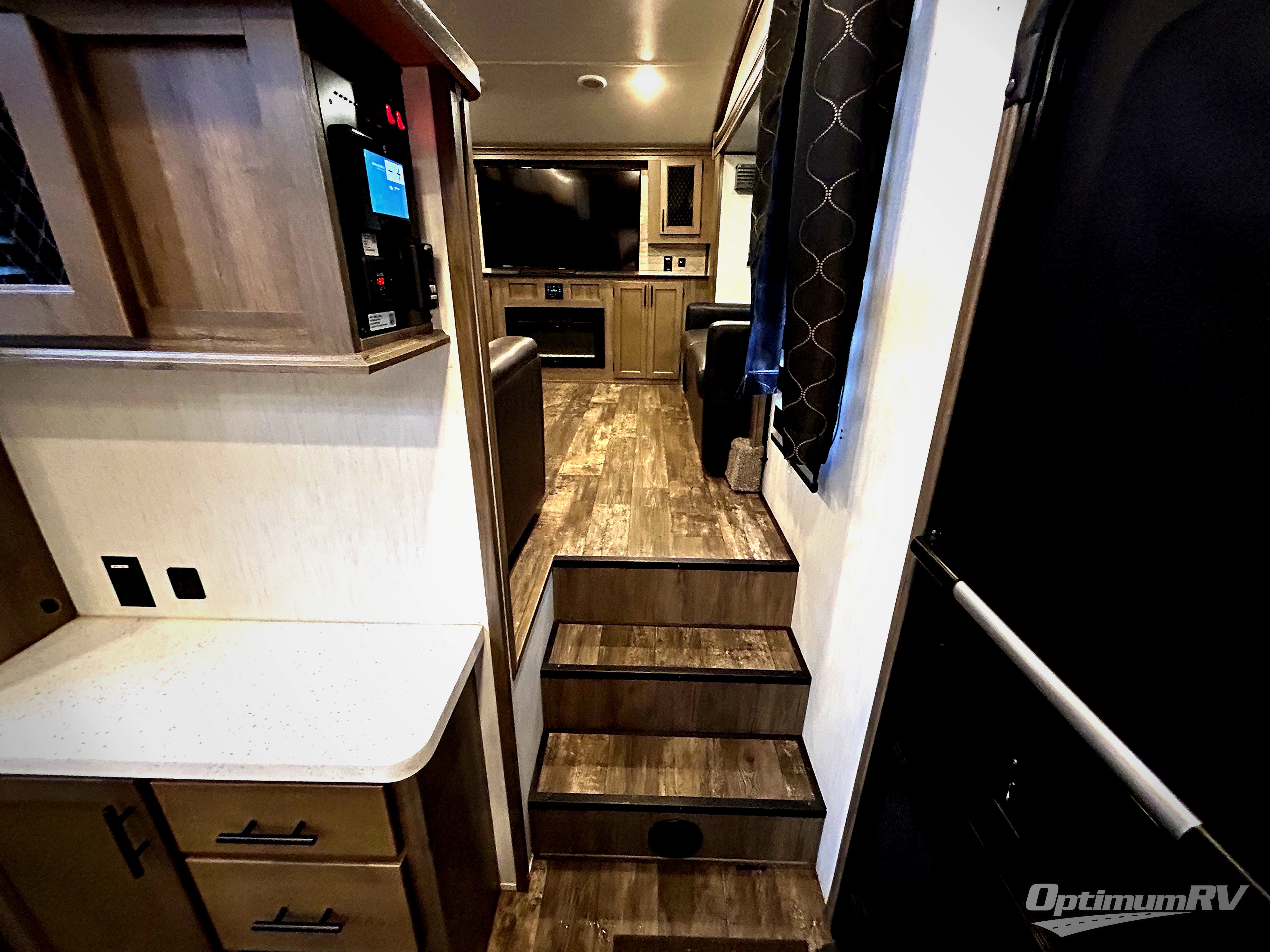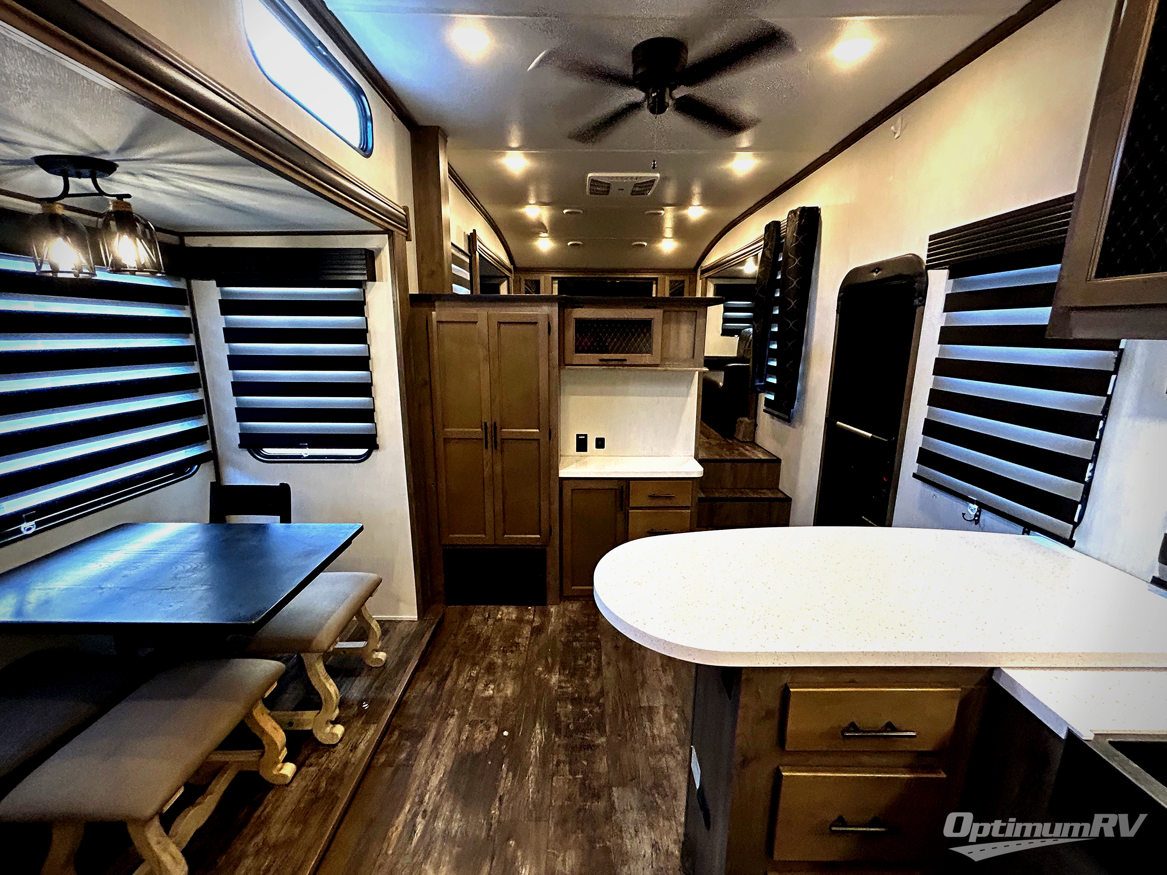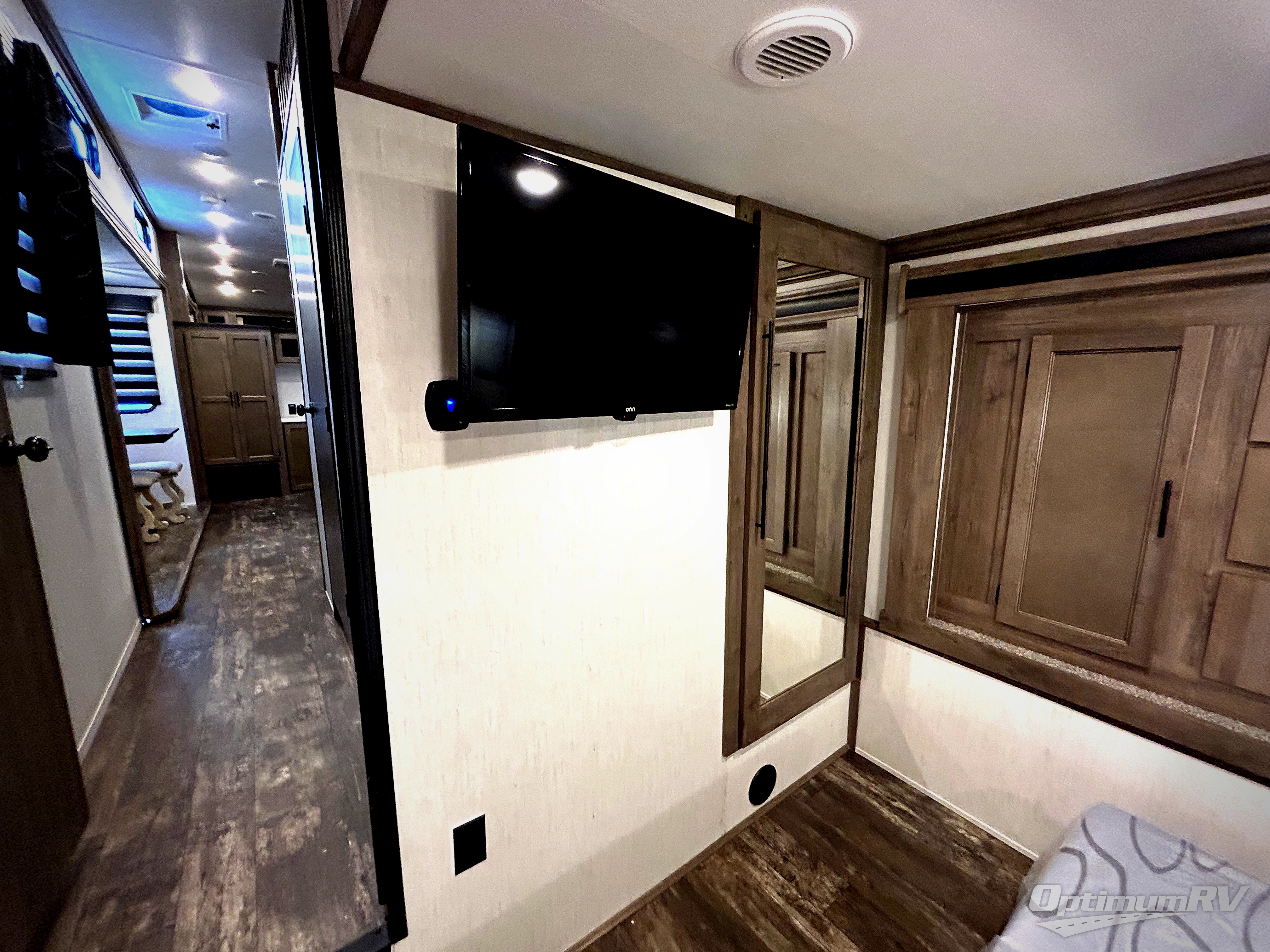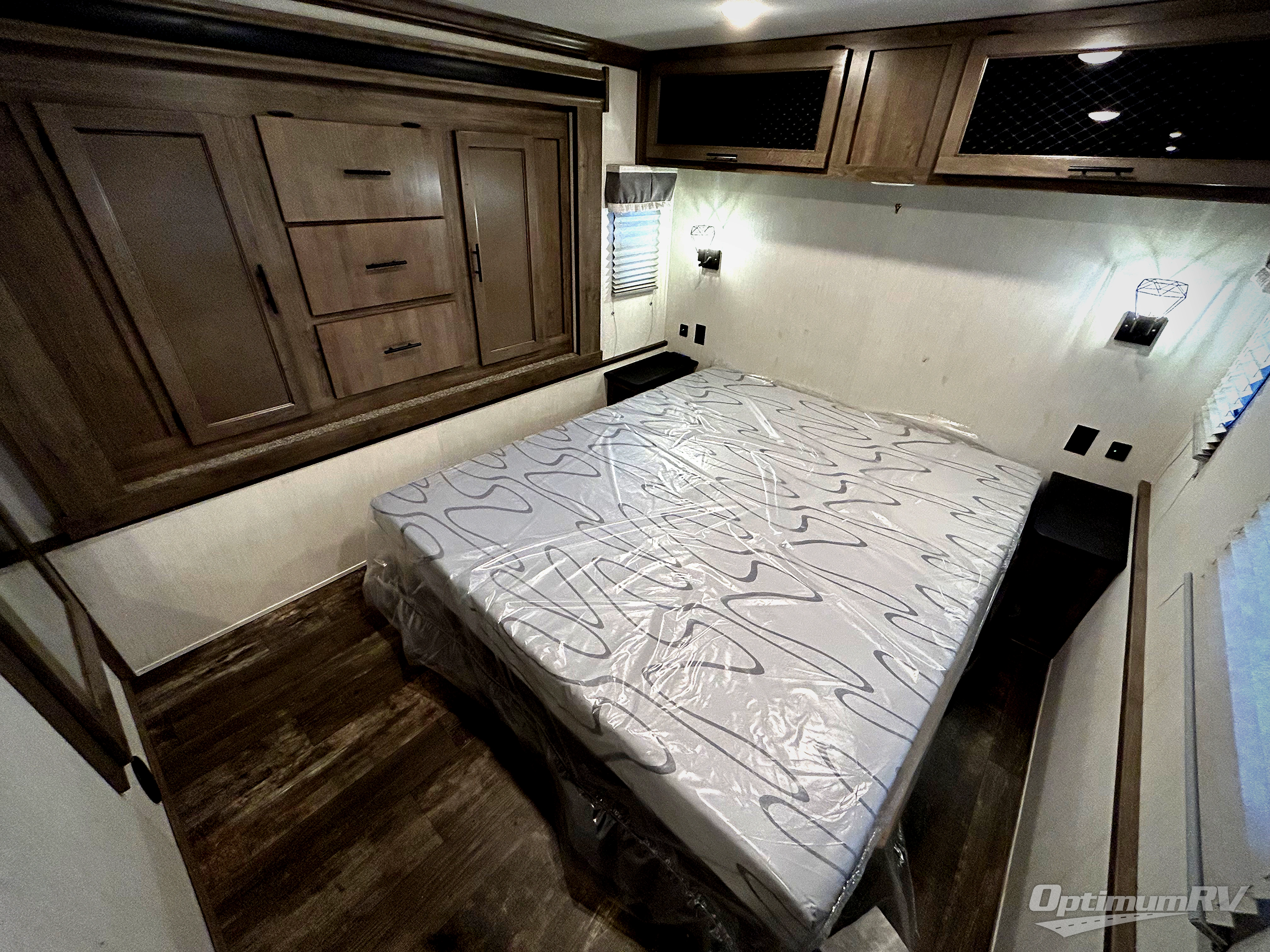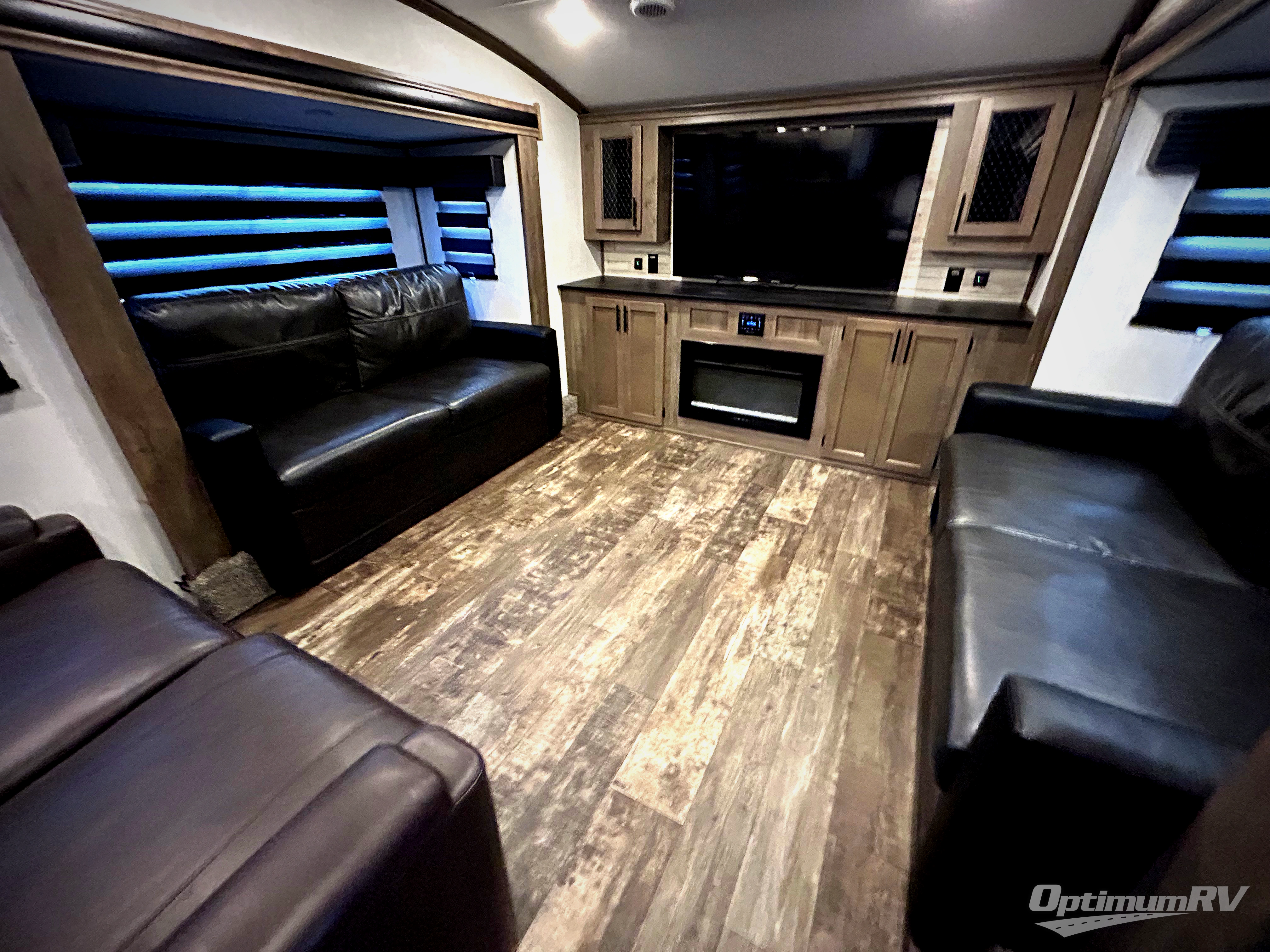 You will experience luxurious camping trips at an affordable price with any one of these Forest River Sabre fifth wheels! These models are durable and ready to travel anytime of the year thanks to features like the high-gloss gel-coat front cap with LED lighting, the PVC roof membrane, and the forced air underbelly with enclosed gate valves. The electric auto-leveling system makes setting up easy and safe, and the adjustable power awning with LED lighting will create an inviting outdoor living space. Each model includes a universal docking station which includes a black tank flush and an outside shower, and the backlit "Secure Step" landing for you to enter and exit the unit safely. Inside, you will love the design of the ambient accent lighting above the crown molding in the living area, the real wood lumbercore cabinetry, and the vintage gaslight decorative lighting!