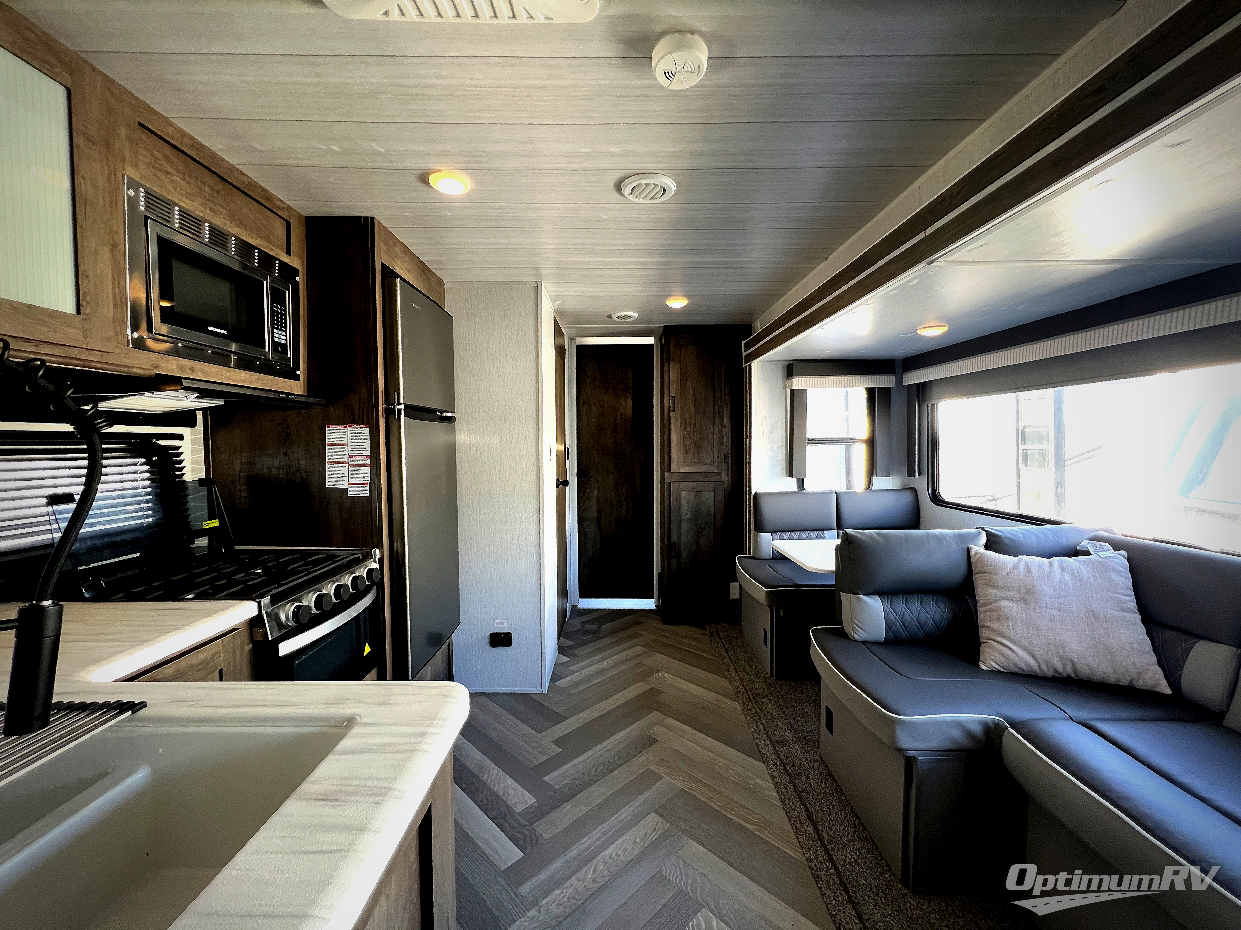 Do you need a break from the mundane camping life? If so, it's time to check out this exciting and full-featured Salem travel trailer! This unit provides two separated sleeping spaces, a rear private bunkhouse and a front private bedroom. Another feature that is just as helpful as the one in your own home is the kitchen. With an 11 cu. ft. frost free refrigerator, a three burner cooktop, a double sink, and abundant cabinet storage, you will be able to create delicious meals for the entire family. Plus, if you prefer to have a sunrise breakfast, you can simply take your preparations outside to the outdoor kitchen!