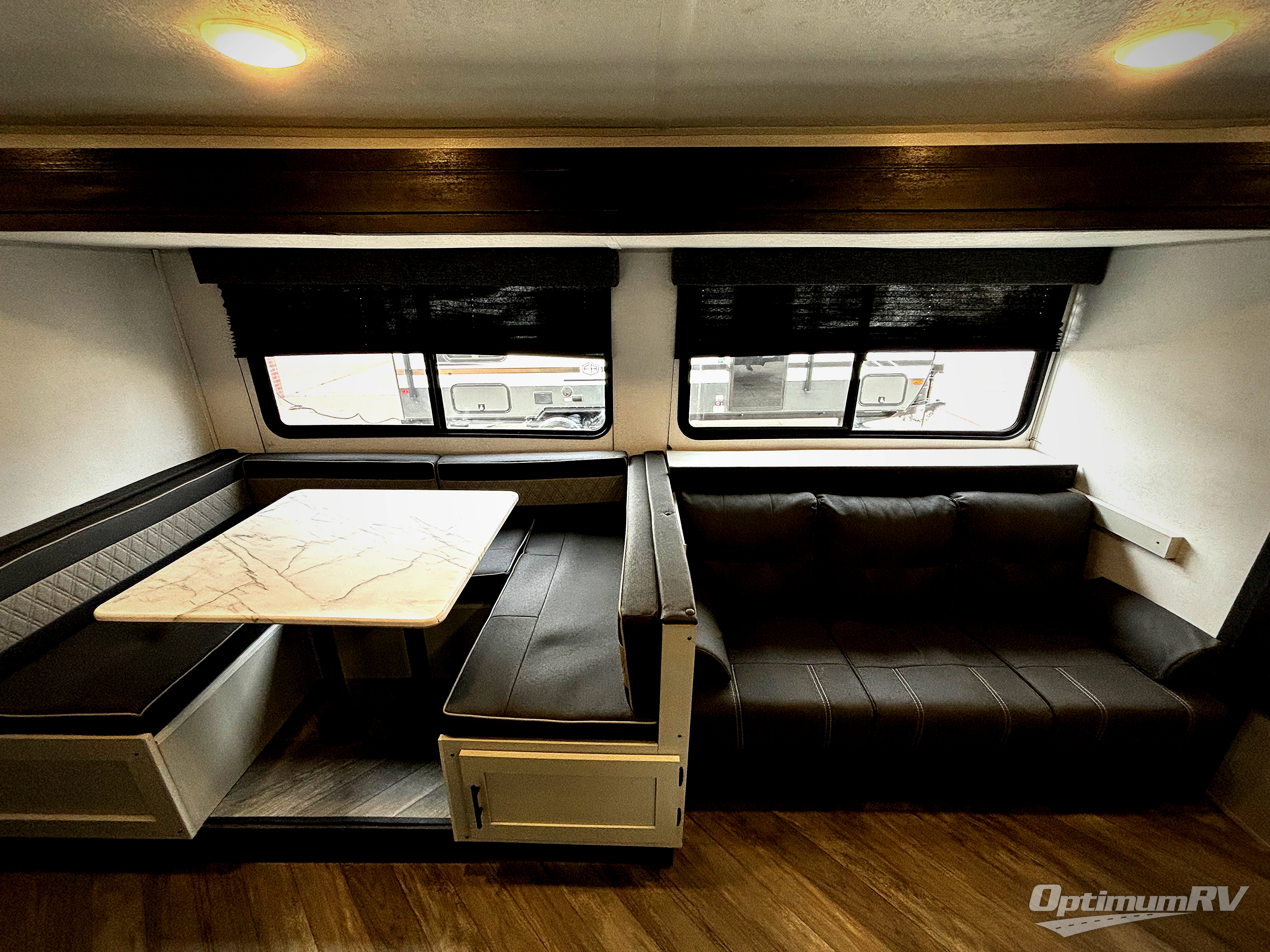 With wall-to-wall panoramic windows, the outdoors are brought inside this travel trailer! The large slide has a U-shaped dinette to enjoy your meals at and a sofa with storage access and above it is a hidden bonus bunk. The front Murphy bed offers comfortable seating during the day with a sofa and a place to lay your head at night with a 60" x 74" queen bed. Next to the kitchen pantry is a coat hook area and USB charger to keep your electronics at 100%. Prepare your best home cooked meals with the three burner cooktop and store any leftovers in the 11 cu. ft. frost free refrigerator. You can rinse the mud off either with the outside shower or in the full bathroom with the 36" x 24" shower!