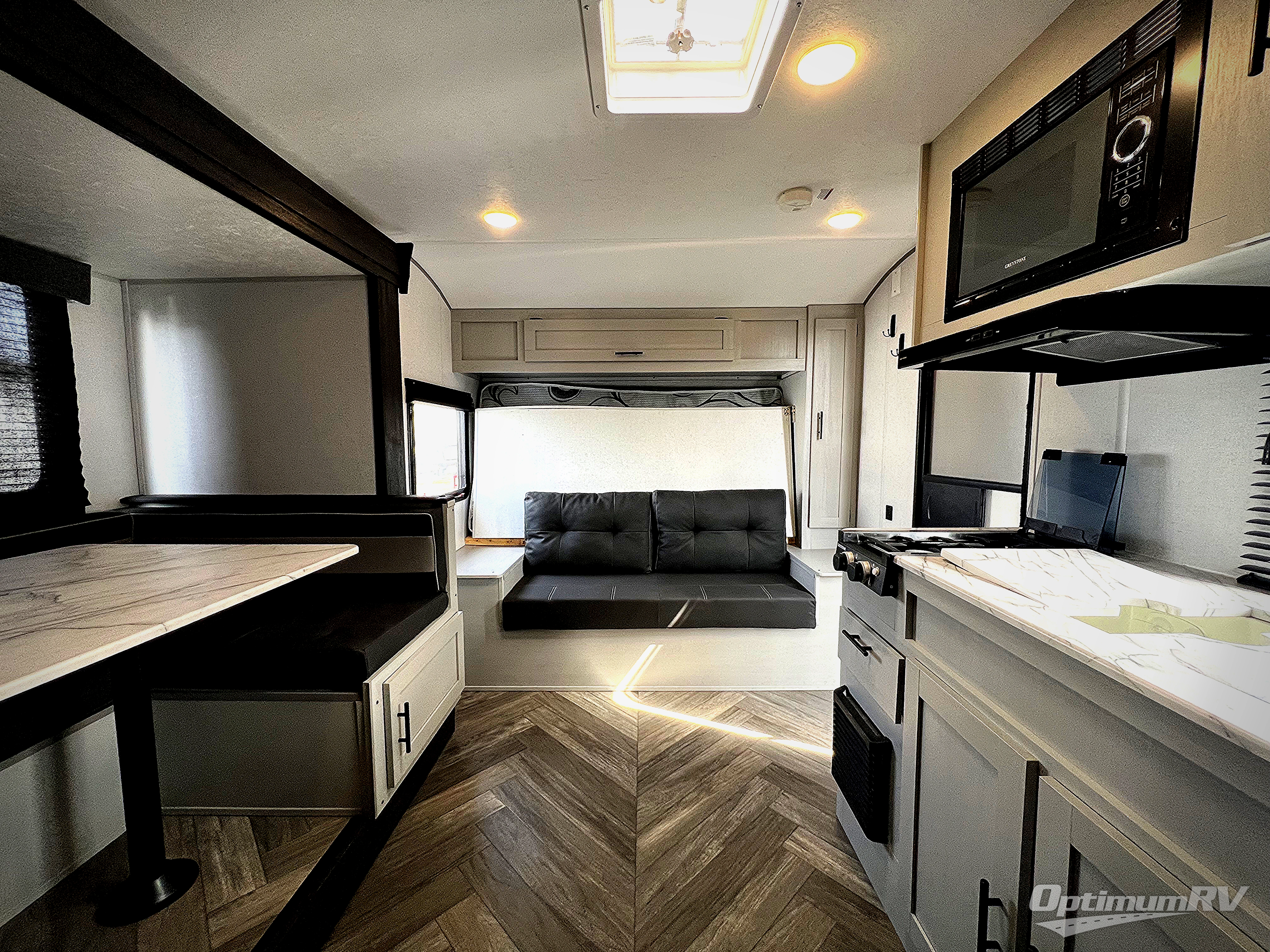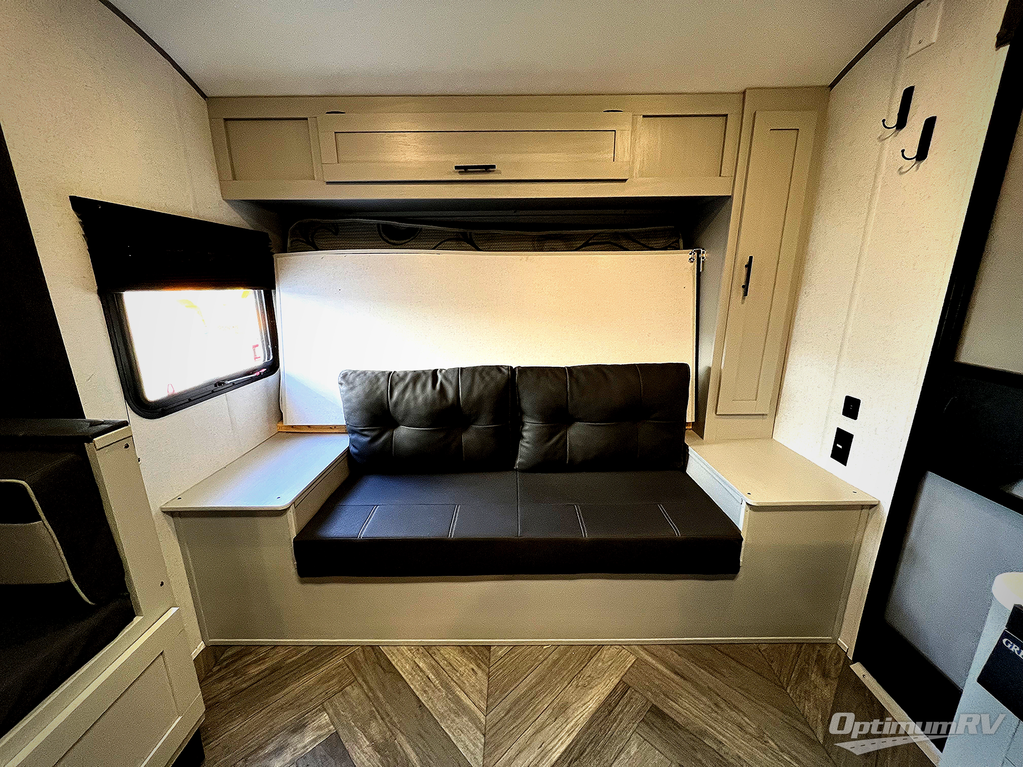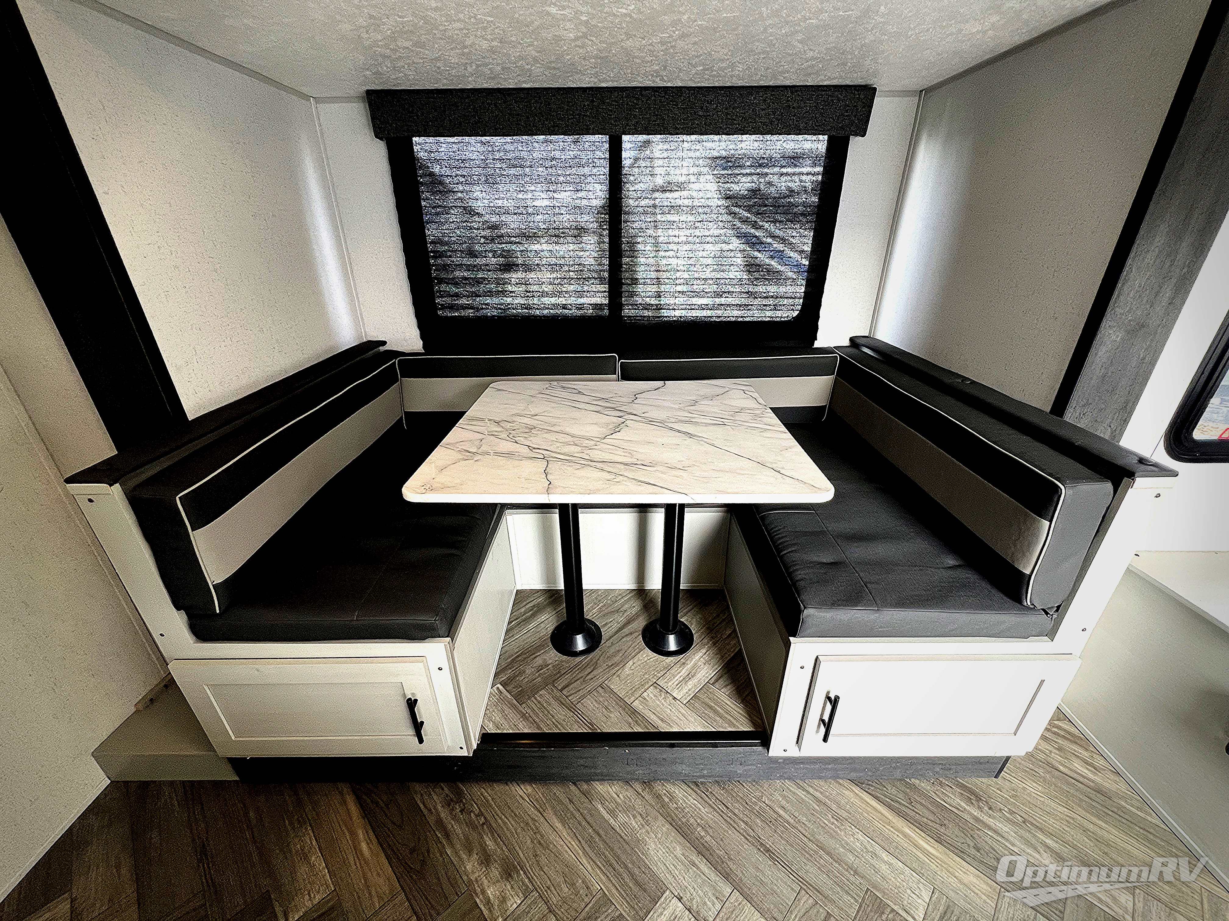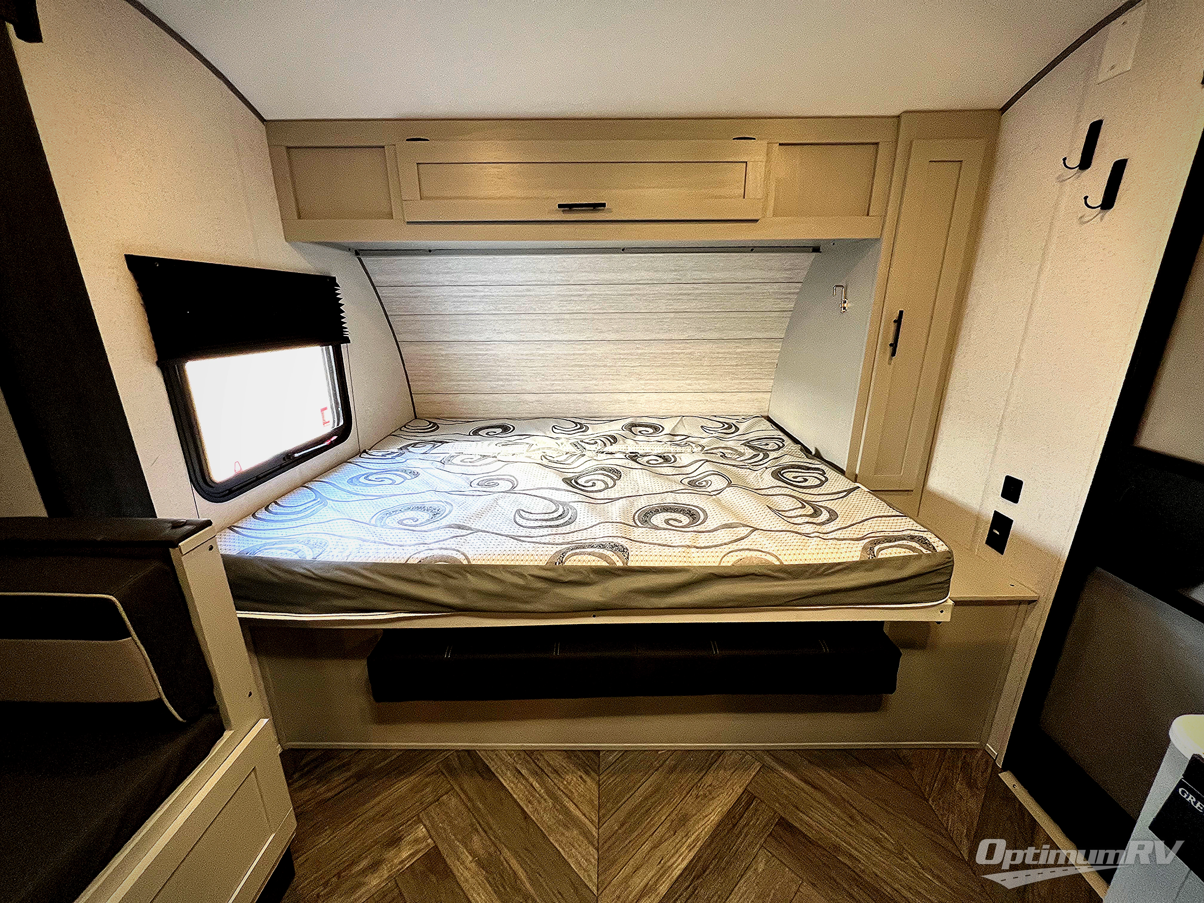 Start camping the right way in this travel trailer! It features a front Murphy bed that has a 60" x 74" queen bed to sleep on and a sofa with storage access to sit on during the day. The corner set of 48" x 72" double bunk beds come with storage to keep things out of the way and are conveniently next to the rear corner bathroom which has a 36" x 24" shower to freshen up in each morning. You can prepare your best home cooked meals indoors with the two burner cooktop or head to the outside LP griddle to fry up some burgers while breathing in some fresh air. Enjoy your meals, play card games, and even sleep at the U-shaped dinette slide. You will also appreciate the outside shower and the exterior front oversized door for storage access.