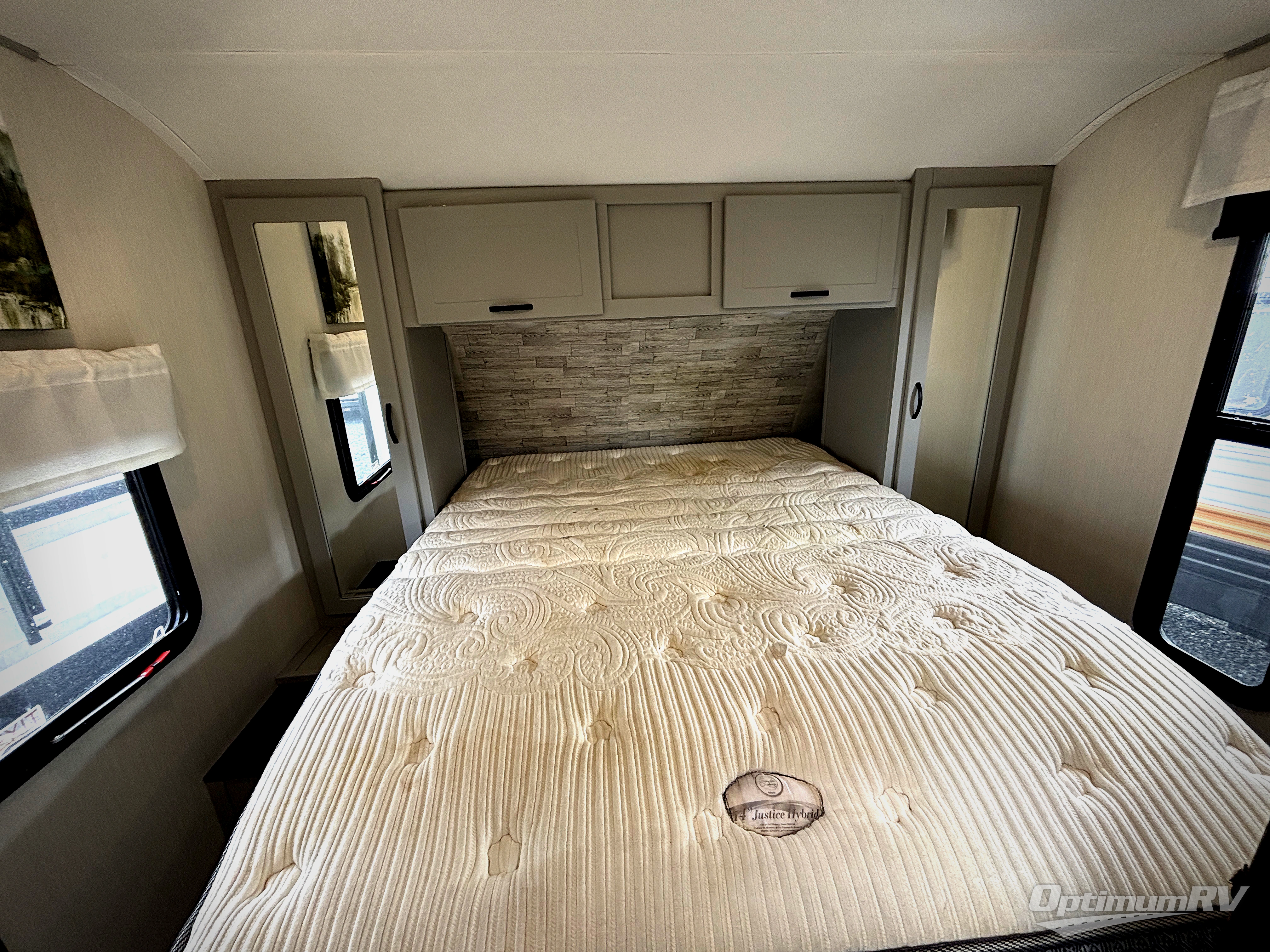 Each Vibe travel trailer by Forest River includes Hyper Lyte construction and a durable laminated "Aluma Frame" for years of use. The heated and enclosed underbelly allows you to extend your camping season, and the LED-lit exterior speakers will keep the party going as you grill outdoors and visit with family. Inside, you'll find LED lights to keep everything bright and open, a Bluetooth stereo, roller shades for your privacy, and many more amenities per region. These models also include cable and satellite prep and a digital TV antenna with a booster so you can stay connected to the outside world if you choose. Make the easy choice and choose a Vibe travel trailer today!