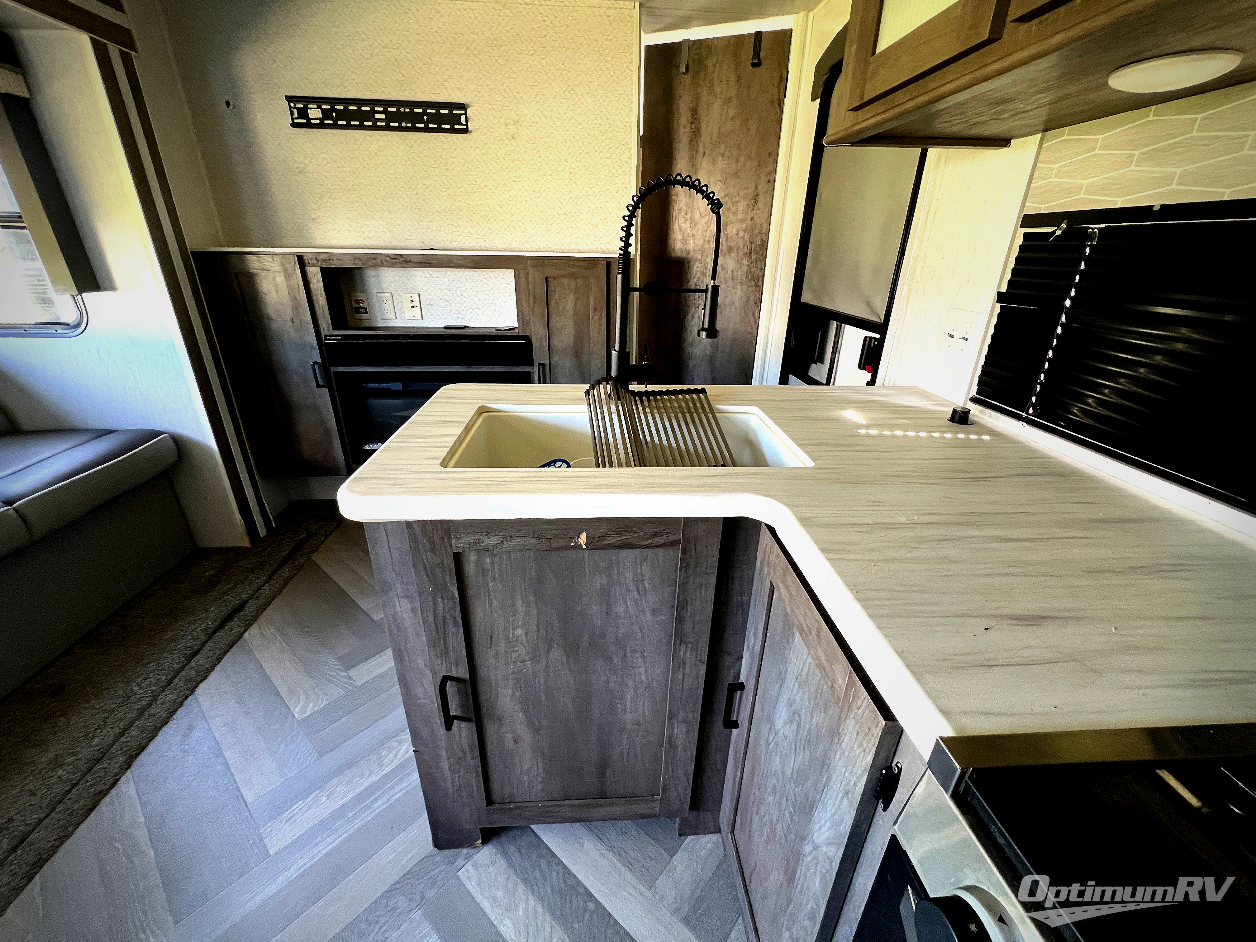 Forest River offers you the highest quality and the best components in its Wildwood travel trailer! The fully walkable one-piece roof is ultra reliable, and the rest of the construction is just as dependable with the powder-coated I-beam frame, cambered chassis, R-7 fiberglass insulation, nitrogen-filled tires, and triple-seal slide-out system. The Wildwood is not only full of quality, but it is also full of style with its herringbone luxury vinyl flooring, upgraded designer furniture, high-gloss exterior metal, and seamless countertops. The Wildwood also comes with some extra features that will make your life more comfortable, like the exterior speakers with blue LED light, the tablet-compatible USB ports, the residential vanity with shower caddy, and true stabilizer jacks with JT's Strong Arm.
