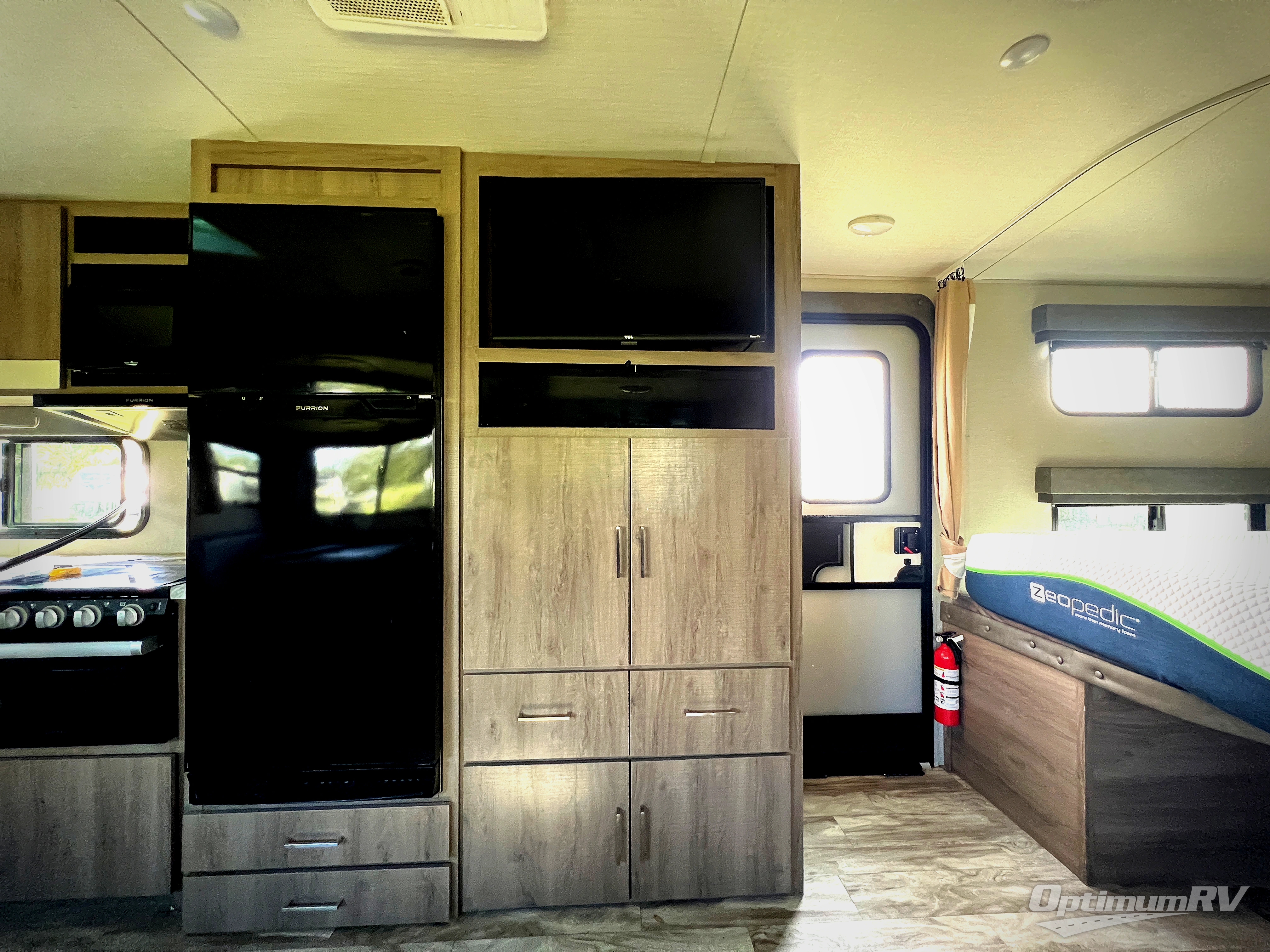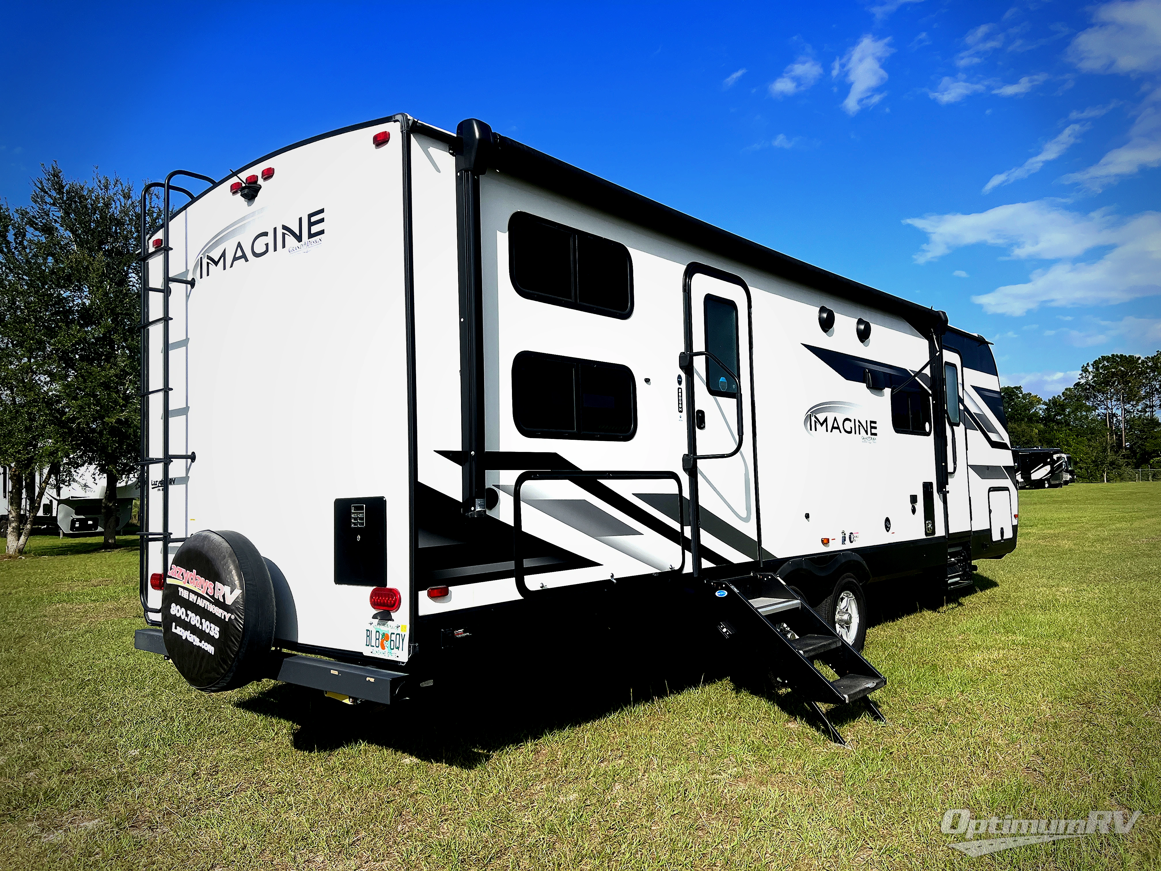 Just imagine leaving the world behind and secluding yourself away with your favorite people in your Grand Design Imagine travel trailer! The Imagine has been designed to enjoy extended season camping with its Four-Season Protection Package. This package includes a high-capacity furnace, a heated and enclosed underbelly with suspended tanks, a designated heat duct to the subfloor, and a high-density roof insulation with attic vent. You'll have maximum head room on the interior with 81" radius ceilings, and there is motion-sensor LED lighting in key areas so that you don't have to search for light switches in the dark. The exclusive drop-frame pass-through storage compartment is going to allow you to bring along lots of equipment, and the universal docking station is an all-in-one location for utilities and hook-ups. You'll also have industry-leading tank capacities so that you can fill and empty your tanks less often.