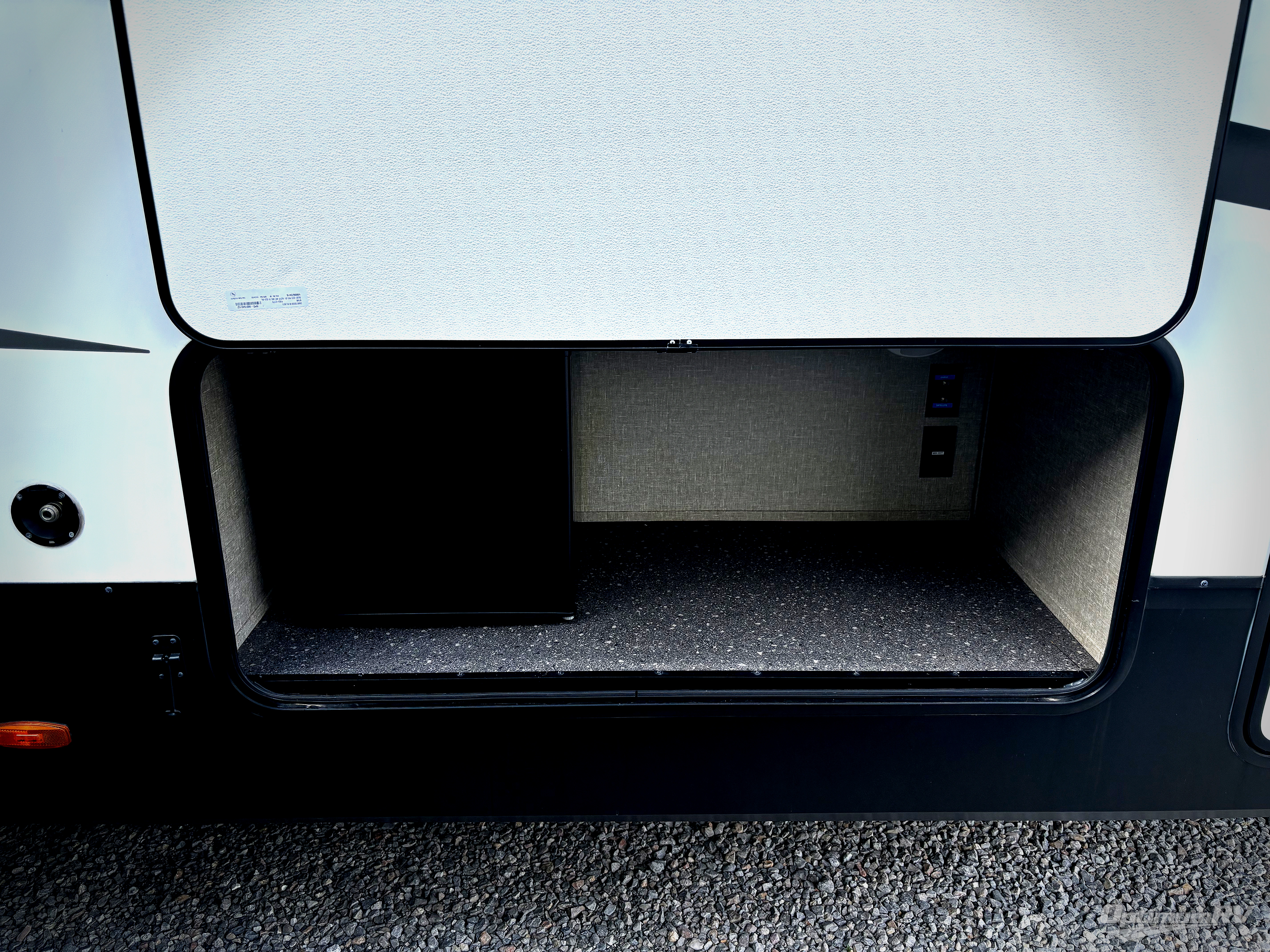 Get ready to enjoy the great outdoors with your family and friends with this fifth wheel at your favorite campsite! The middle bunkhouse with two bunk beds and drawer storage below within a slide and the dresser make this a popular space for guests. Everyone can share the full bathroom which offers linen storage and a space savings door, and you will have your own front bedroom with a queen bed and clothing storage. The main living and kitchen area offers dual slides for maximum floor space, a three person theatre seating, a U-shaped lounge with table to dine at, and an island that the cook will love. You will also find a gourmet kitchen and a 10 cu. ft. refrigerator, plus a pantry for all the goodies. And outside you can stow some beverages in the 1.6 cu. ft. refrigerator and relax under the 18' electric awning.