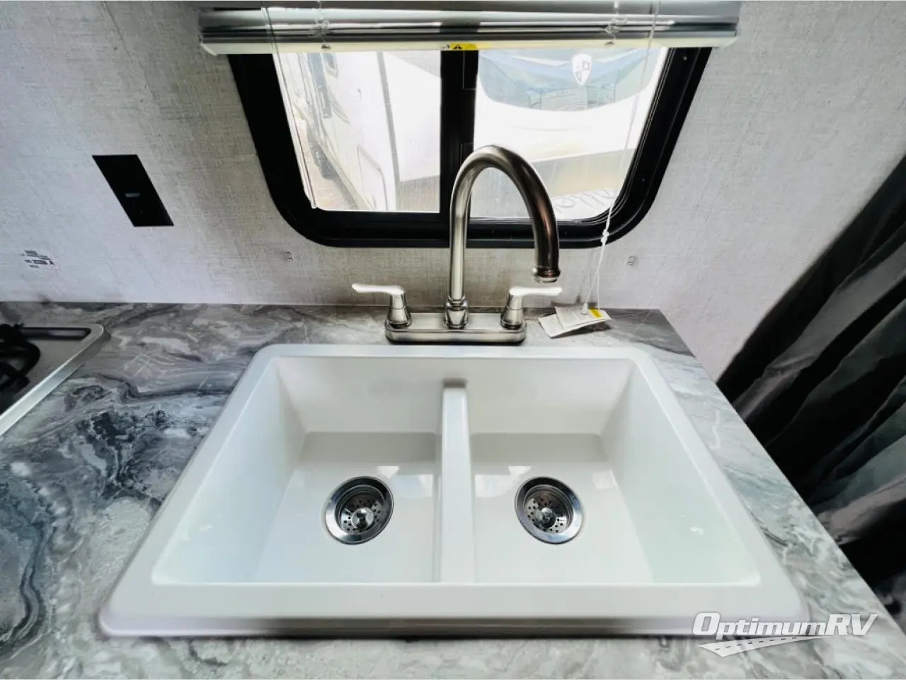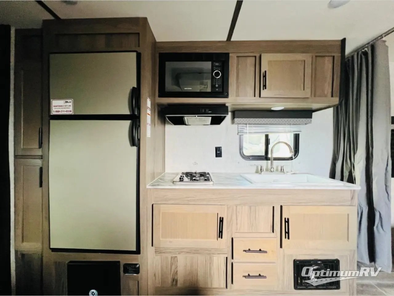 With any Kingsport Ultra Lite by Gulf Stream, you can enjoy a lightweight travel trailer on a budget with plenty of standard features to enjoy, and the required Lite Value Package offers convenience, comfort and Tech-Ready upgrades such as Wi-Fi and satellite TV ready connections, solar panel prep, back-up camera hookups, and multiple USB ports to keep the electronics charged. Each is constructed with a one-piece synthetic vinyl roof, fiberglass insulation hand-cut and glued in place, Butyl caulk for better seal and fewer streaks, and full-width steel outriggers for superior strength and support. Inside is easy to care for with vinyl wallcovering and high-performance vinyl flooring throughout, plus you will enjoy the upgraded furniture package, the designer backsplash in the kitchen, and the craft-made cabinetry with designer drawer and door pulls. Make your selection now!
