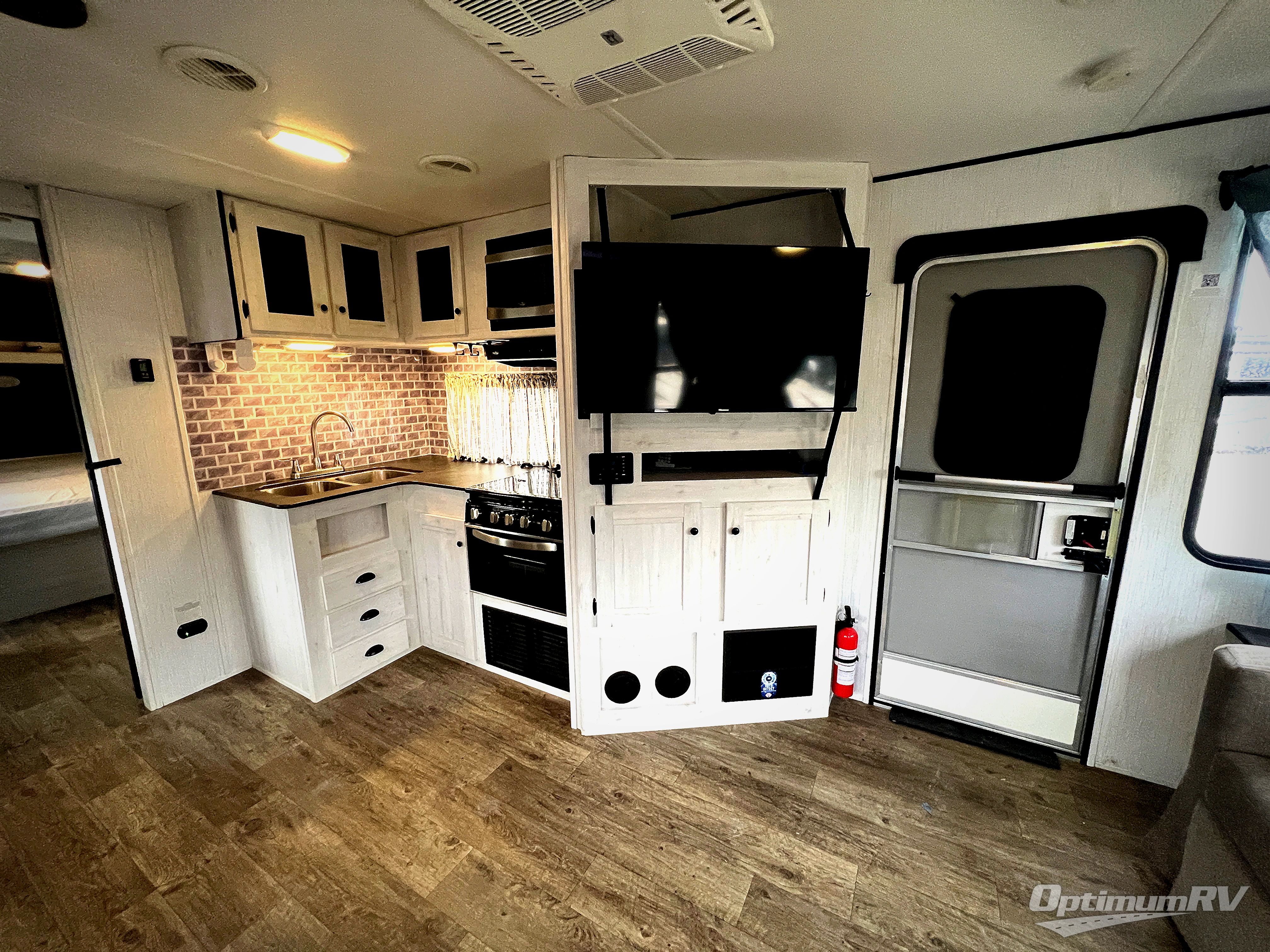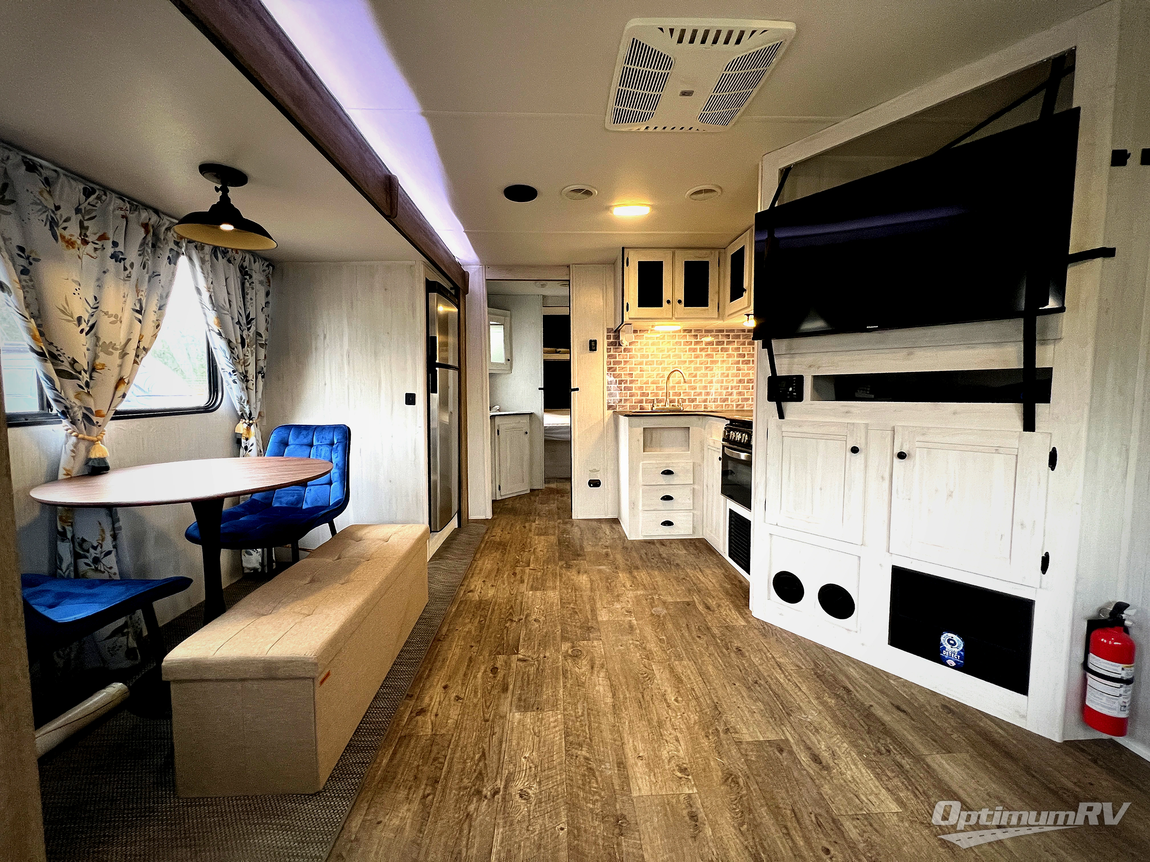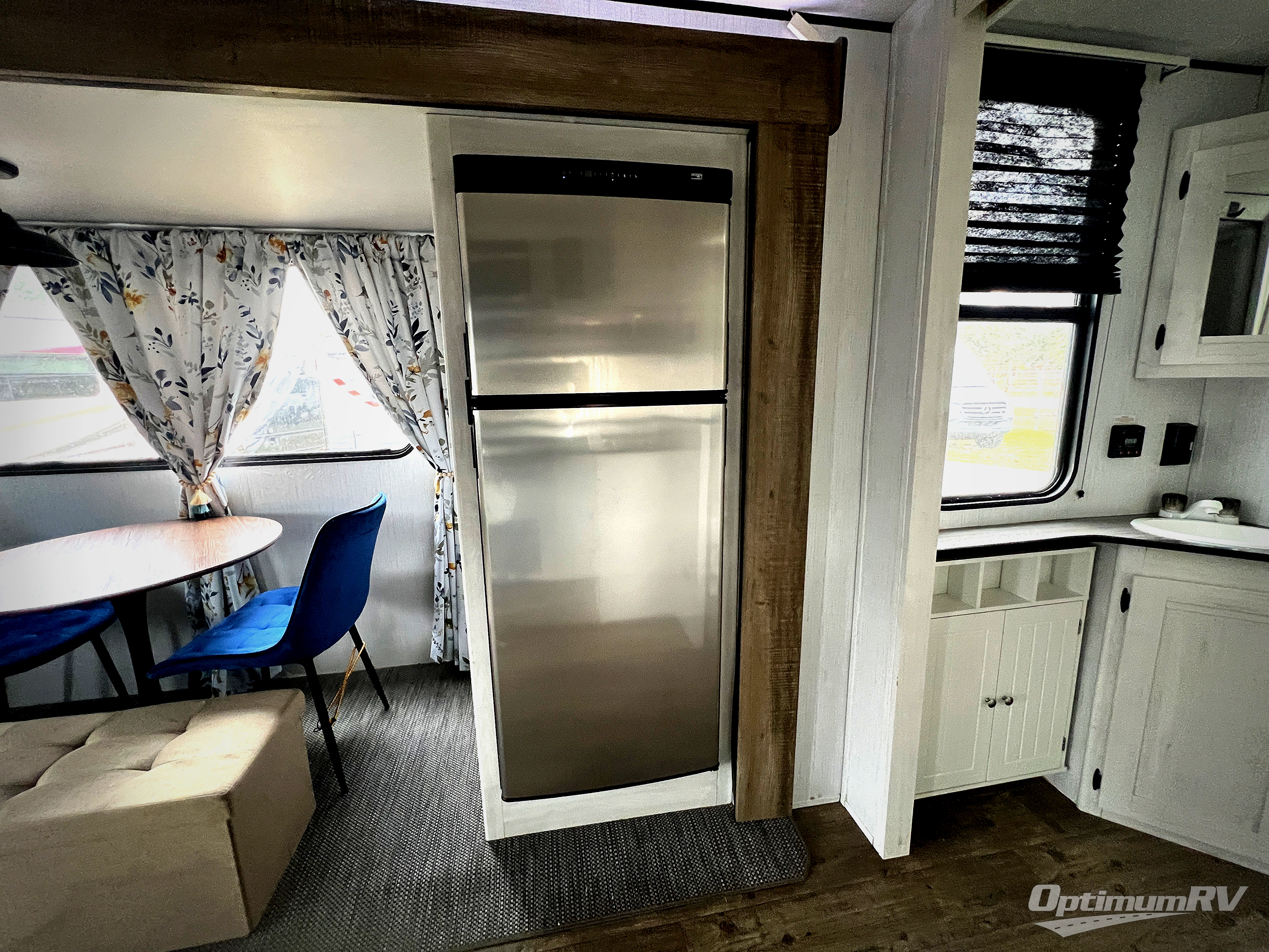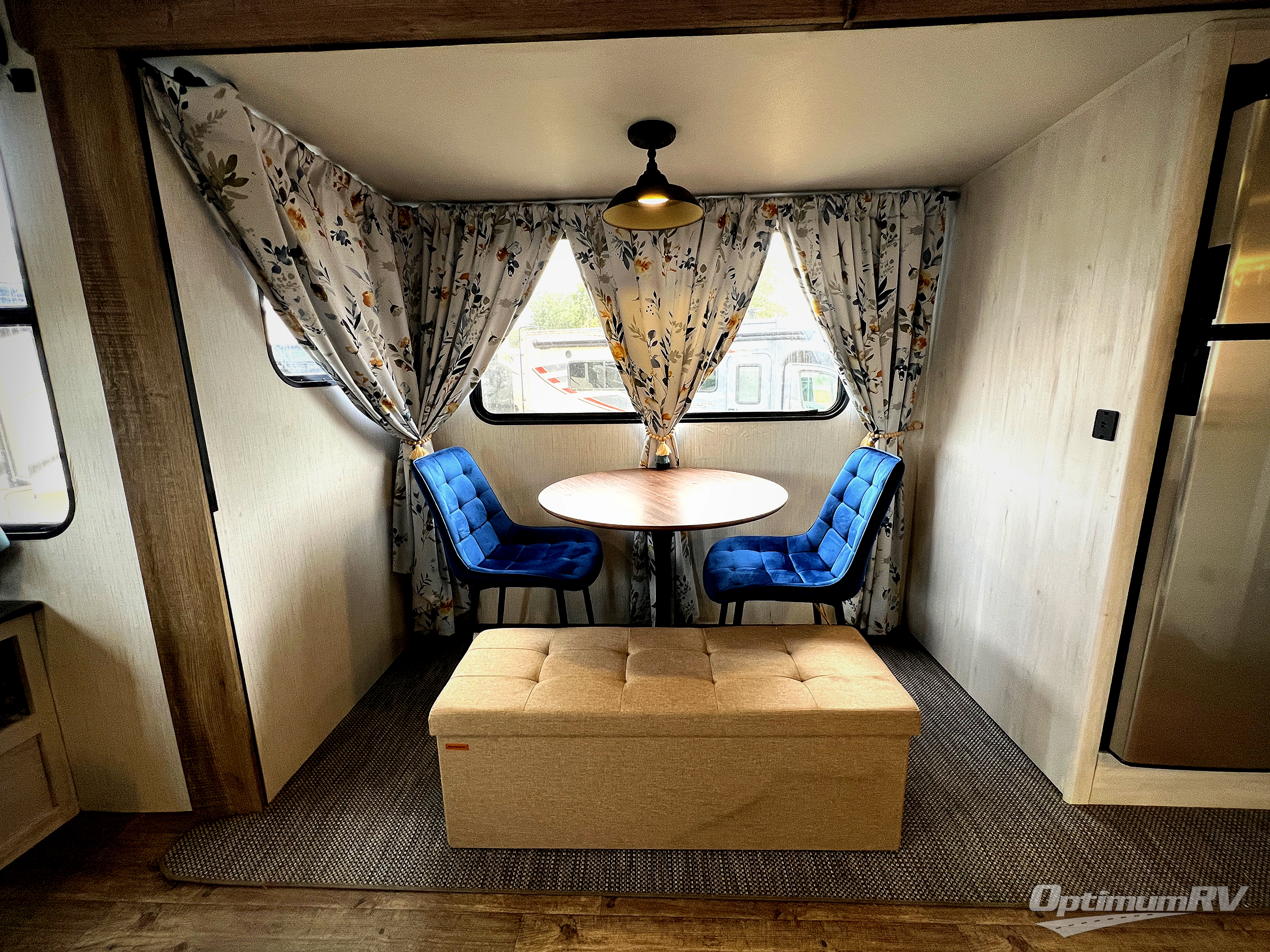 With dual entry doors, you will experience a smooth flow of traffic in and out of this travel trailer! One of the entrances even leads directly into the front master suite with a queen bed that has under-bed storage and wireless cell charging stations, plus an entrance into the walk-through bathroom. Prepare your best home cooked meals with the three burner cooktop and 10 cu. ft. stainless steel refrigerator then enjoy them at the U-shaped dinette slide. Relax each evening on the rear sofa across from the optional LED HDTV if you chose to add it or head outside to relax underneath the 20' power awning with LED light strip to highlight the good times!