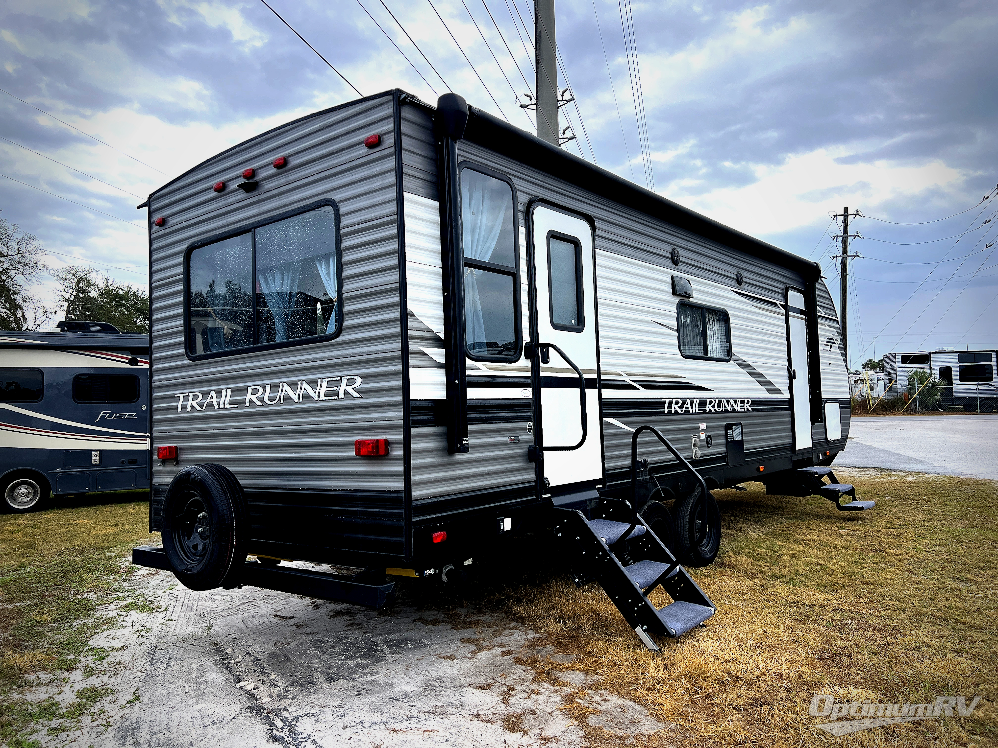 Paradise awaits at the end of the trail with one of these Heartland Trail Runner travel trailers! Experience better wind and water deflection, added strength, and a reduction of tongue weight with the hybrid aluminum front profile that has an aerodynamic radius front cage. A cambered structural steel I-beam frame holds them together and a heated enclosed underbelly protects the units vitals. There is an industry leading mammoth storage space of 57 cu. ft. pass-through storage so you can bring all of your outdoor gear with you. Roller shades in the main living area, woven flooring in all slide rooms, master suites with CPAP storage, and upgraded pressed counters give you the at-home feel you desire. Come find the perfect model for you today!