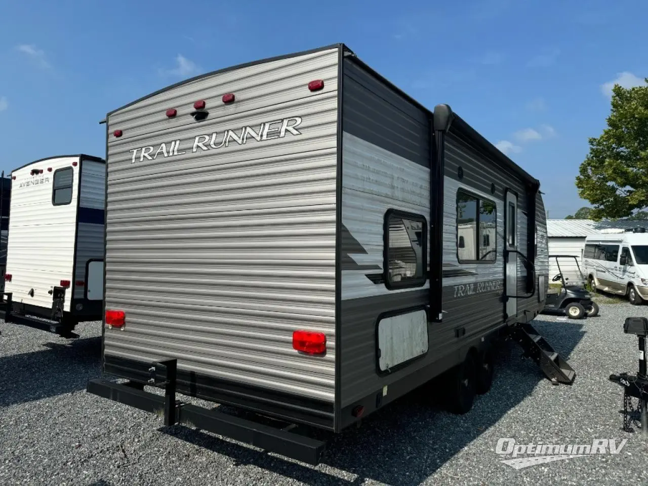 Paradise awaits at the end of the trail with one of these Heartland Trail Runner travel trailers! Experience better wind and water deflection, added strength, and a reduction of tongue weight with the hybrid aluminum front profile that has an aerodynamic radius front cage. A cambered structural steel I-beam frame holds them together and a heated enclosed underbelly protects the units vitals. There is an industry leading mammoth storage space of 57 cu. ft. pass-through storage so you can bring all of your outdoor gear with you. Roller shades in the main living area, woven flooring in all slide rooms, master suites with CPAP storage, and upgraded pressed counters give you the at-home feel you desire. Come find the perfect model for you today!