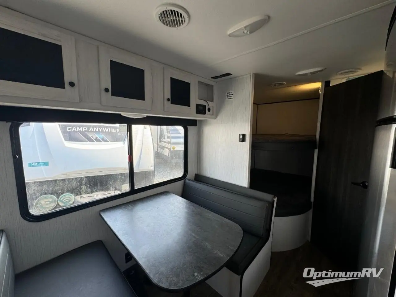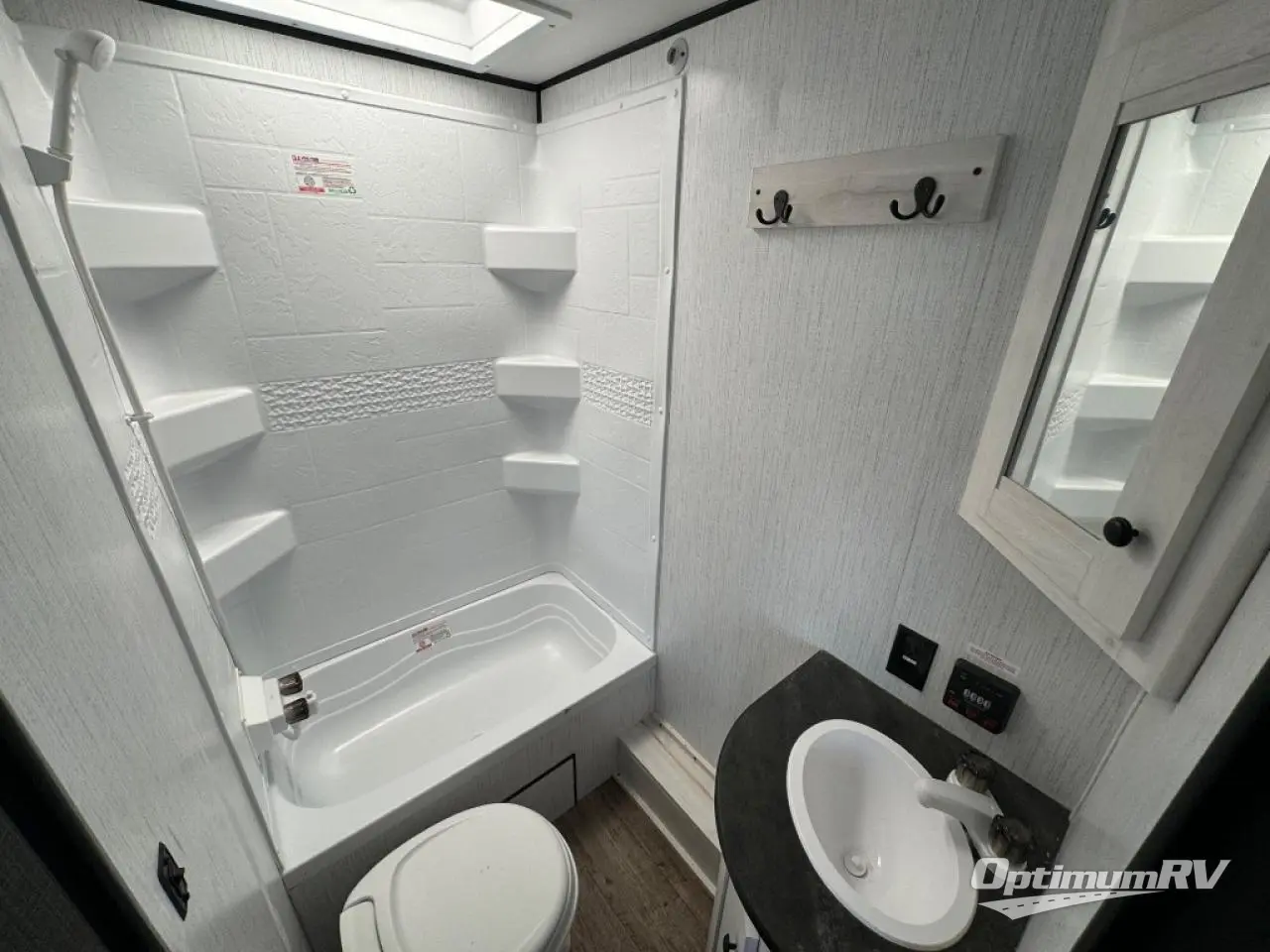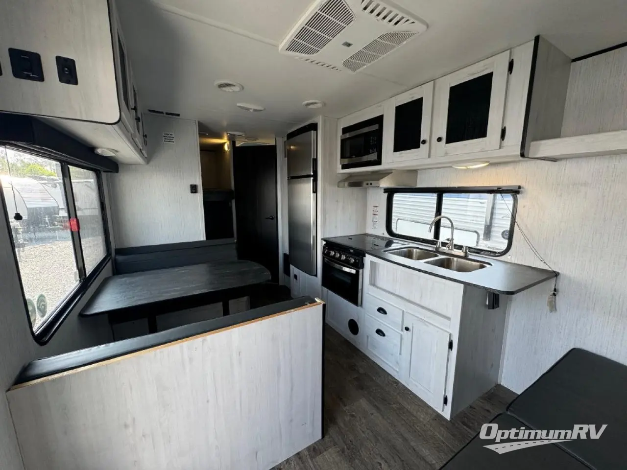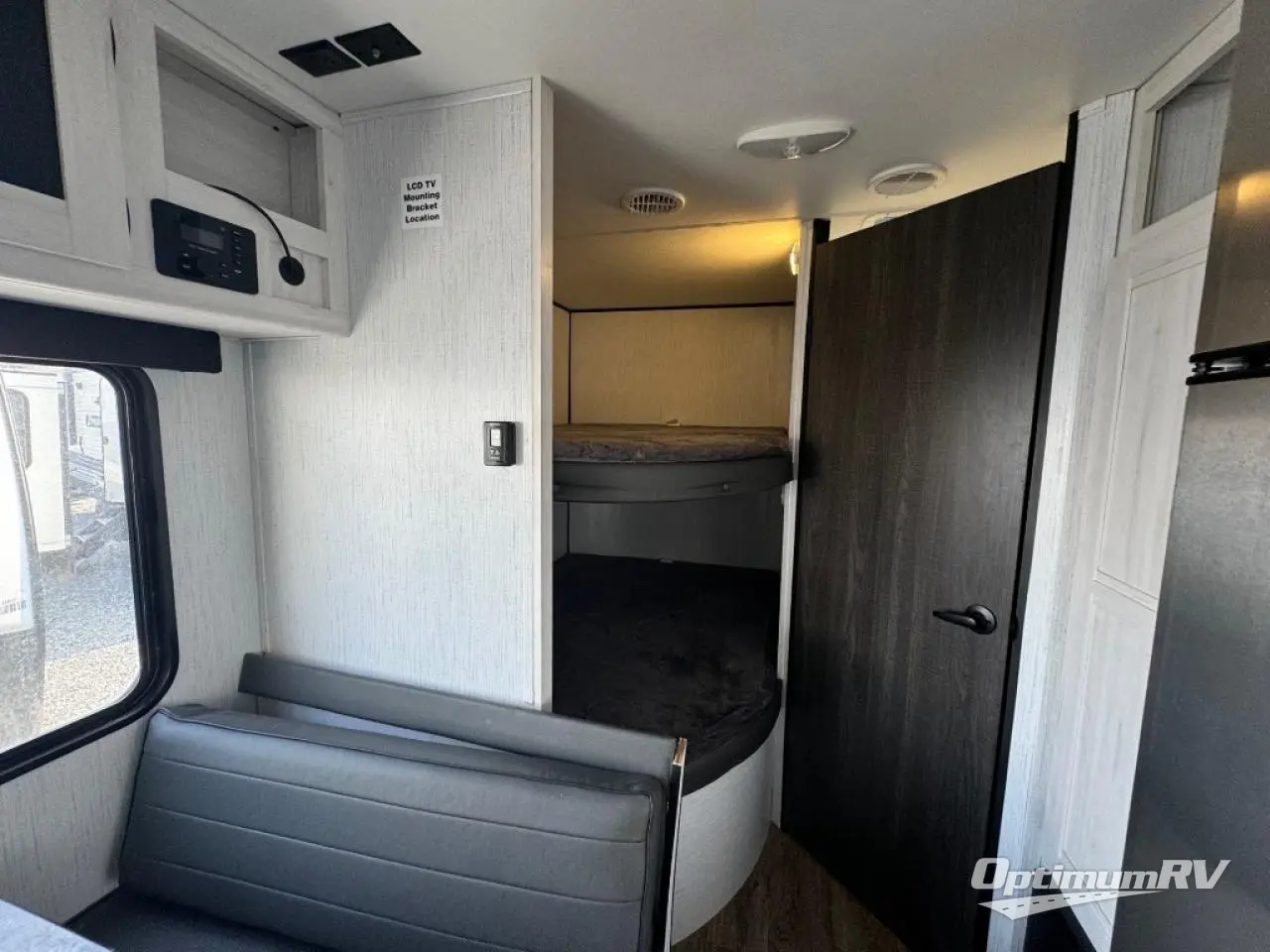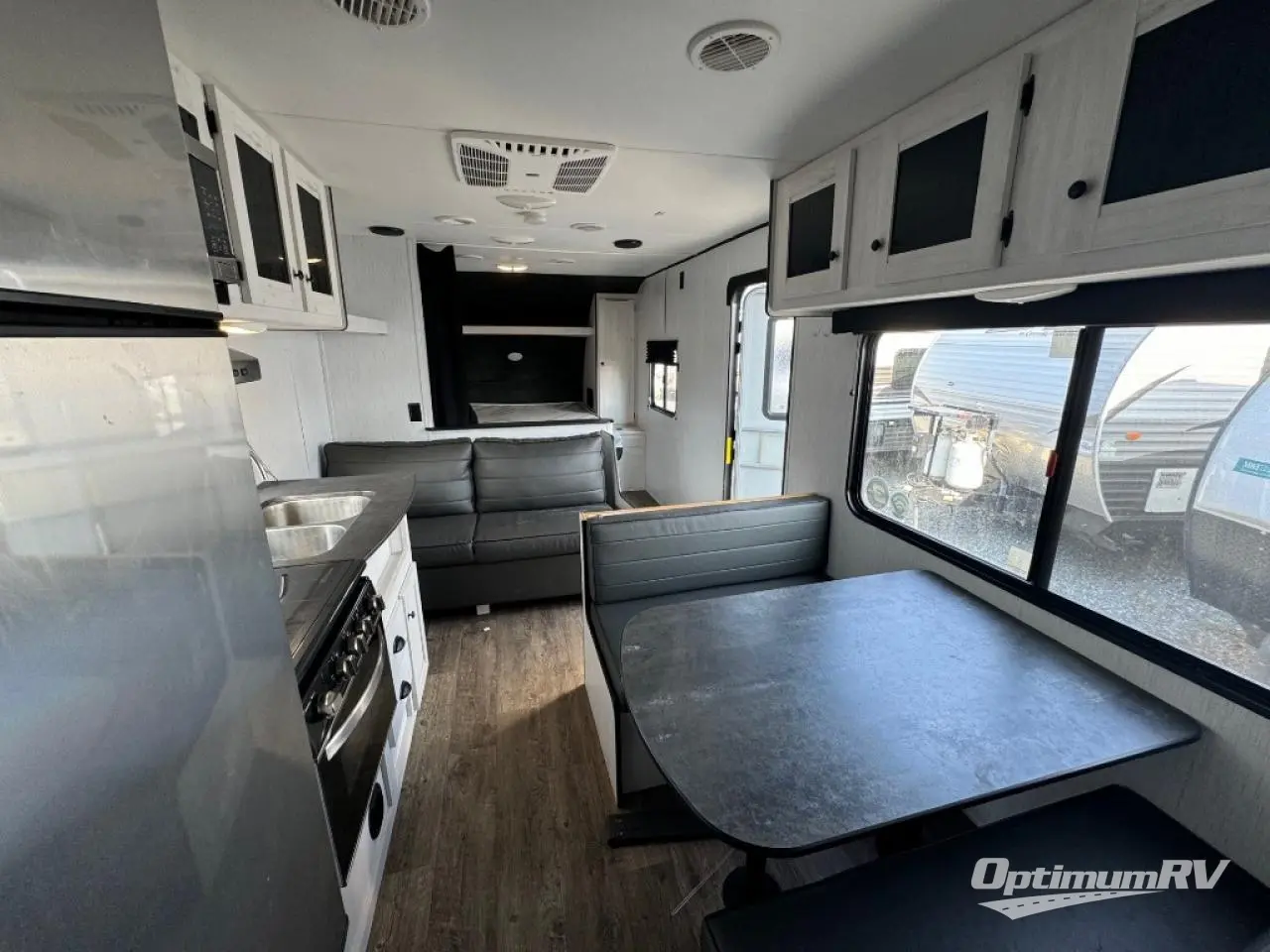 The whole family will love camping in this travel trailer! It has everything you need from a set of double bunk beds to a 14' power awning with LED light strip and outside shower. The front queen bed has under-bed storage to keep extra blankets or suitcases out of the way. After getting a good night's rest, head to the rear corner bathroom to freshen up in the ABS tub/shower surround with skylight above and then fry some eggs up on the three burner cooktop. You can enjoy your meals at the booth dinette and even convert it into an extra sleeping space, plus there is a sofa to take an afternoon nap!