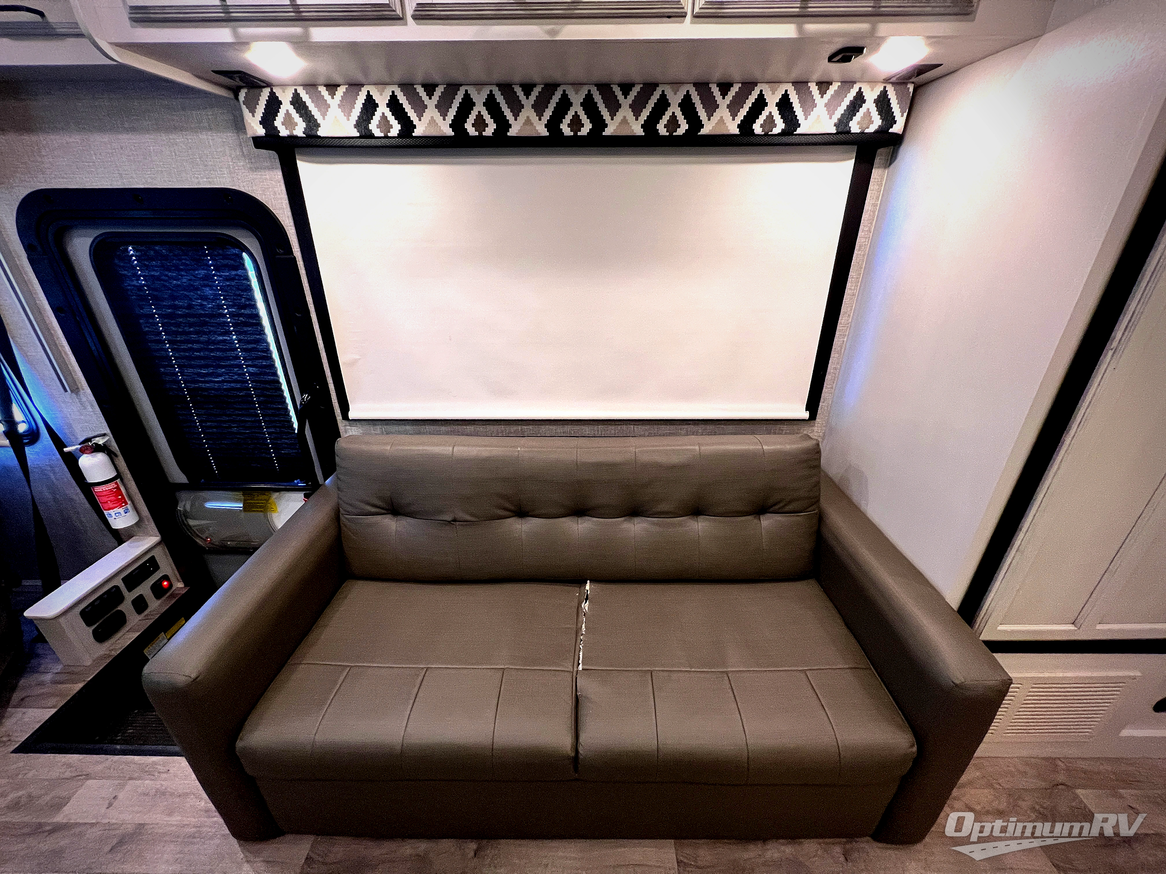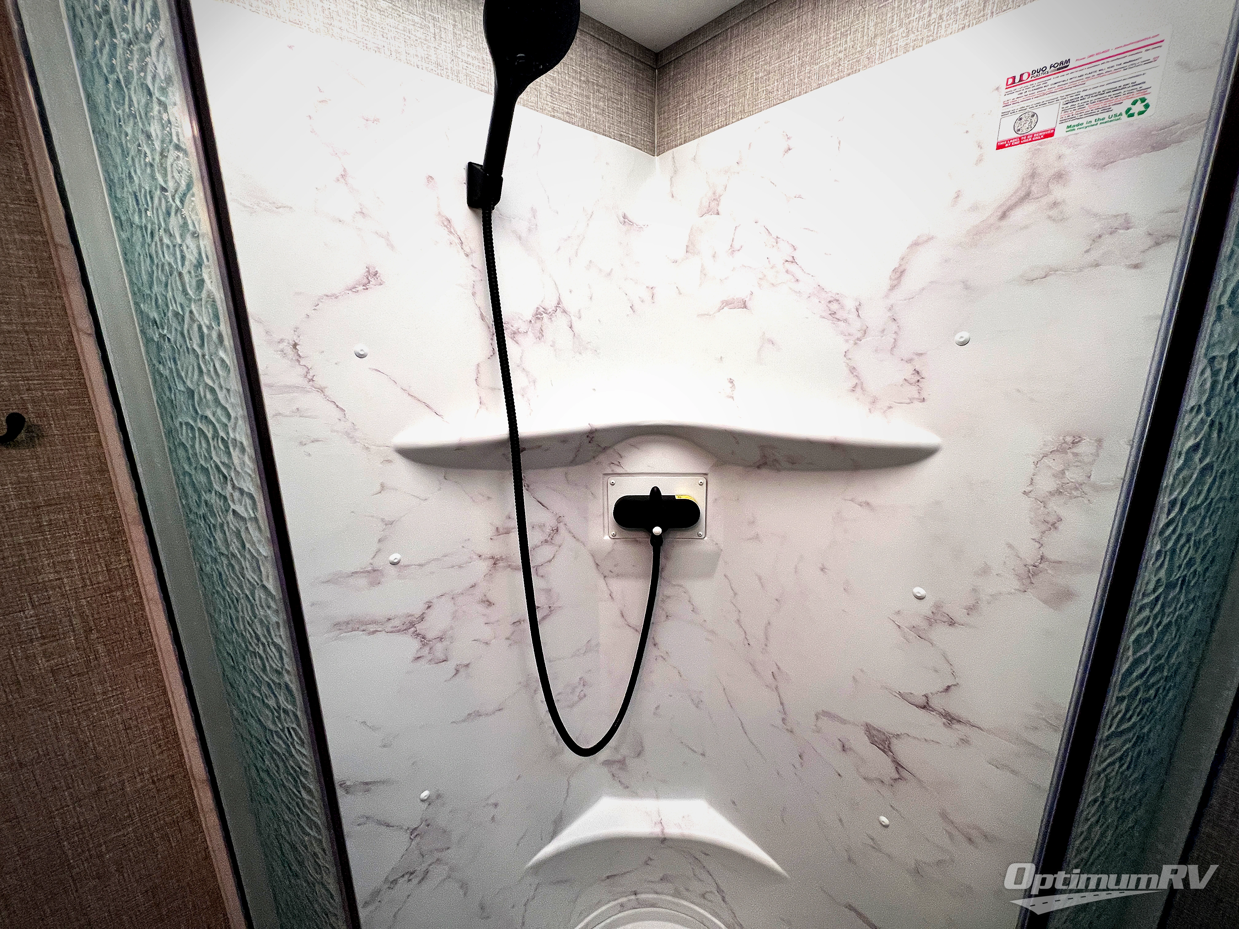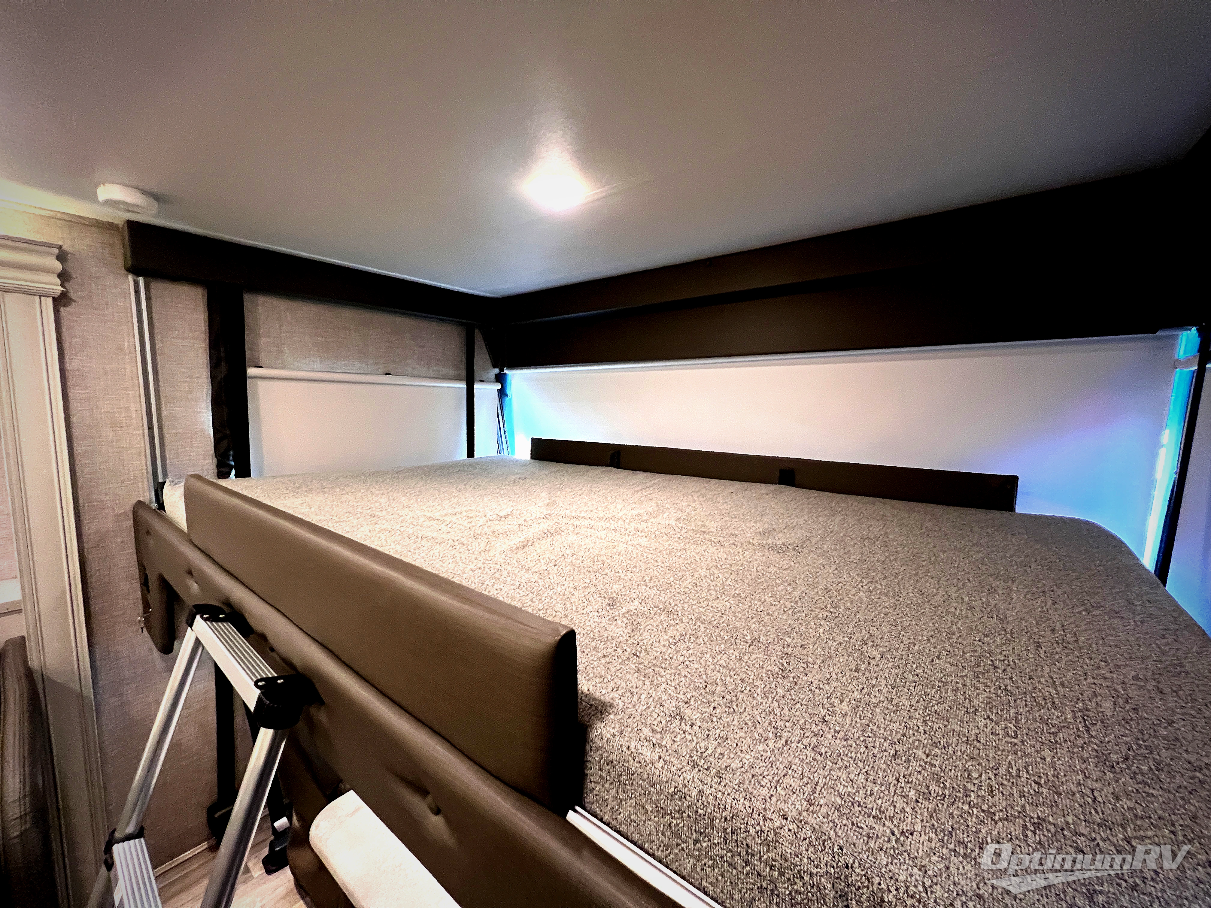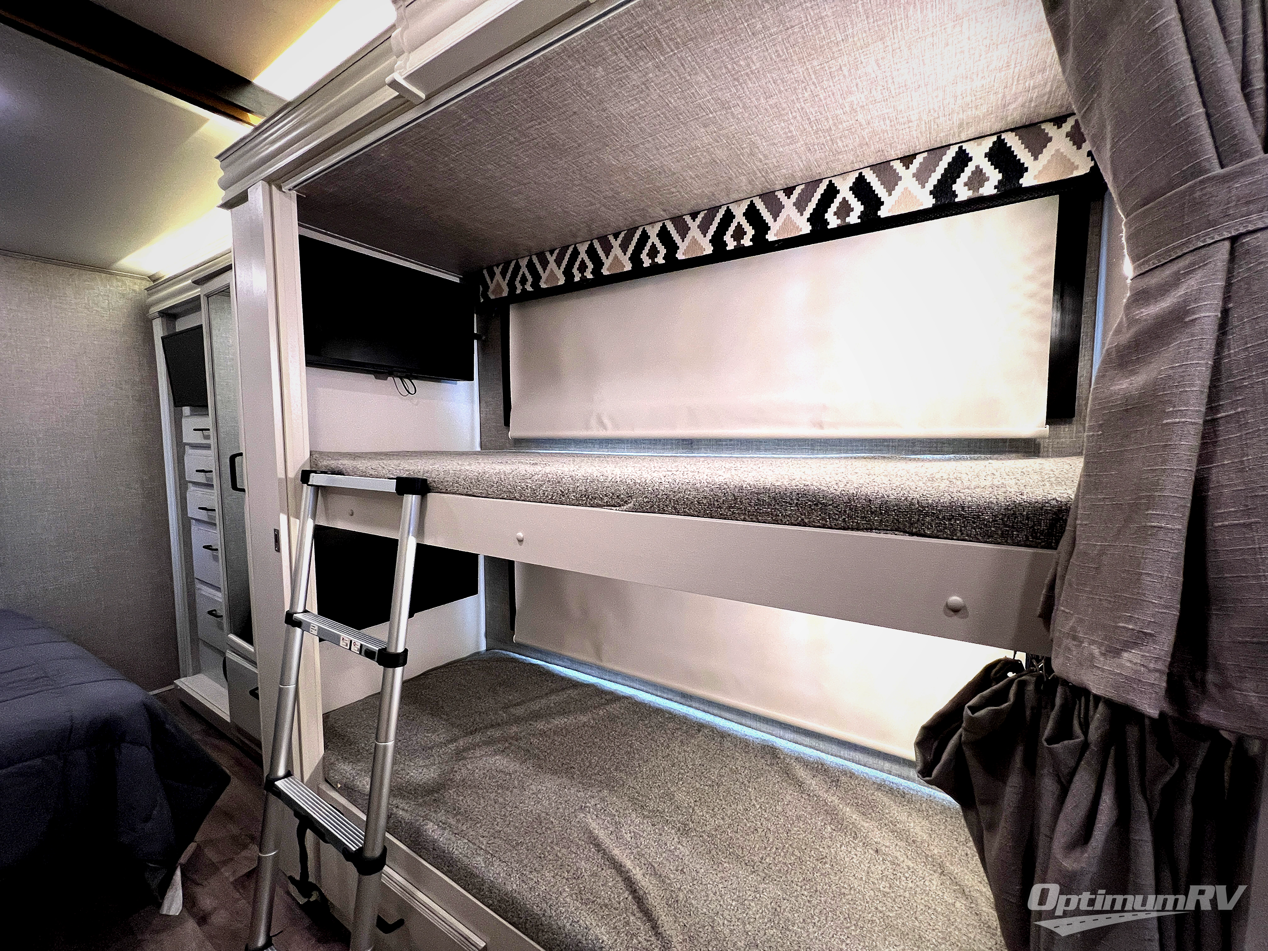 Lots of entertainment, plenty of sleeping space and full kitchen amenities make traveling in this coach super convenient! There is plenty of space to spread out thanks to the full-wall slide, and the double door bathroom gives you access either from the rear bedroom or the main area near the bunk beds. You can sleep like a queen while the kids or your guests sleep on the bunk beds and watch their own TV, and/or the drop down overhead bunk if you added that option. Some might even sleep on the sofa and Jayco-exclusive, easy-operation legless dinette table once set up for bedtime. There is a 39" LED HD Smart Fire TV on a lift to watch inside, and an exterior entertainment center with TV to watch while relaxing under the 23' electric awning and enjoying the outdoors.