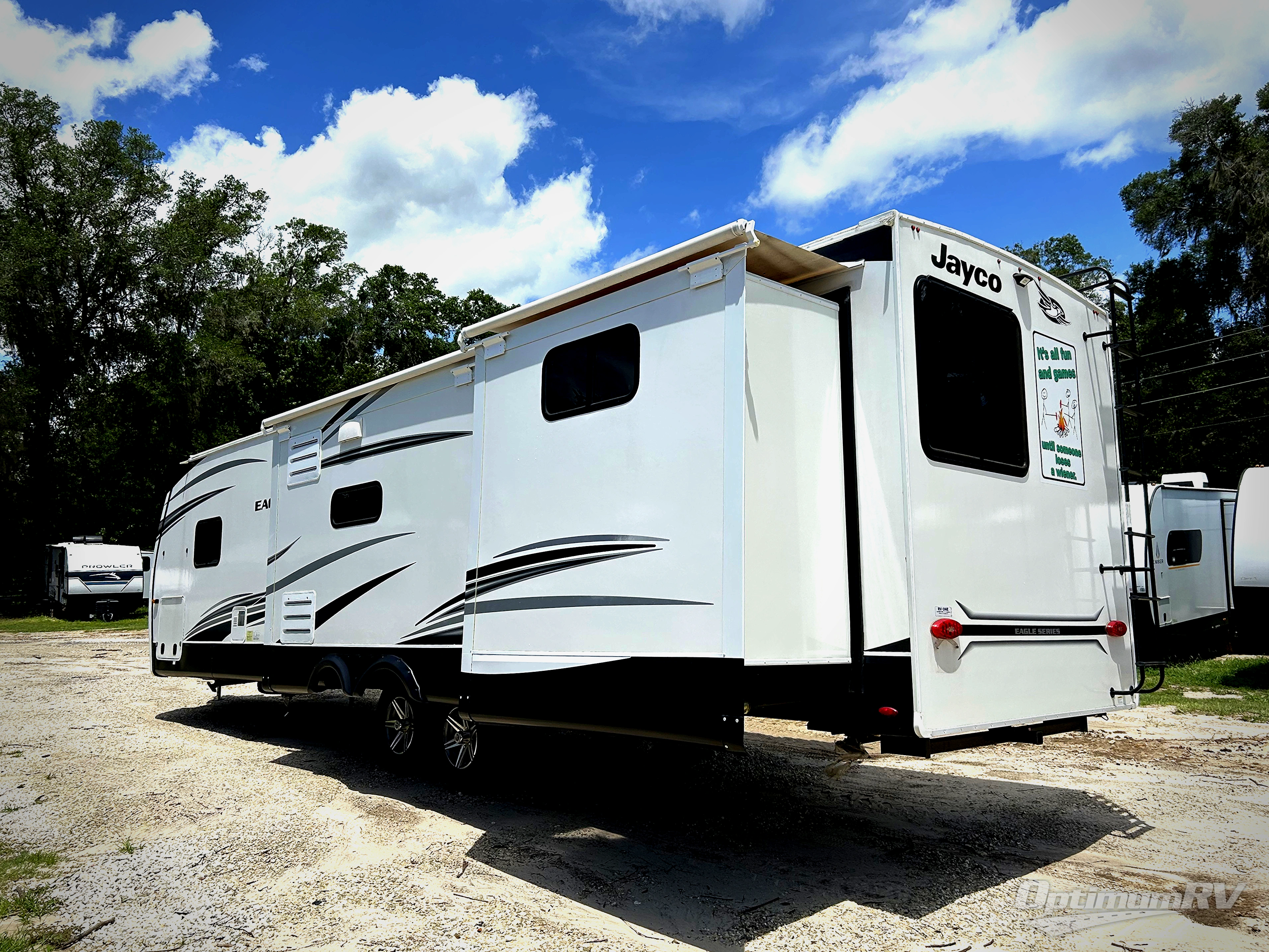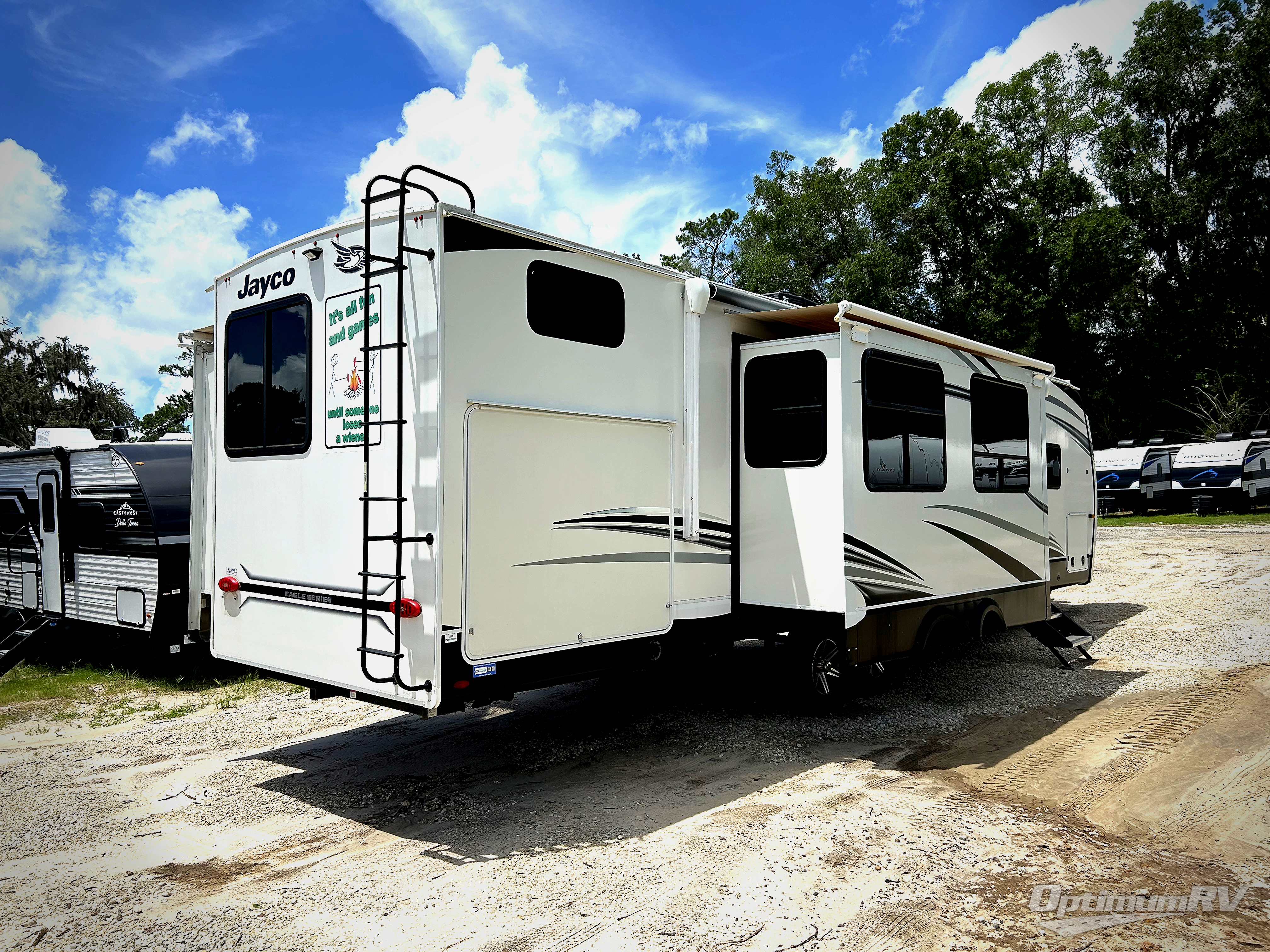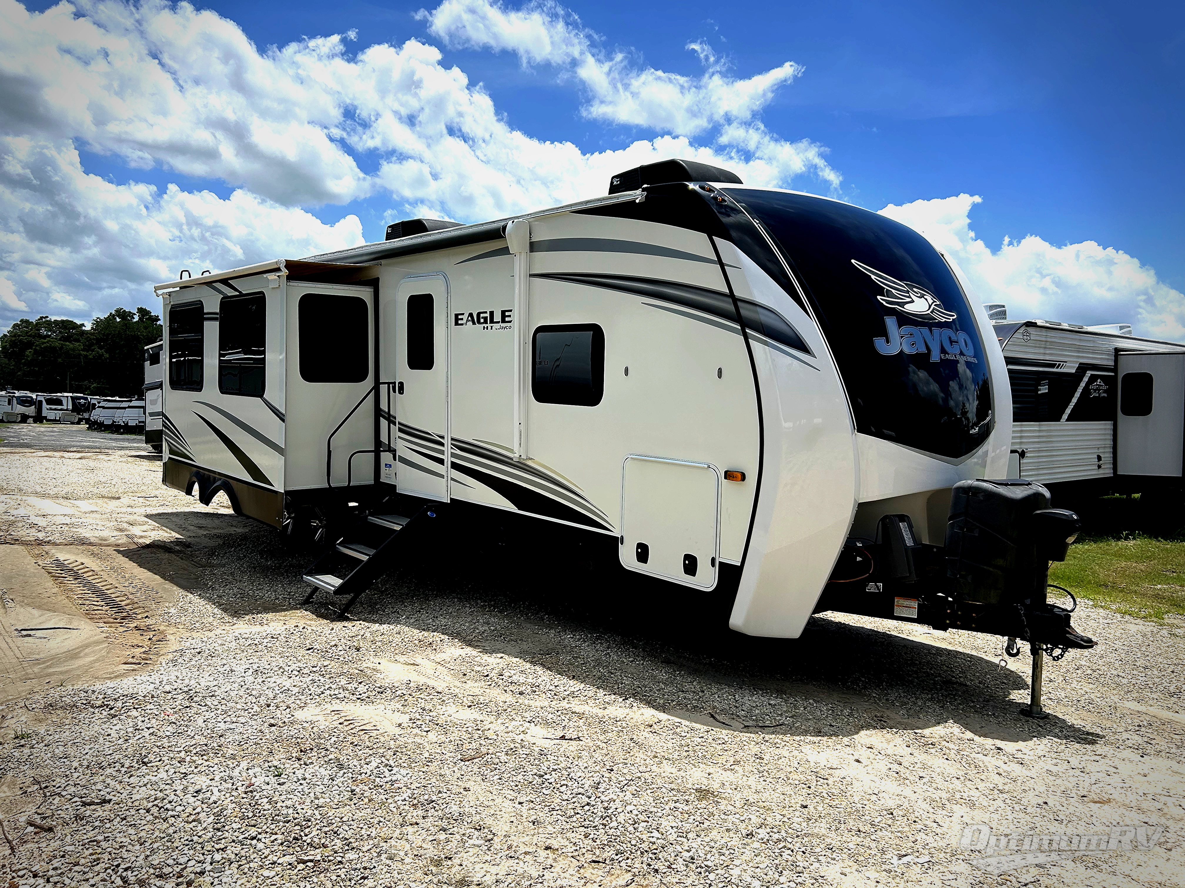 Experience a comfortable tow with every one of these Jayco Eagle HT fifth wheels and travel trailers! They are built with a Stronghold VBL aluminum frame, vacuum bond laminated gel-coated fiberglass exterior walls, and a Magnum Truss roof system with a one piece, seamless DiFlex II material that has been tested as the strongest roof in the industry. The HELIX cooling system comes with an exterior mounted 15,000 BTU "Whisper Quiet" A/C unit, Jayco exclusive insulated dual duct design, directional and closeable A/C vents, and larger air vents with user accessible filters so you can stay cool even on the hottest summer day. With a mandatory Luxury package, you will get handy features like the JAYCOMMAND smart RV system to control your unit at the touch of a finger, an electric auto-leveling so you can set up quick and easy, and blackout roller shades for added privacy. Come find the right one for you today!