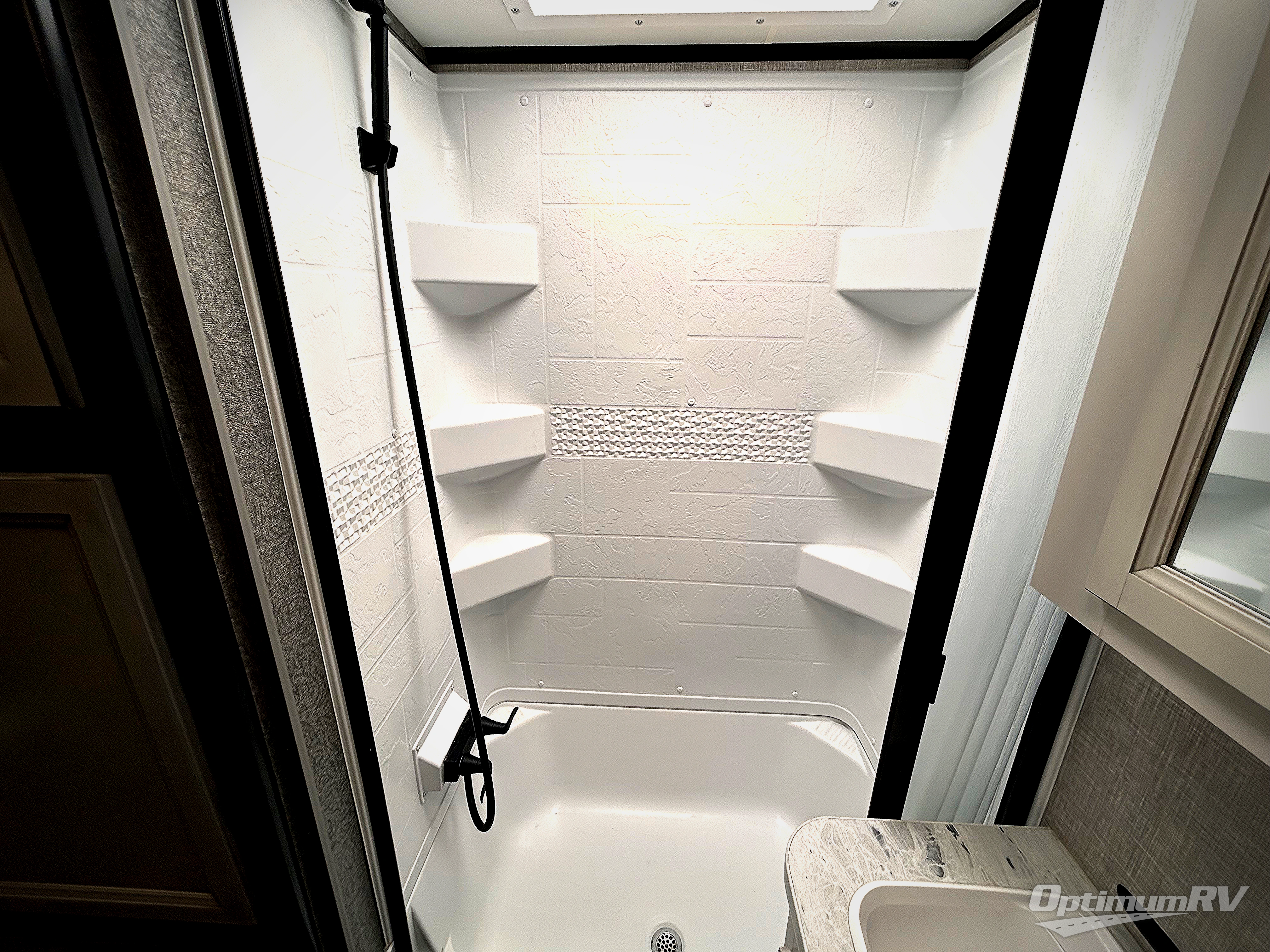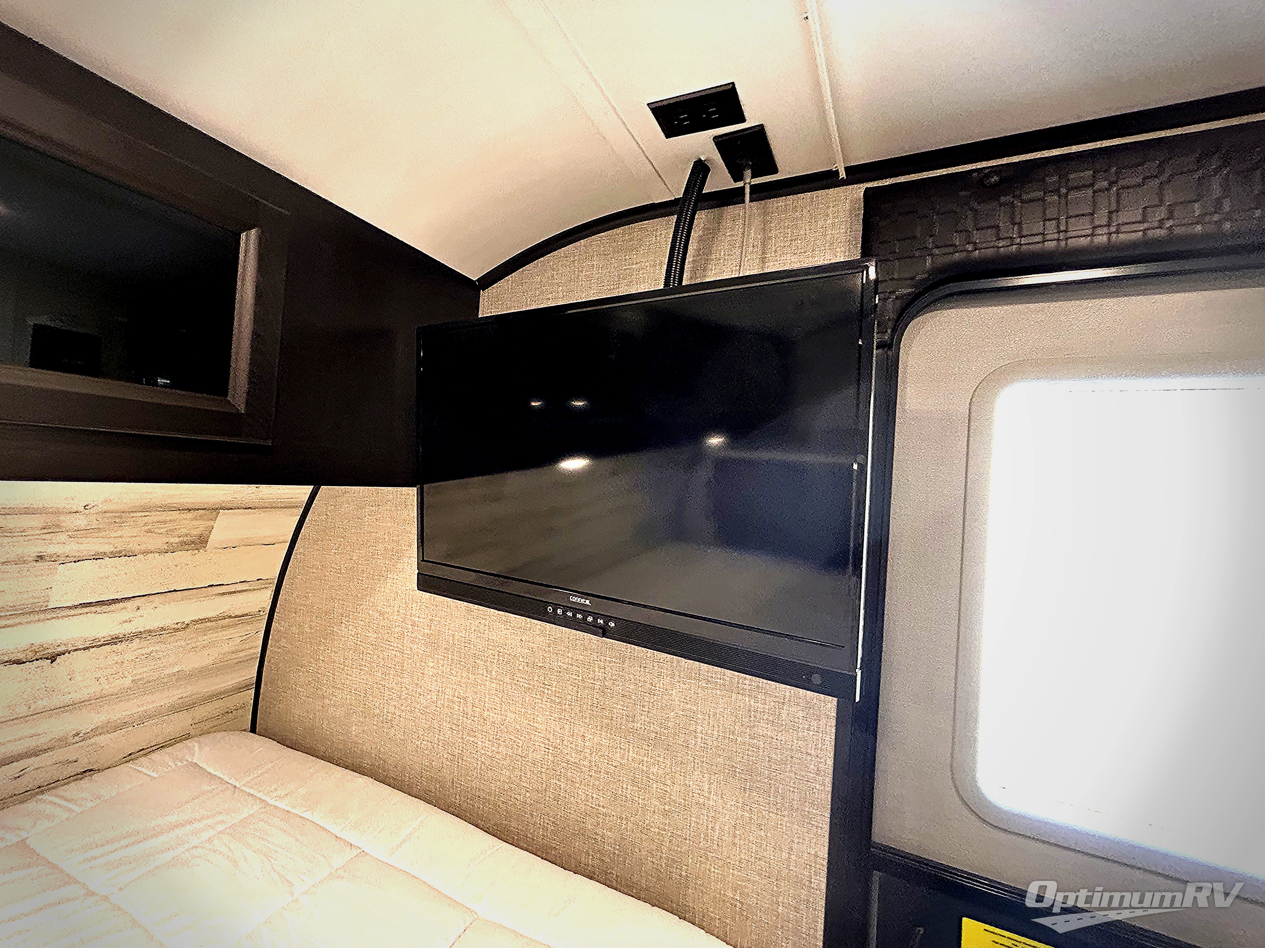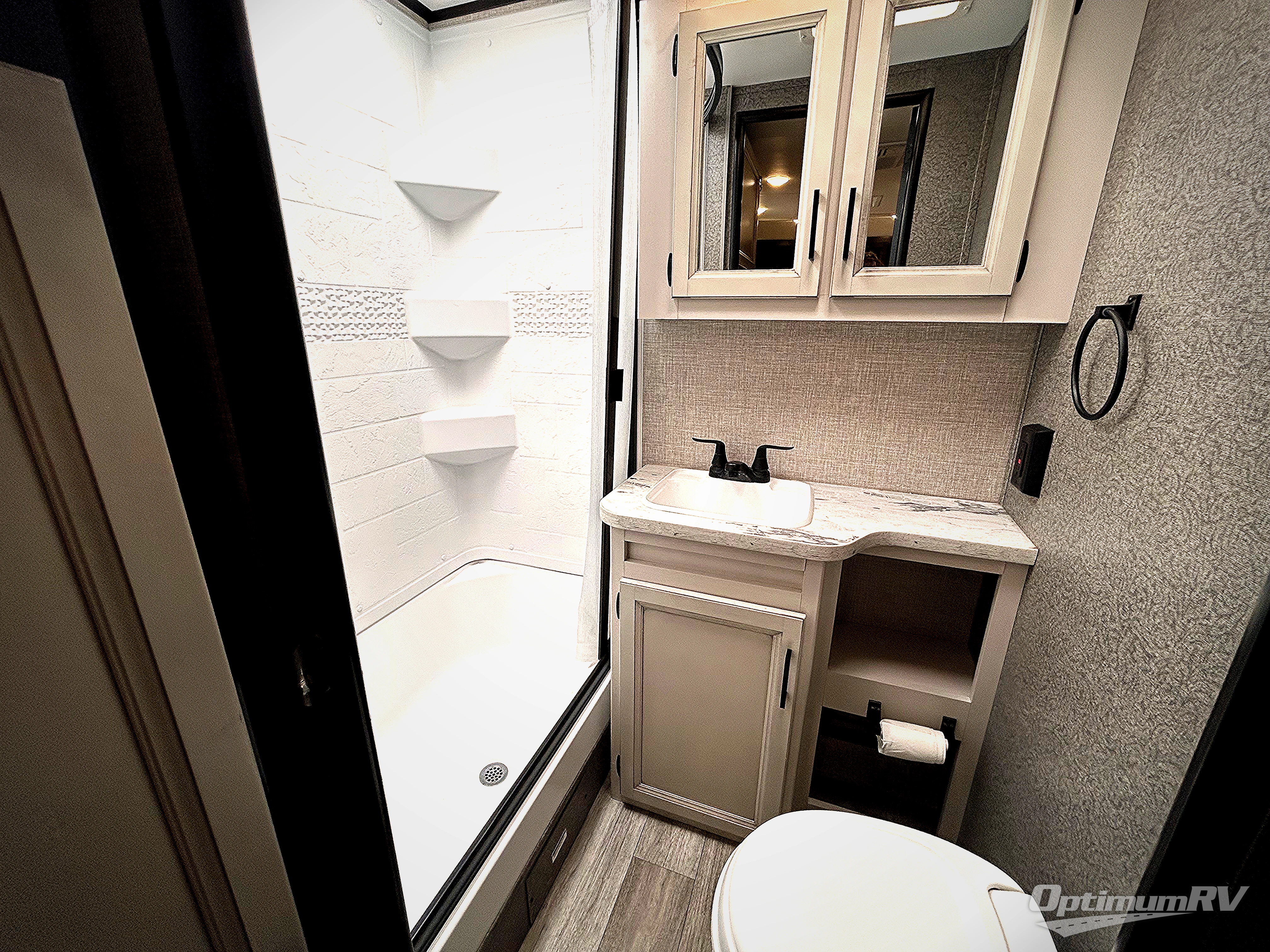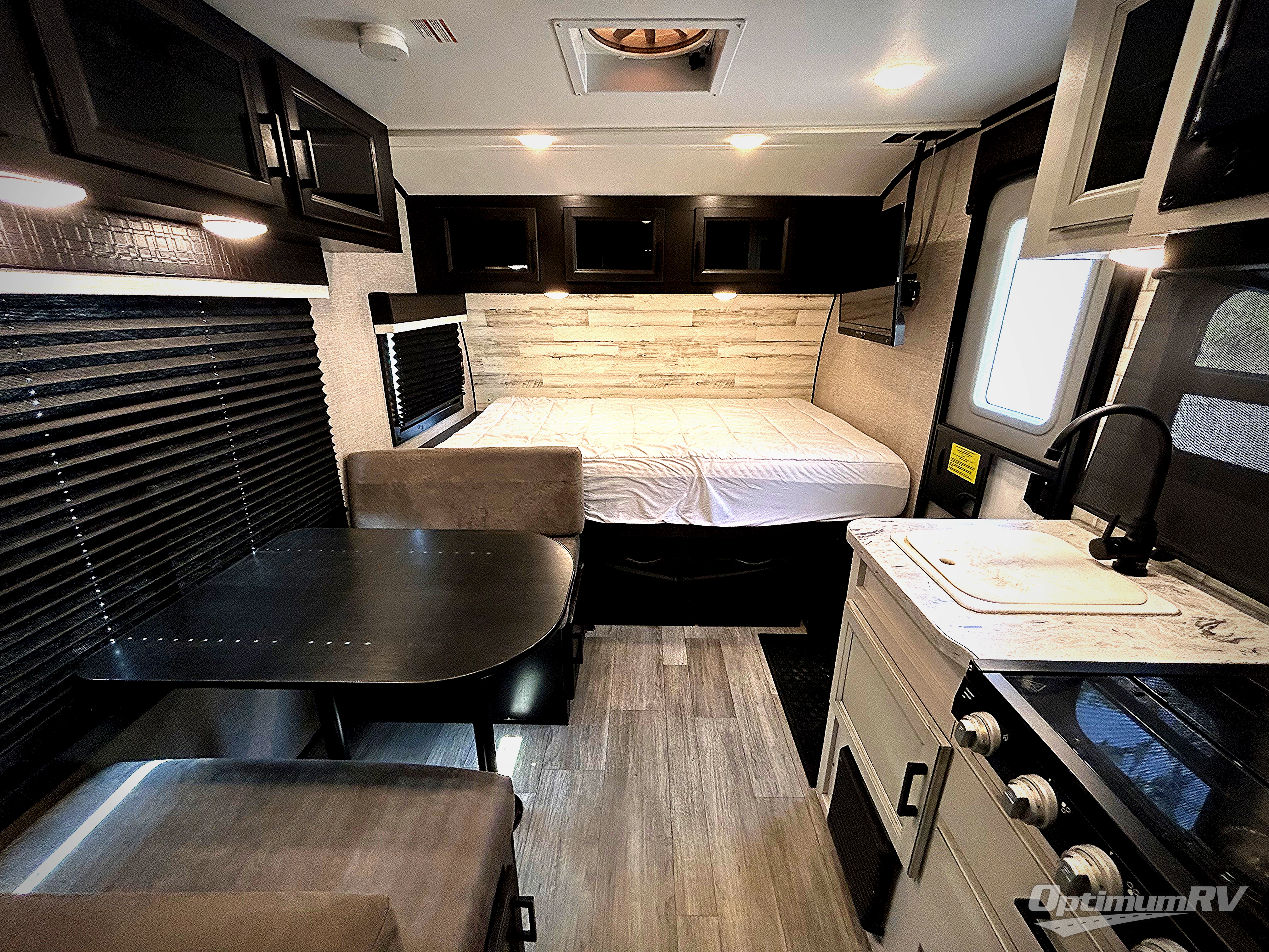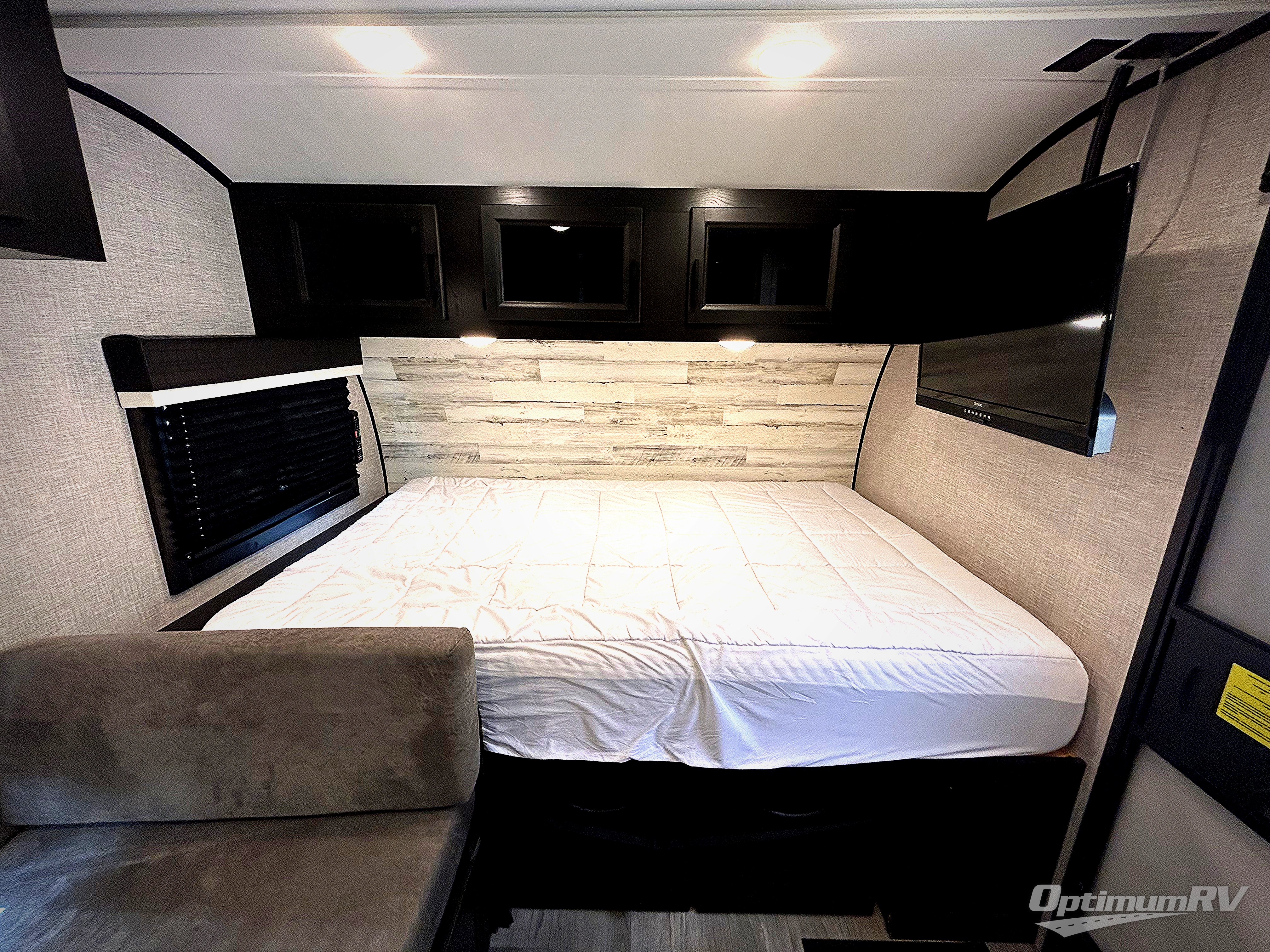 If you've been looking for a lightweight travel trailer with more sleeping space, your search is over with this model! There are bunk beds in the back near the full bath for convenience, a front queen bed, plus a booth dinette that will double as dining and sleeping space. This model also includes overhead compartments for your belongings, plus exterior storage for you fishing poles or tackle boxes.