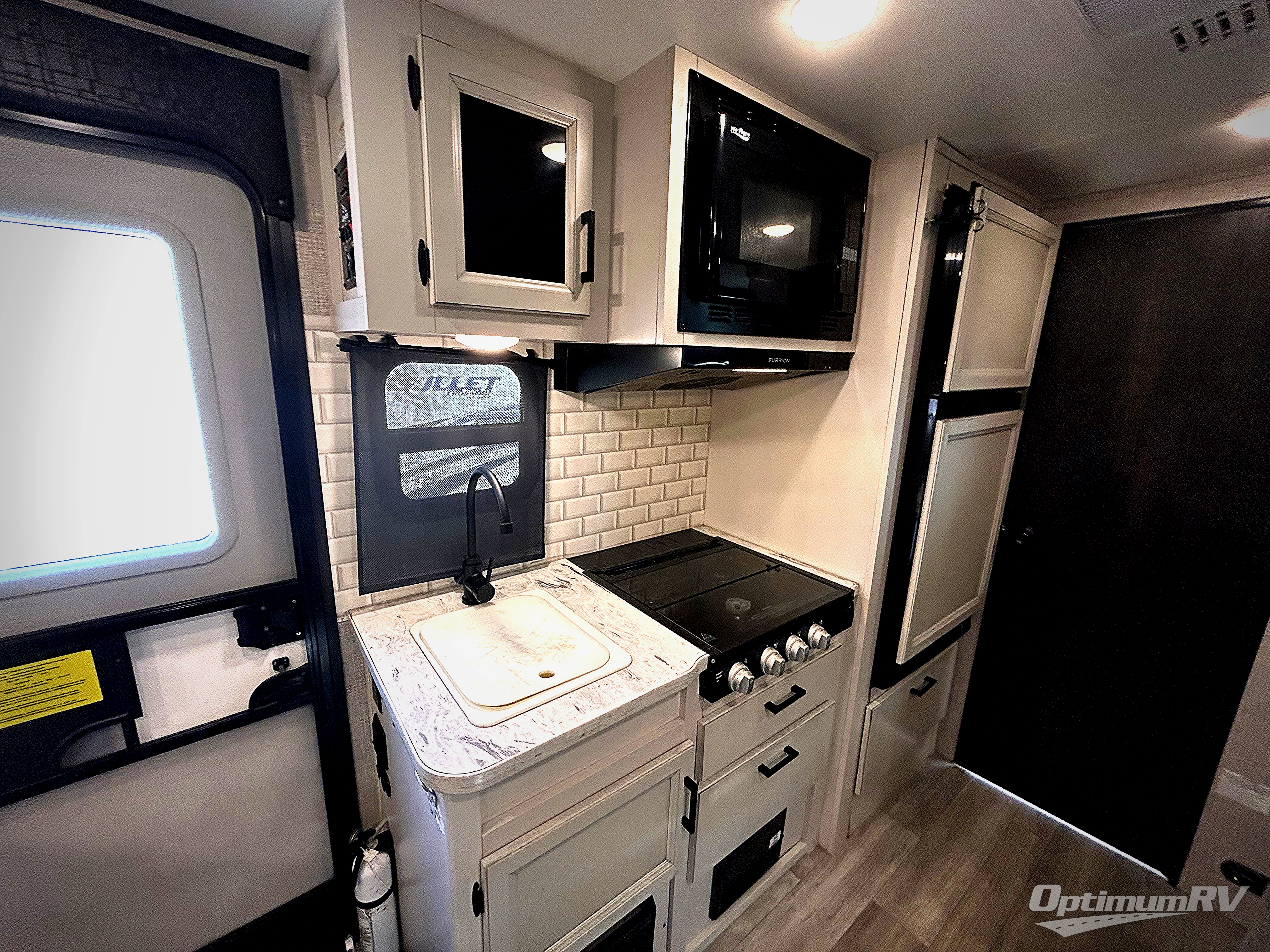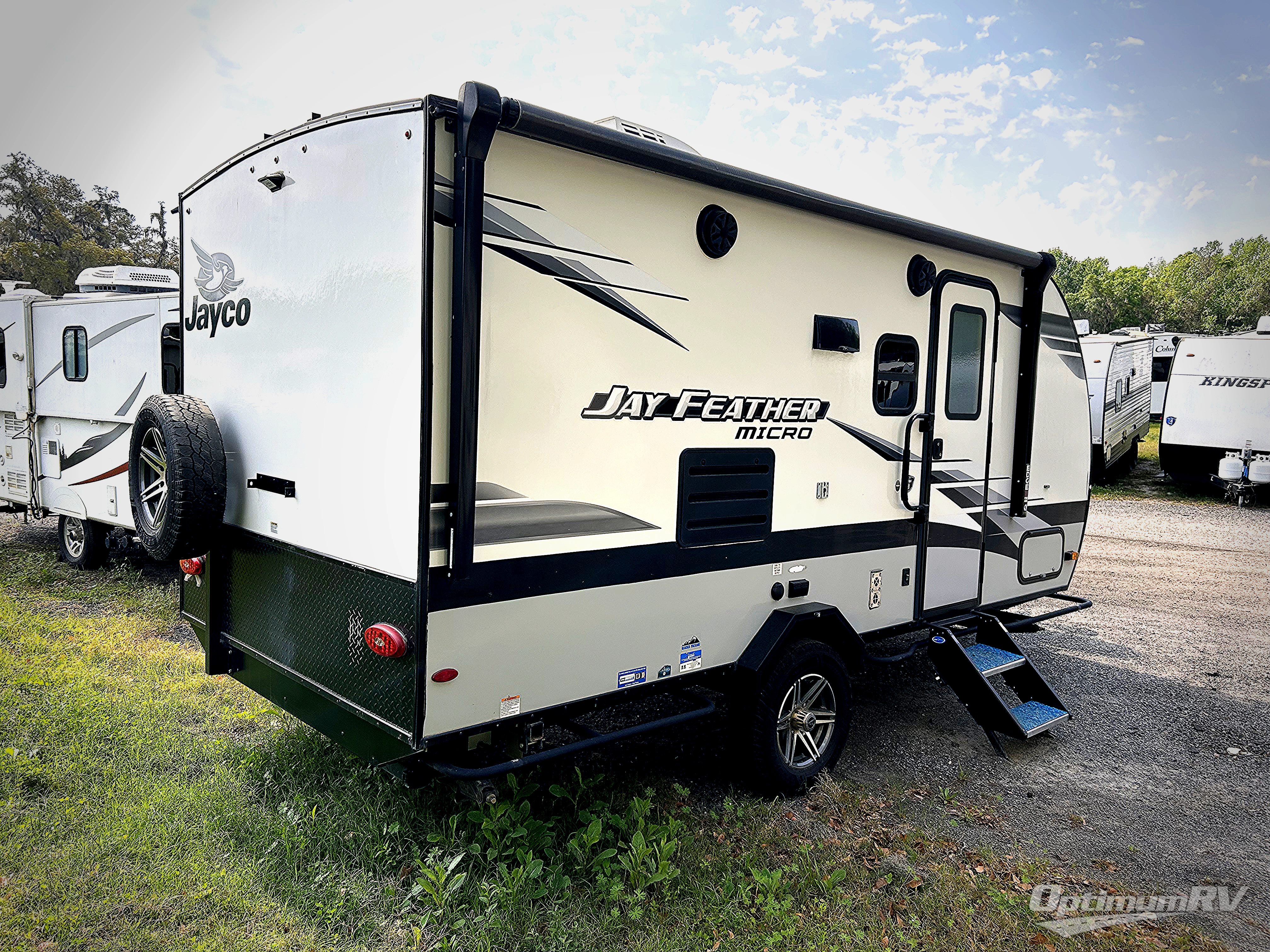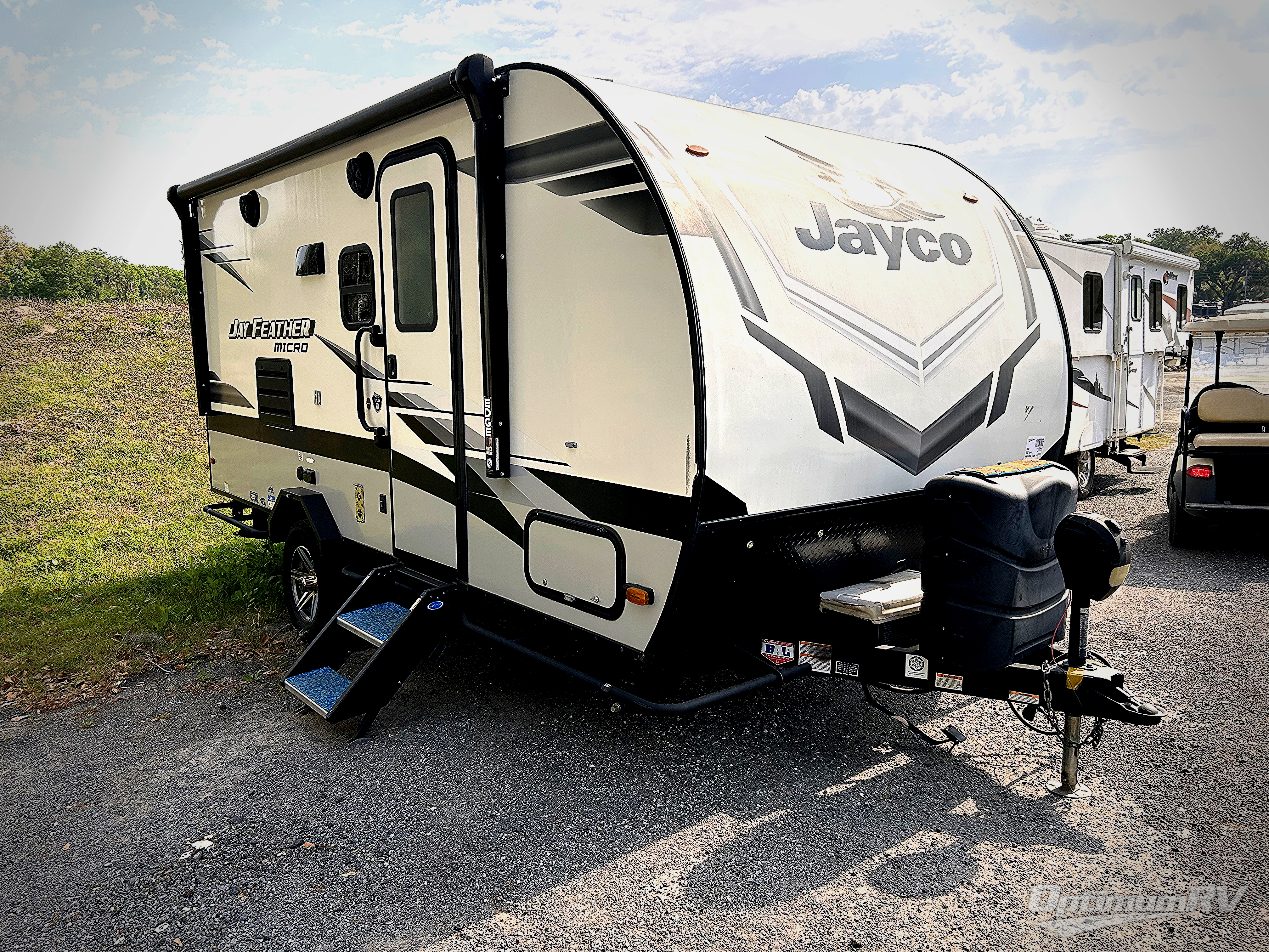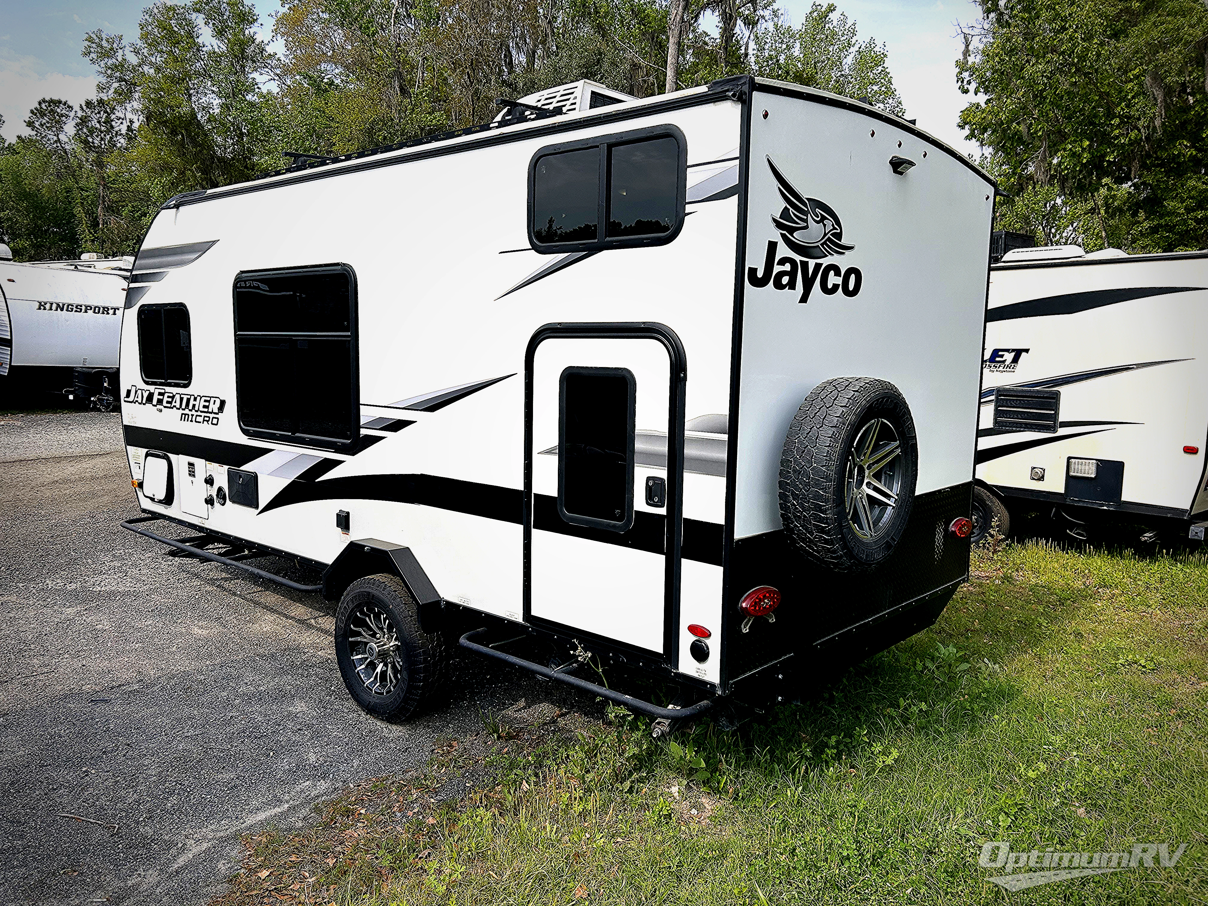 The Jay Feather Micro travel trailers by Jayco are for those looking for lightweight camping, while not sacrificing comfort and convenience. The modern retro graphics package is sure to be eye-catching, and the newly designed interiors will have you feeling right at home. Each model features an American-made frame with an integrated A-frame, Goodyear off-road tires, plus galvanized steel and impact-resistant wheel wells for added protection during transport. Some of the interior comforts you will enjoy are the residential vinyl flooring with cold crack resistance, screwed and glued cabinetry, and LED lighting. Adventure is waiting for you with a Jay Feather Micro travel trailer. Choose your favorite floorplan today!