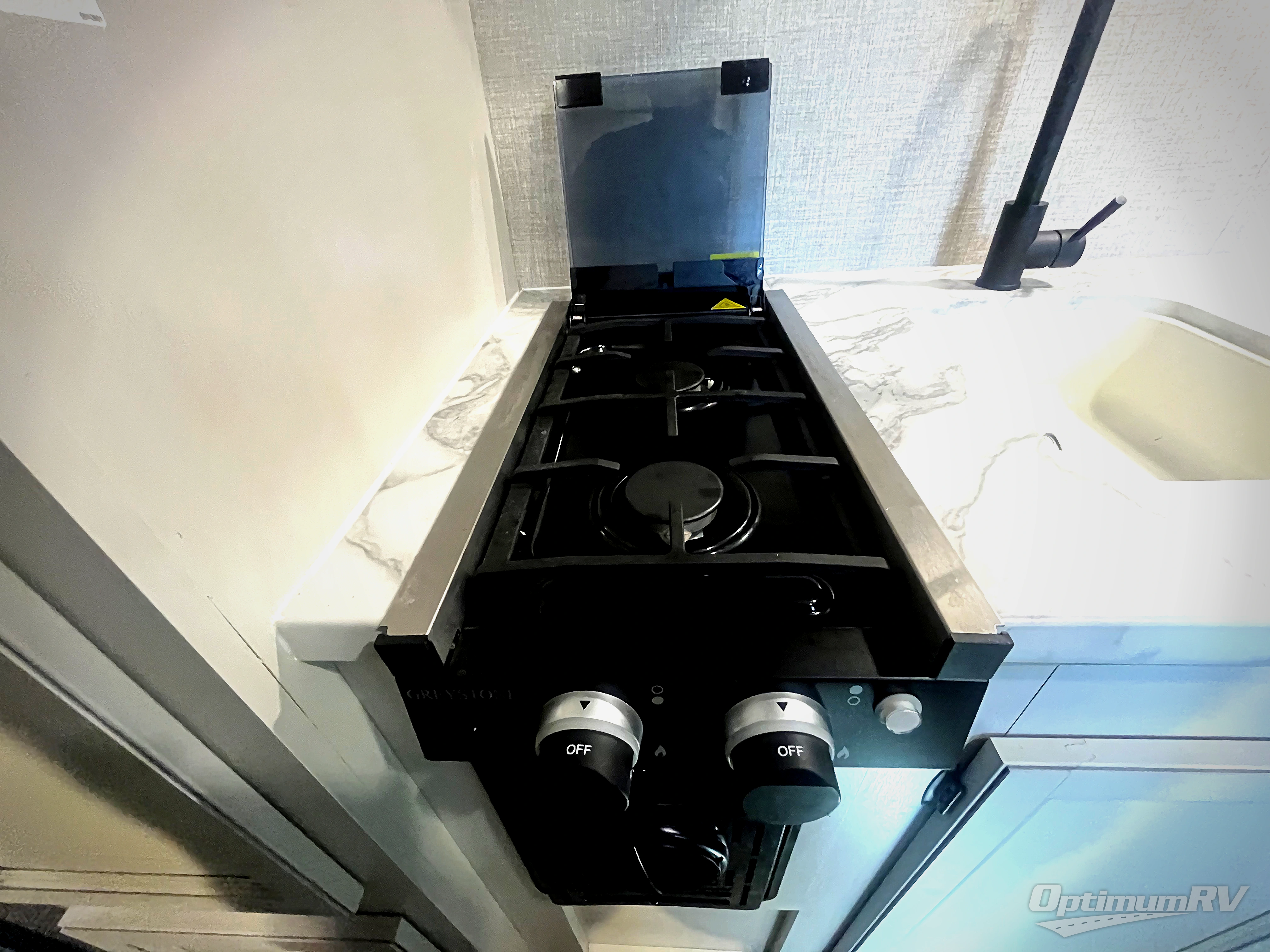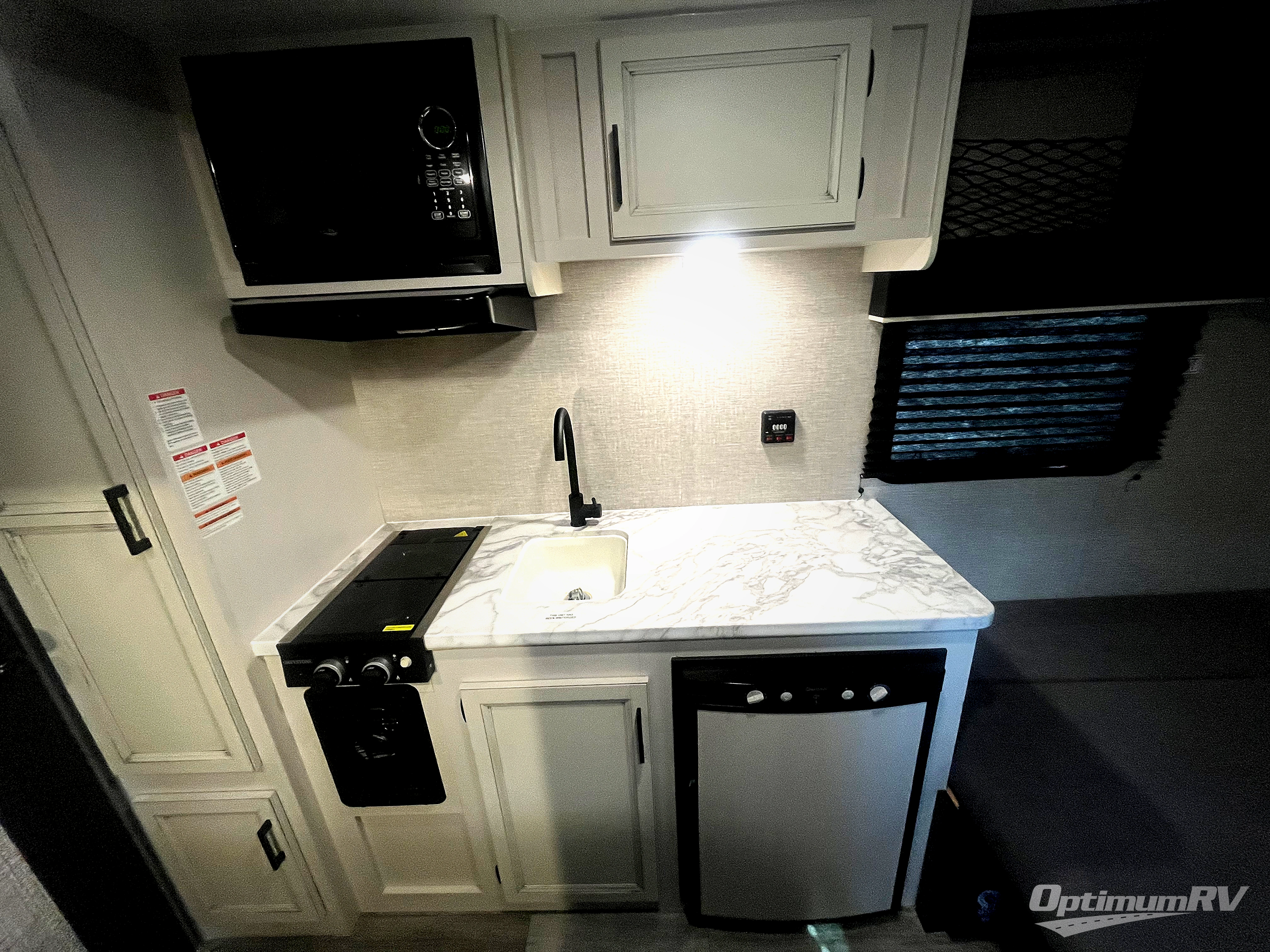 You can spend more time enjoying your surroundings and less time hassling with your RV when you take this Jay Flight SLX 7 travel trailer out to the campsite! There is a set of 29" x 75" bunk beds that will allow you to sleep two people without taking up extra floor space, and the booth dinette can transition from a table into a bed in order to accommodate one other person. The private bathroom includes a tub/shower and toilet so that you don't even need to use the campsite's facilities. A 3-cubic foot refrigerator will store all of your fresh items, and the two-burner range will help you turn those items into a full meal. As soon as you enter this trailer, there is a wardrobe to your left, so you can keep some belongings easily accessible.