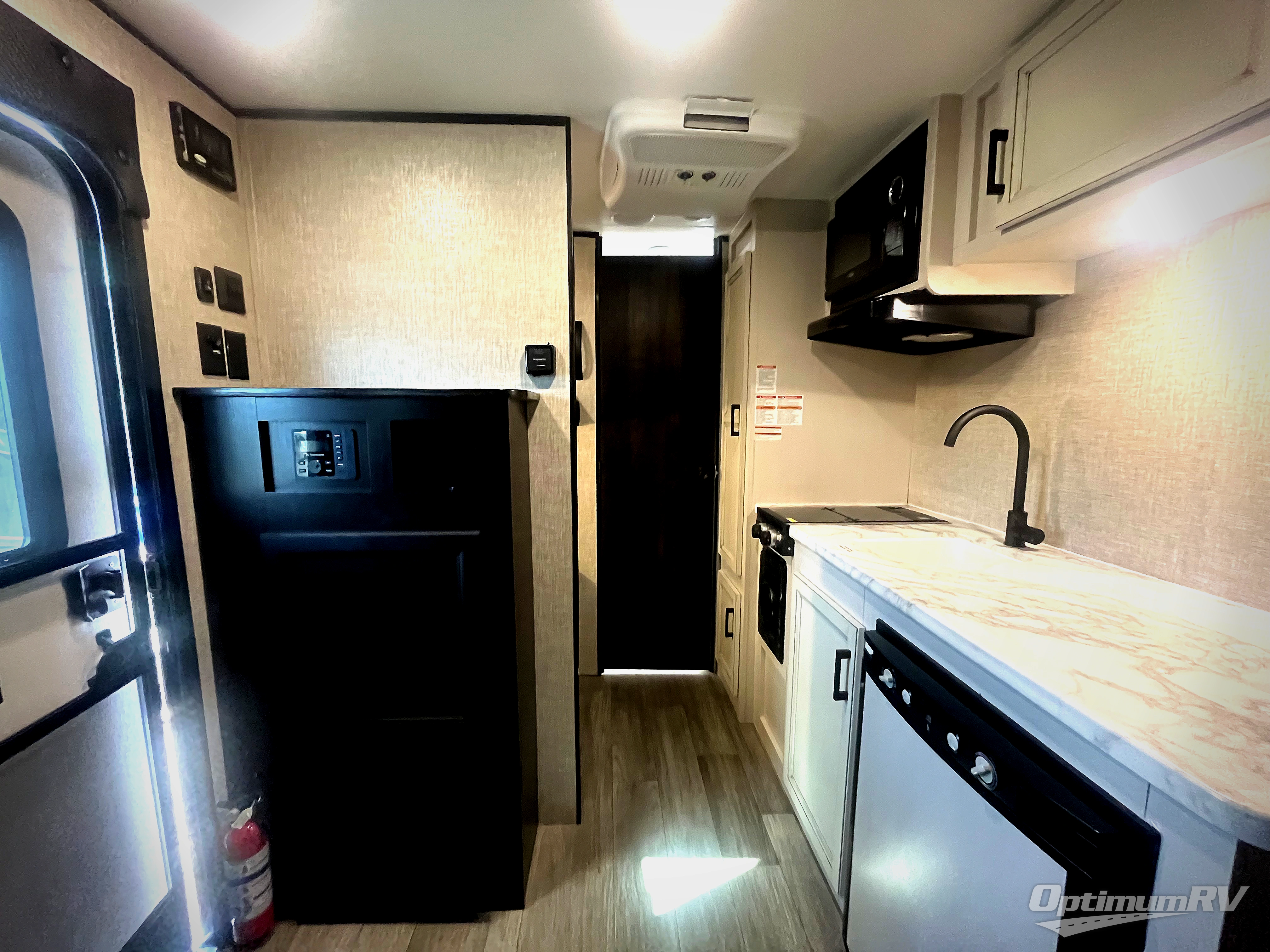 The Jayco Jay Flight SLX 7 travel trailer is quite easy to own because it weighs less than 3,500 pounds, and it comes with a single axle. Built on a fully integrated A-frame with galvanized-steel, impact-resistant wheel wells, the Jay Flight SLX 7 has quality at its very foundation. That quality continues on to the electric self-adjusting brakes, easy-lube hubs, Magnum Truss roof system, friction-hinge entry door with window, and LP quick connect. Some of what the mandatory Customer Value Package includes are two stabilizer jacks with sand pads, American-made Goodyear Endurance tires, Keyed-Alike entry and baggage doors, and JaySMART LED lighting. Buying your trailer in the East versus the West will determine which optional package is available to you. The East offers an optional STX Edition, and the West offers an optional Baja Package. Both packages come with a 30LB LP bottle, a large fresh water tank, Goodyear off-road tires, an enclosed underbelly, a double entry step, four stabilizer jacks, and a deluxe graphics package. Specific to the STX Edition, you will find a wide-stance axle, aluminum rims, a power tongue jack, and powder-coated wheel fenders while the Baja Package offers you a flipped axle and black sidewall skirt.