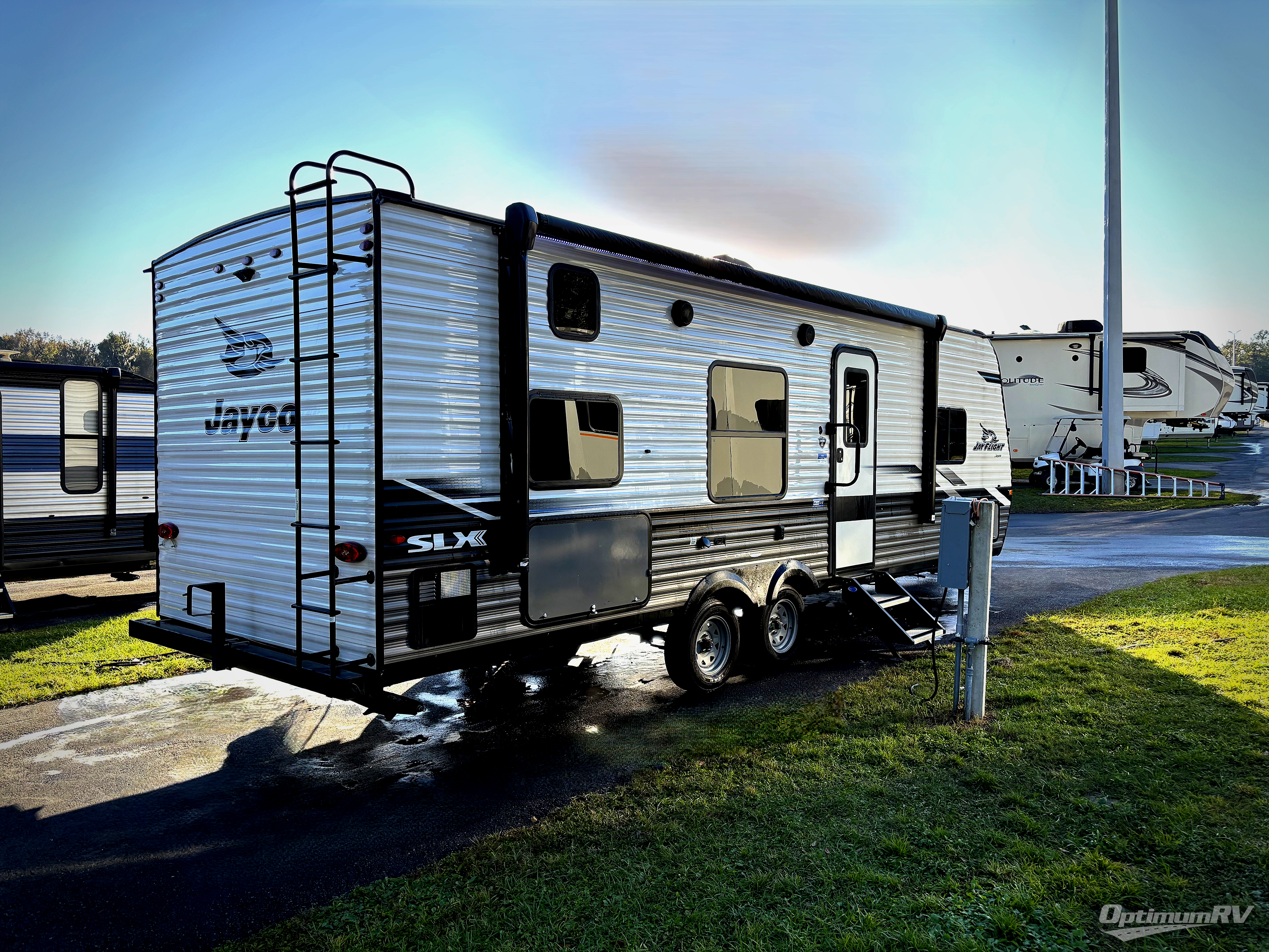 With any Jay Flight SLX 8 travel trailer by Jayco, you will have a durable foundation with l-Class cambered structural steel l-beams, a fully-integrated A-frame, seamless roof material and a Magnum Truss Roof System with plywood decking for a 50% stronger roof than any other in the industry. Also included are Goodyear Endurance tires made in the USA, a front diamond plate to protect against road debris. Inside, you will love the fresh interior design, the solid hardwood cabinet doors, the 81-inch tall ceiling, the energy-saving LED lighting, and the storage. Whether you are looking for an RV for a small or large group, you will find a Jay Flight SLX 8 to fit your camping lifestyle!