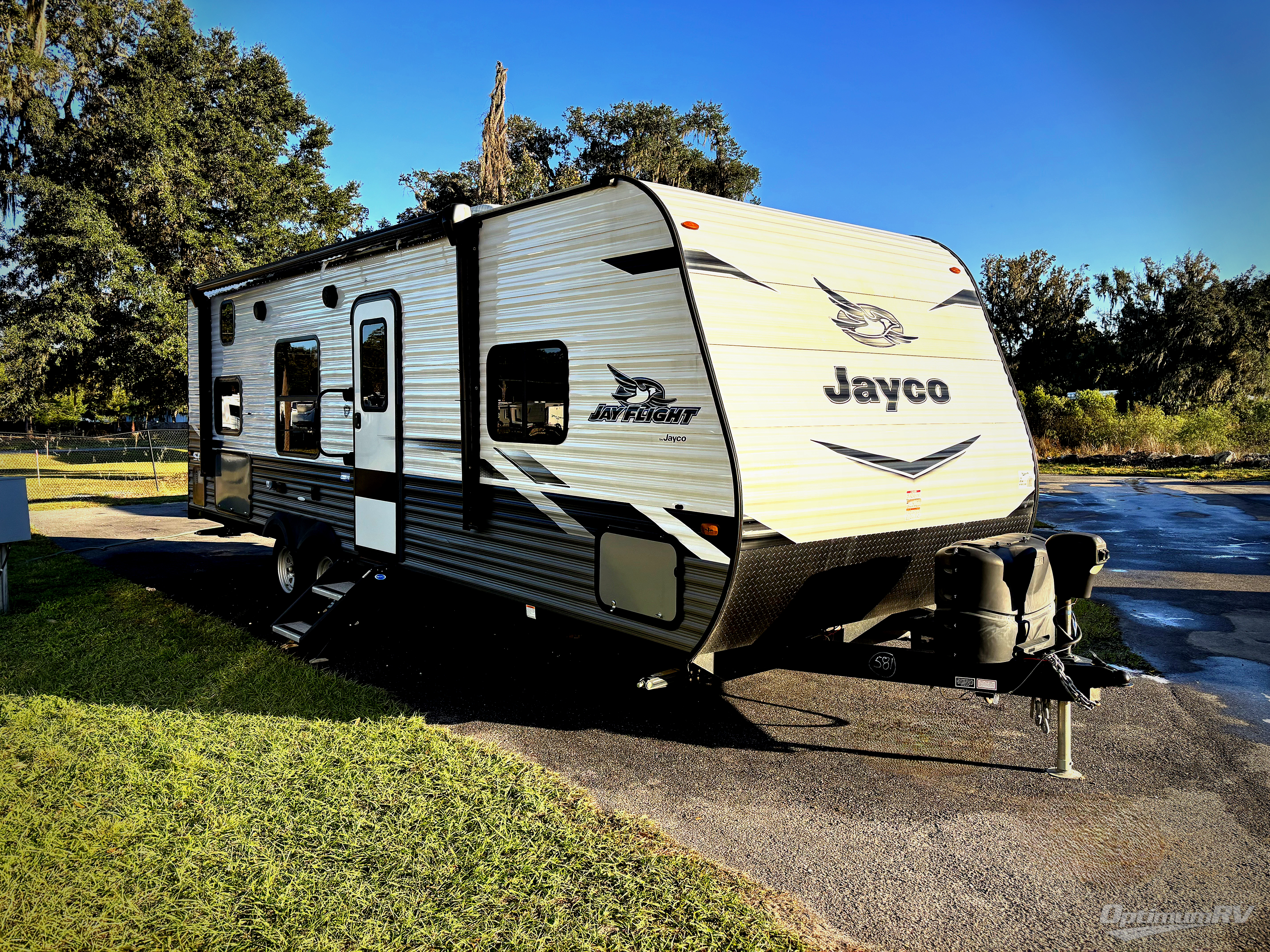 With any Jay Flight SLX 8 travel trailer by Jayco, you will have a durable foundation with l-Class cambered structural steel l-beams, a fully-integrated A-frame, seamless roof material and a Magnum Truss Roof System with plywood decking for a 50% stronger roof than any other in the industry. Also included are Goodyear Endurance tires made in the USA, a front diamond plate to protect against road debris. Inside, you will love the fresh interior design, the solid hardwood cabinet doors, the 81-inch tall ceiling, the energy-saving LED lighting, and the storage. Whether you are looking for an RV for a small or large group, you will find a Jay Flight SLX 8 to fit your camping lifestyle!