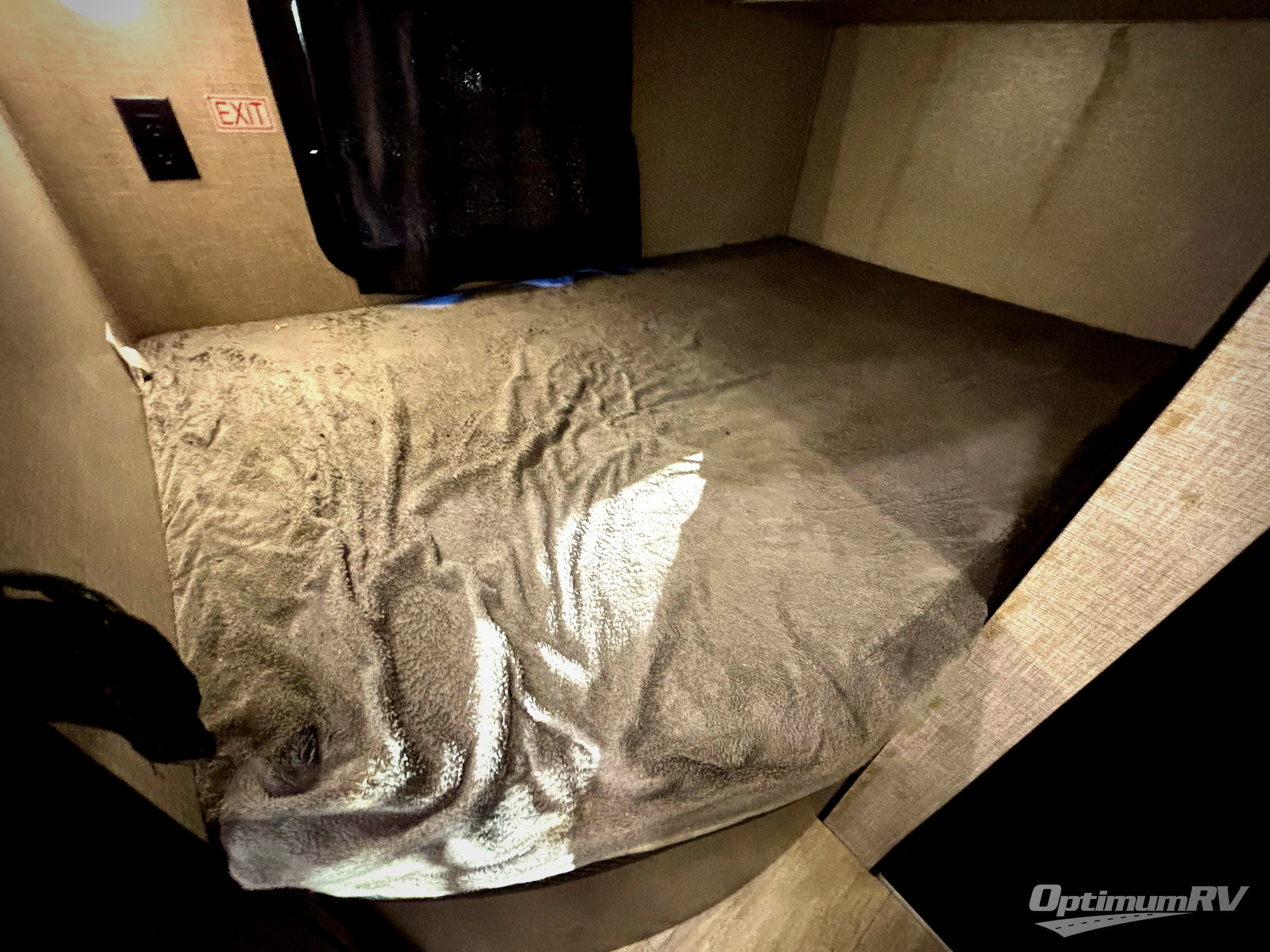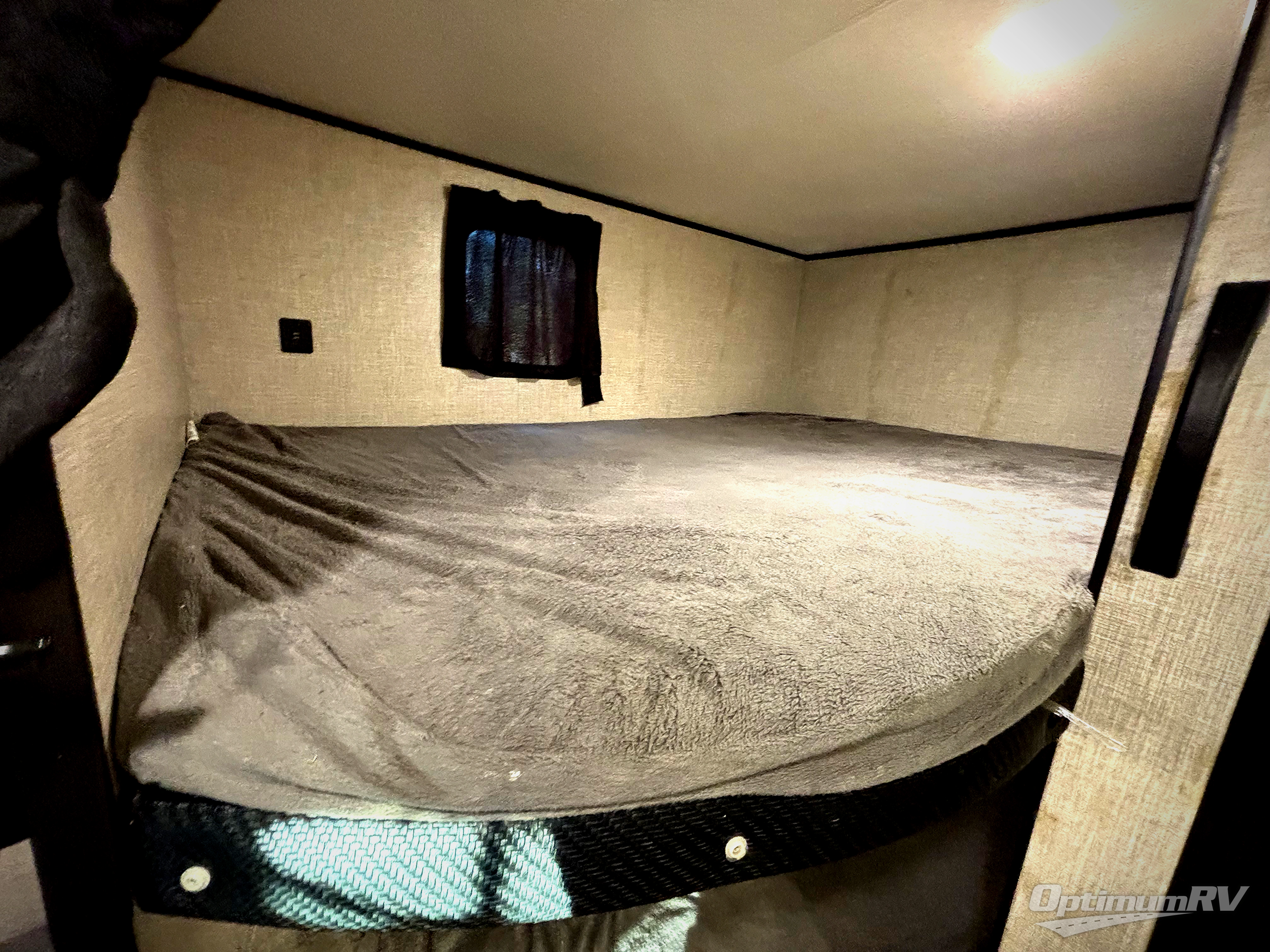 This easy to setup trailer offers a semi-private bedroom up front with a queen bed, semi-private double size bunks in the rear thanks to the curtains, and a private toilet and tub/shower room. The bathroom sink is just outside the door allowing two people to get ready for bed at once. The galley kitchen offers full amenities, and two can dine at the booth dinette and some can relax on the jack-knife sofa. Both furnishings offer extra sleeping space. And you might like to add the Chil N' Stor option which adds a fridge and counter space along the exterior to serve meals outside and store extra beverages.
