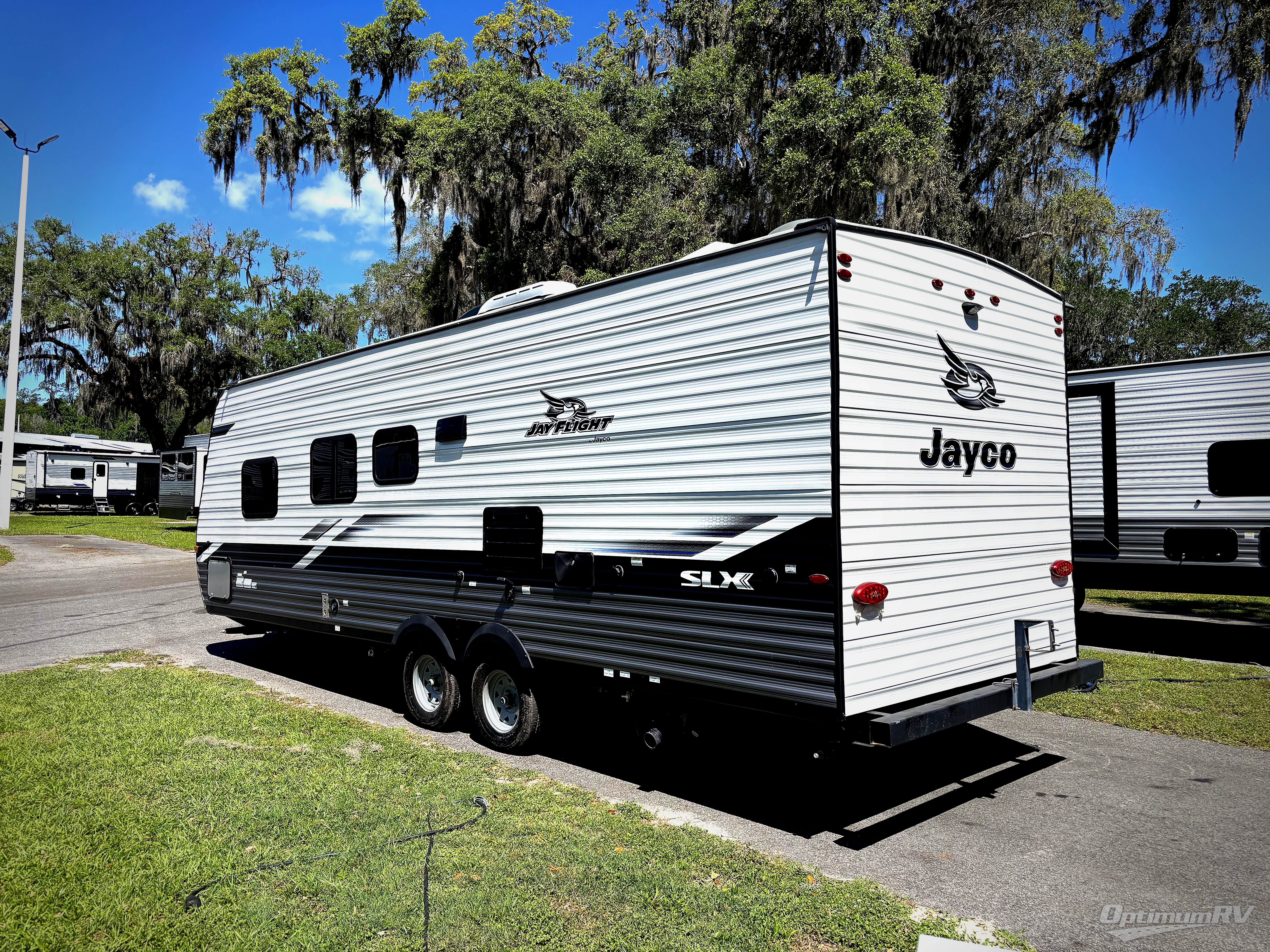 With any Jay Flight SLX 8 travel trailer by Jayco, you will have a durable foundation with l-Class cambered structural steel l-beams, a fully-integrated A-frame, seamless roof material and a Magnum Truss Roof System with plywood decking for a 50% stronger roof than any other in the industry. Also included are Goodyear Endurance tires made in the USA, a front diamond plate to protect against road debris. Inside, you will love the fresh interior design, the solid hardwood cabinet doors, the 81-inch tall ceiling, the energy-saving LED lighting, and the storage. Whether you are looking for an RV for a small or large group, you will find a Jay Flight SLX 8 to fit your camping lifestyle!