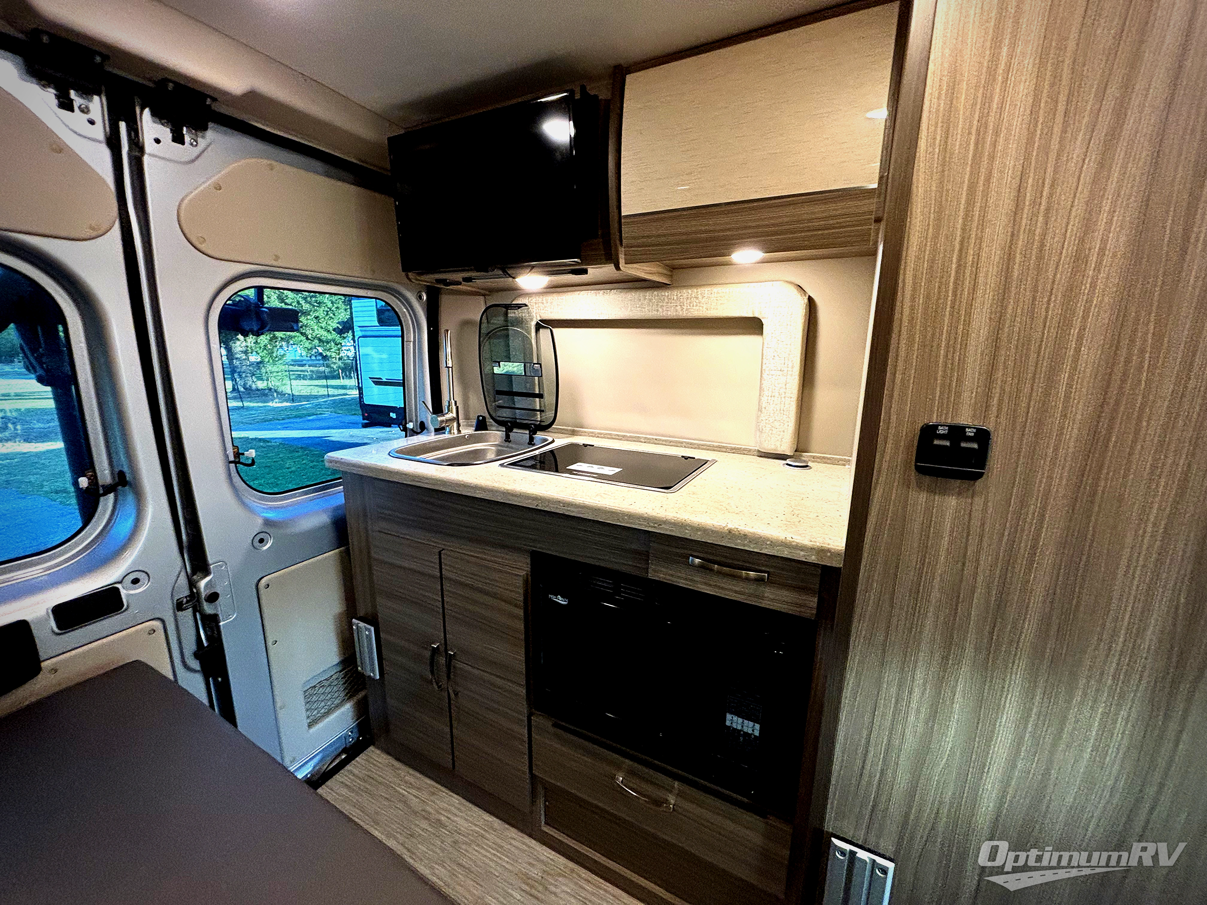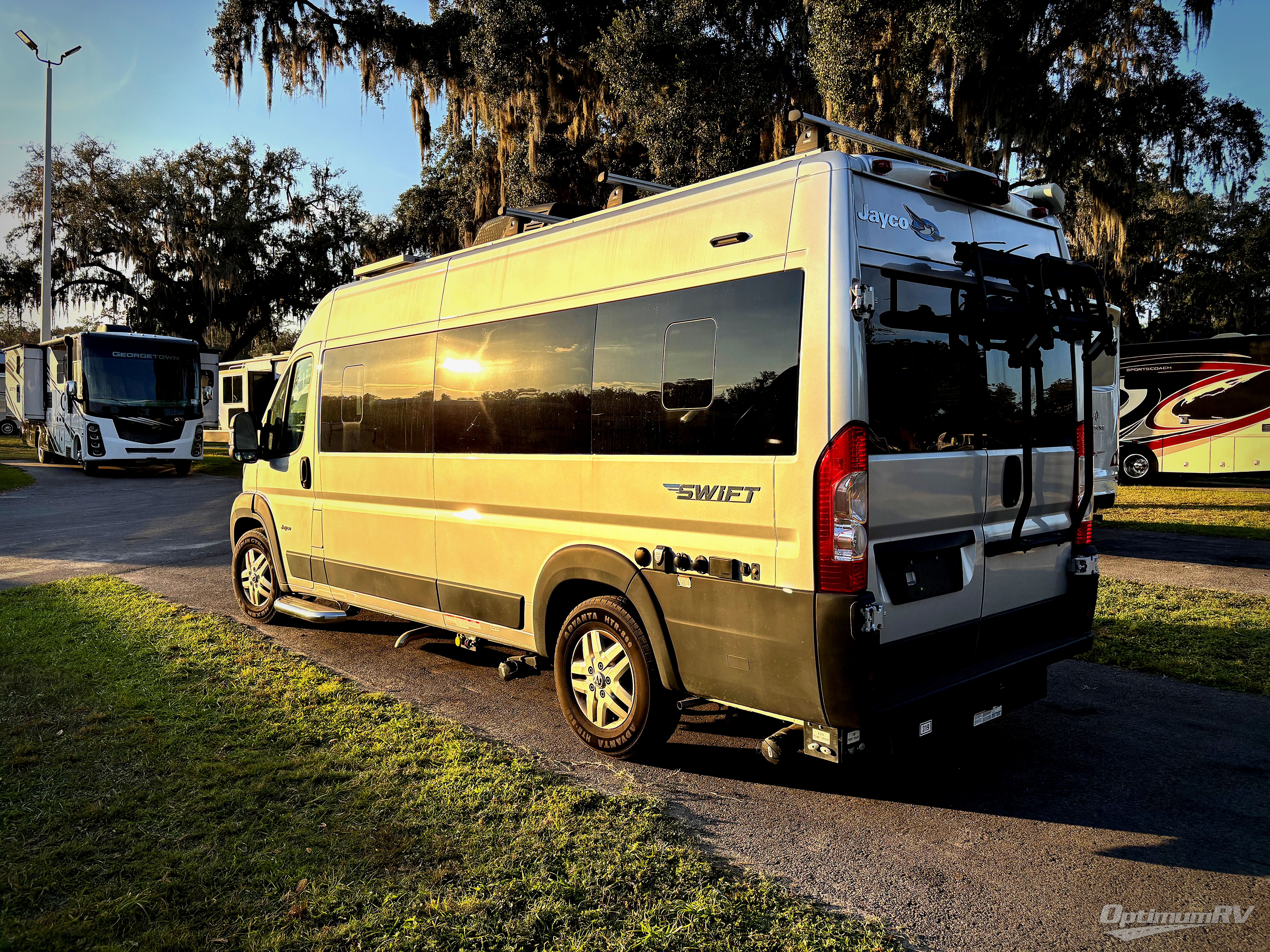 The Swift Class B gas motorhome by Jayco starts with a RAM ProMaster 3500 window van chassis with a 3.6L V6 VVT engine to power your adventures near and far. Off-grid camping is made hassle-free with the 190-watt roof-mounted GoPower solar panel, plus there is a Thule bike rack and three Thule roof racks for all your gear. Each model includes the JRide system with Hellwig helper springs and a heavy-duty rear stabilizer bar for smooth handling, and the Thule armless patio awning with LED lights will create an outdoor living space you are sure to love. Head inside to find a solid surface kitchen countertop with a pull-out extension, four sliding vented windows, a soft-touch vinyl ceiling, plus many more comforts.