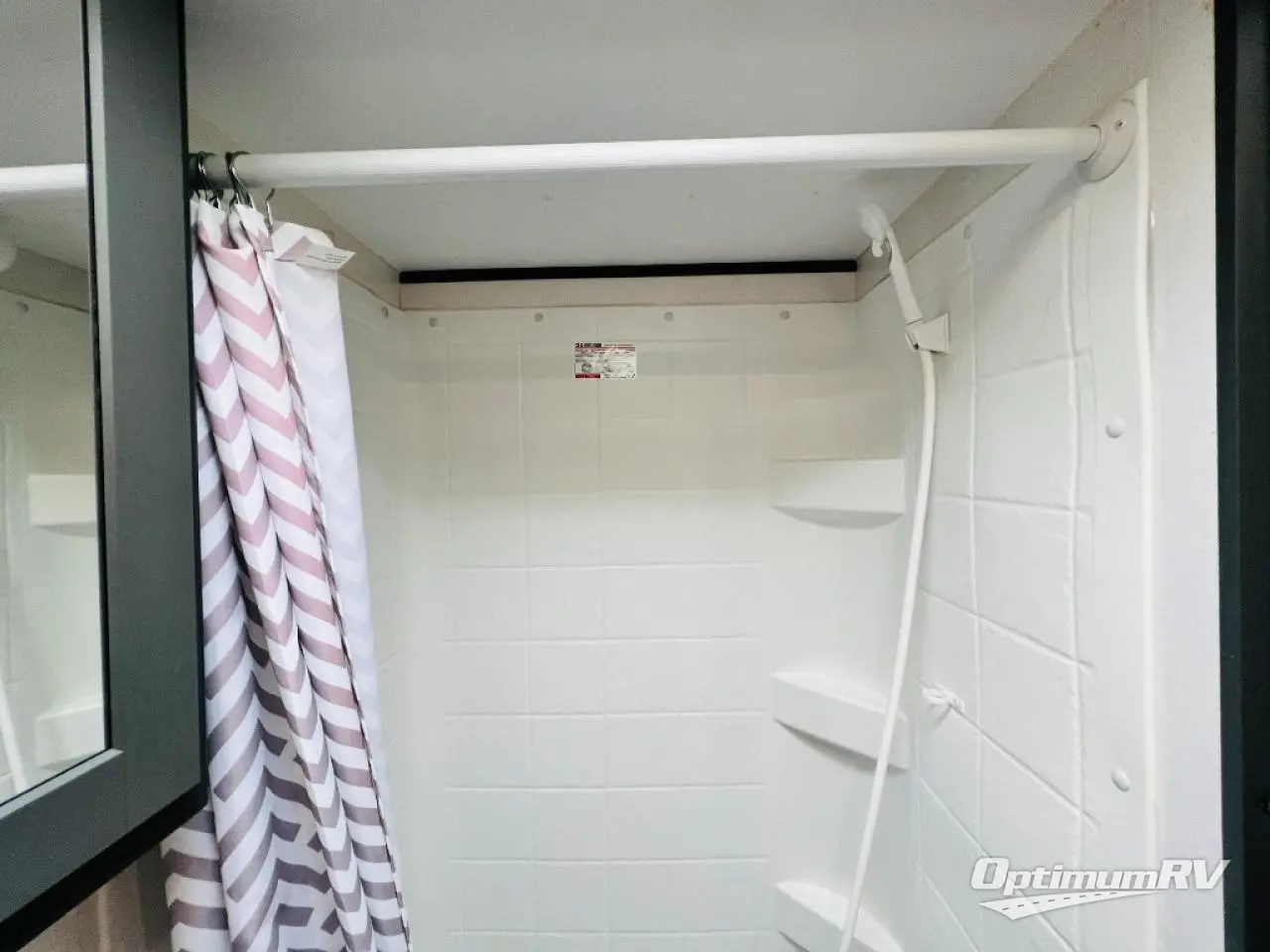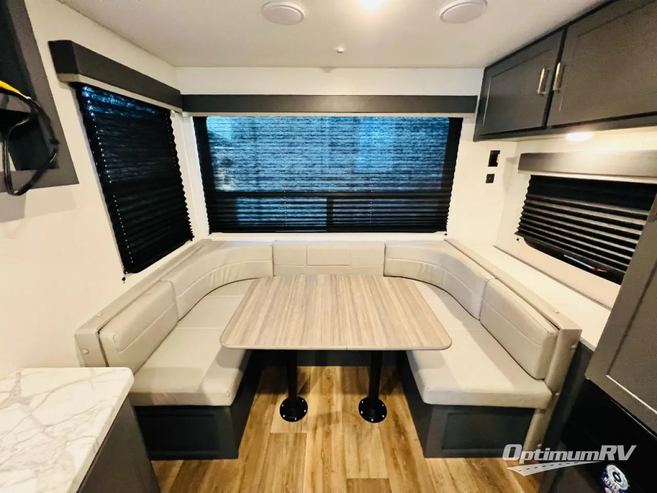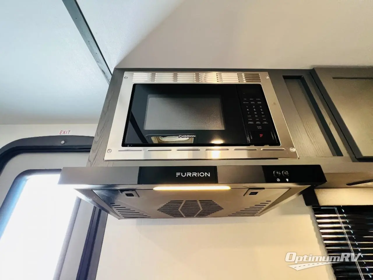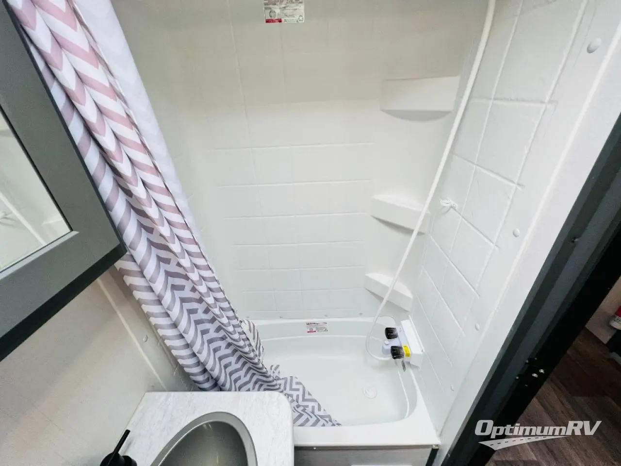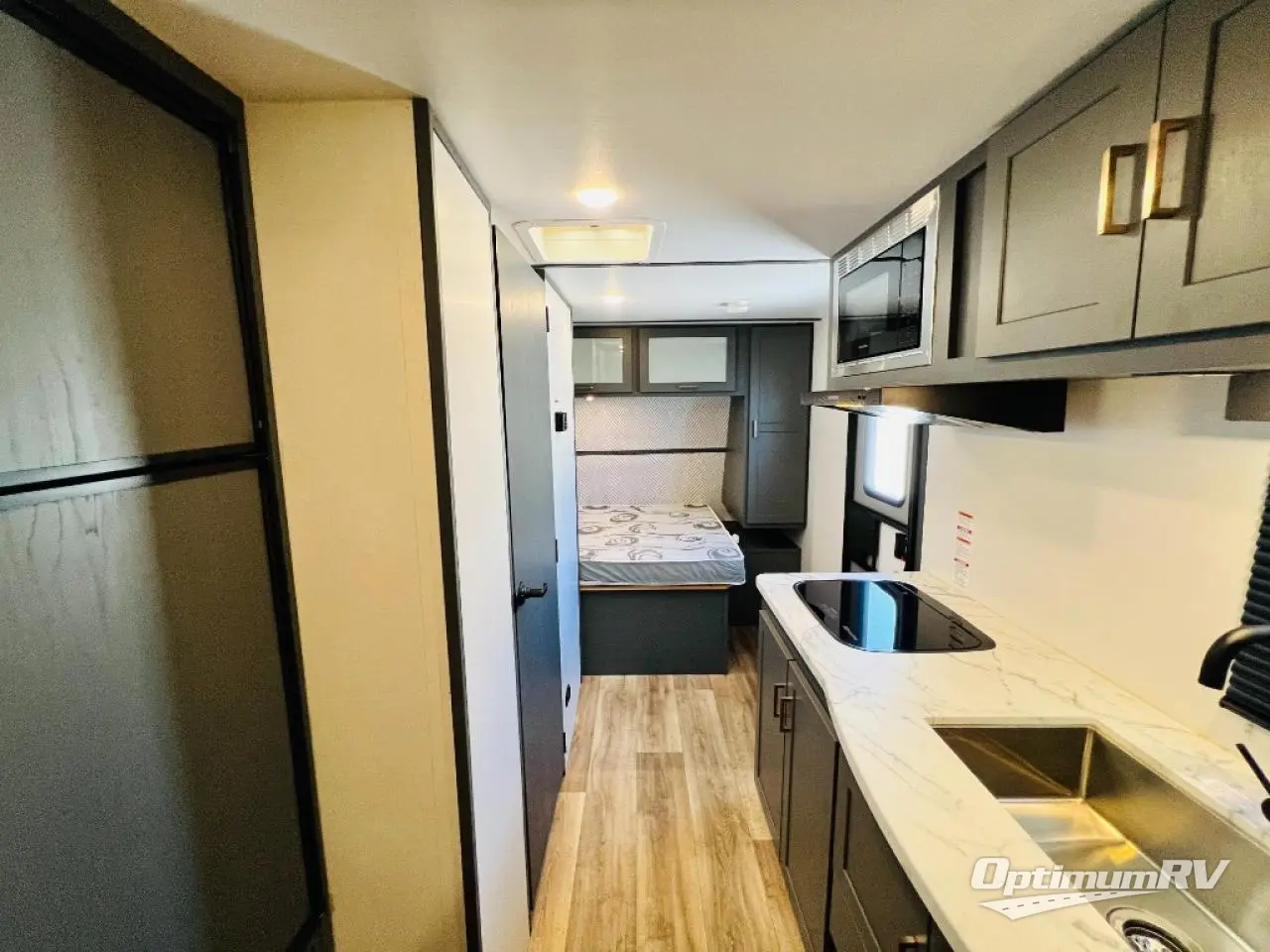 Simple and lightweight; this travel trailer is the unit you've been searching for! Once you arrive at your destination, unload the pass-through storage, then head inside to start lunch in the full kitchen. Here, you'll find a single basin stainless steel sink with a cover for more prep space, a Furrion microwave, plus a two burner gas range to cook meals on. The rear U-shaped dinette can serve as dining and sleeping space for your guests, while you take the front corner queen bed. Don't let this travel trailer slip away!