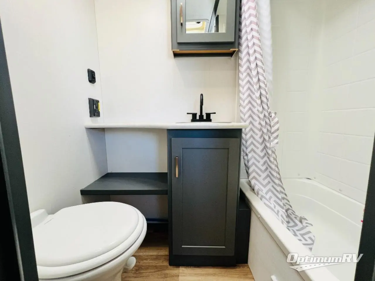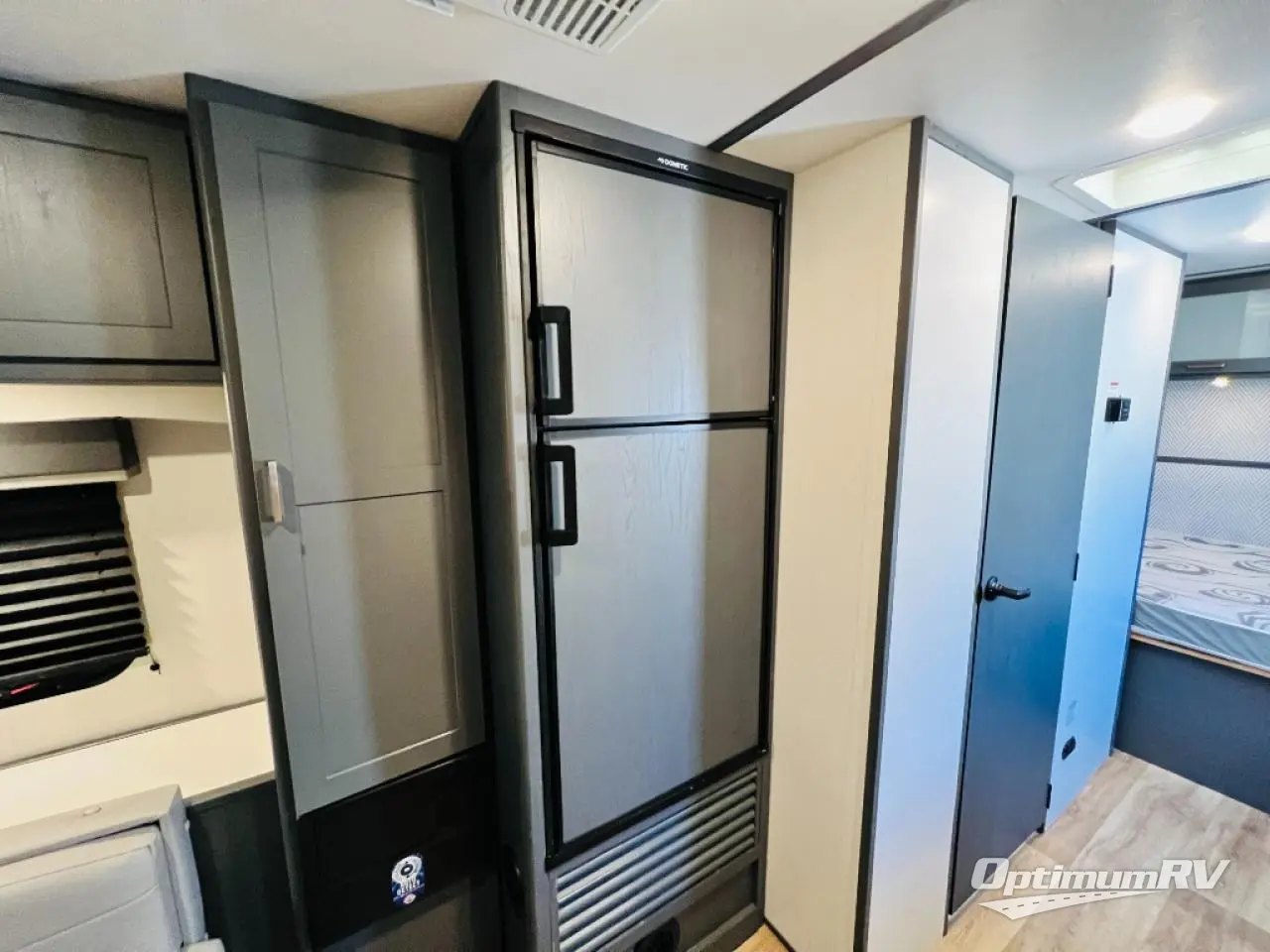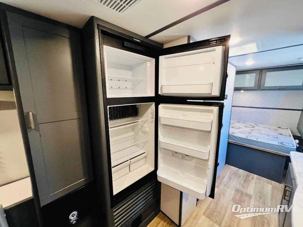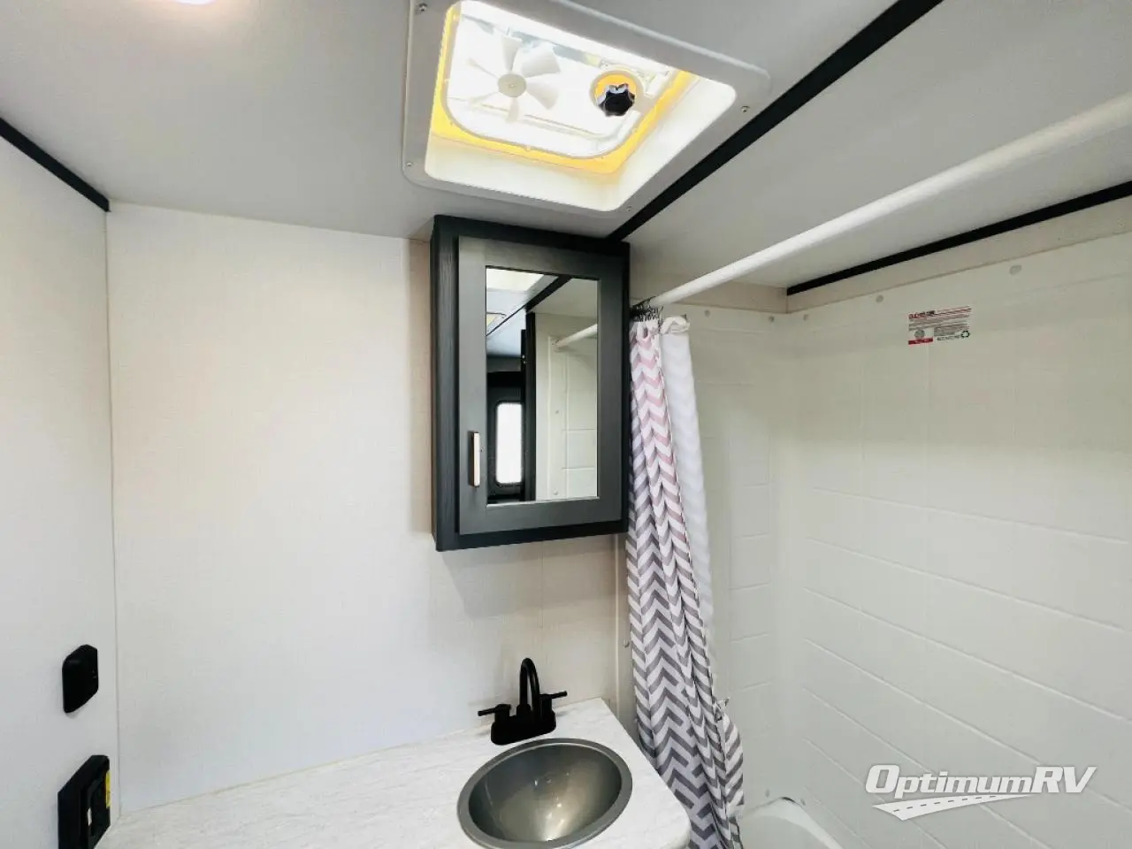 Simple and lightweight; this travel trailer is the unit you've been searching for! Once you arrive at your destination, unload the pass-through storage, then head inside to start lunch in the full kitchen. Here, you'll find a single basin stainless steel sink with a cover for more prep space, a Furrion microwave, plus a two burner gas range to cook meals on. The rear U-shaped dinette can serve as dining and sleeping space for your guests, while you take the front corner queen bed. Don't let this travel trailer slip away!