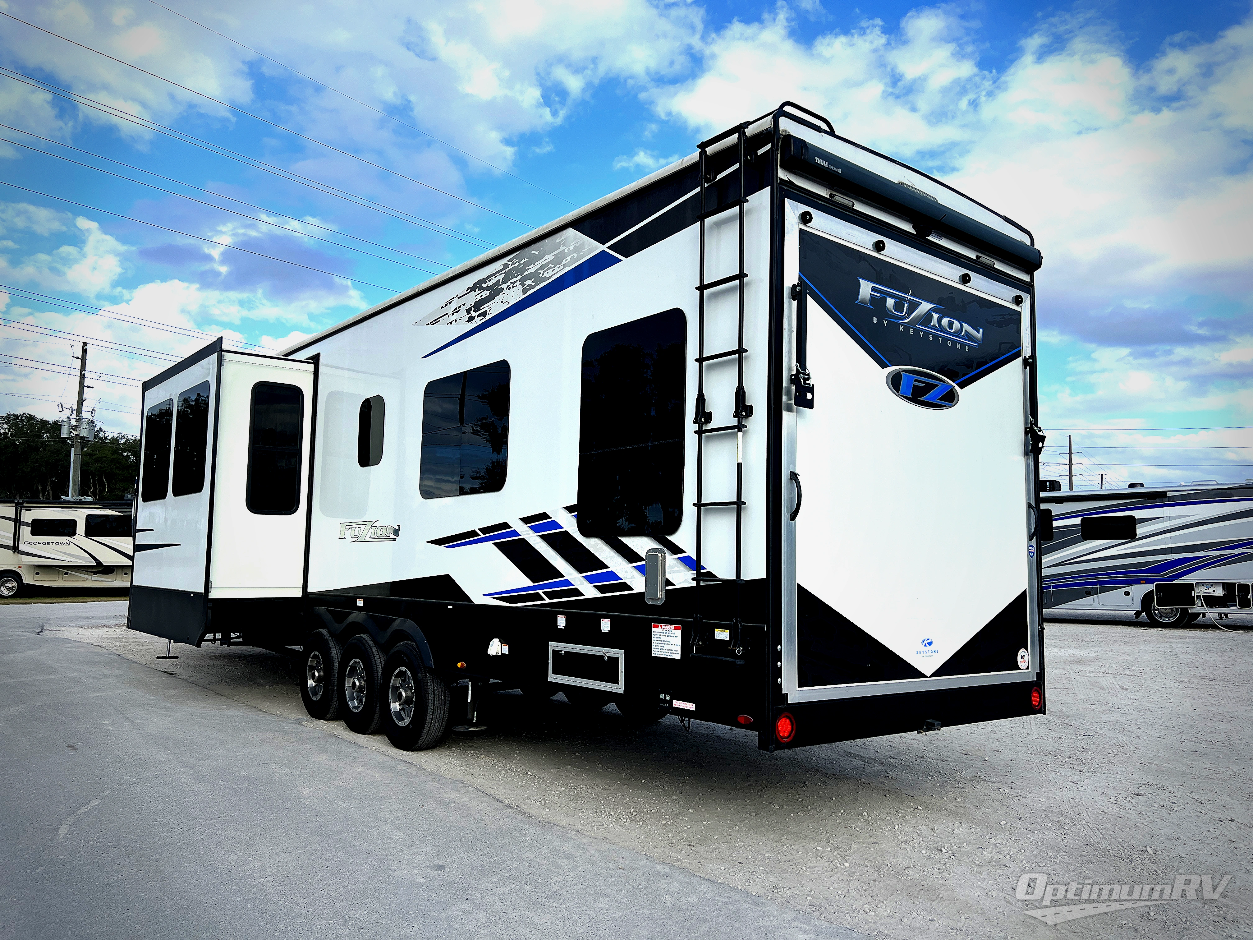 Get your adrenaline pumping with any one of these Keystone RV Fuzion fifth wheel toy haulers! The frame welded, Adjust-A-Trac tie-downs have 38 points to fully secure your toys as you travel, and the extended garage lengths have outside storage so you can haul bigger toys. A fully enclosed fuel pump station is integrated with the iN-Command smart RV control system with Global Connect. The equalizer six-point hydraulic leveling system makes setting up a breeze. And the exclusive Omni-Chill technology offers high-efficiency air conditioning and maximum cooling. The interior provides fiberglass backed linoleum flooring, extra-tall slide height, solid wood cabinet and drawer frames, and extra tall ceilings with crown molding to mention a few attention to details features. Choose a Fuzion because you want to be seen with the best RV garage for power sports enthusiasts and enjoy comfort and amenities when you are away!