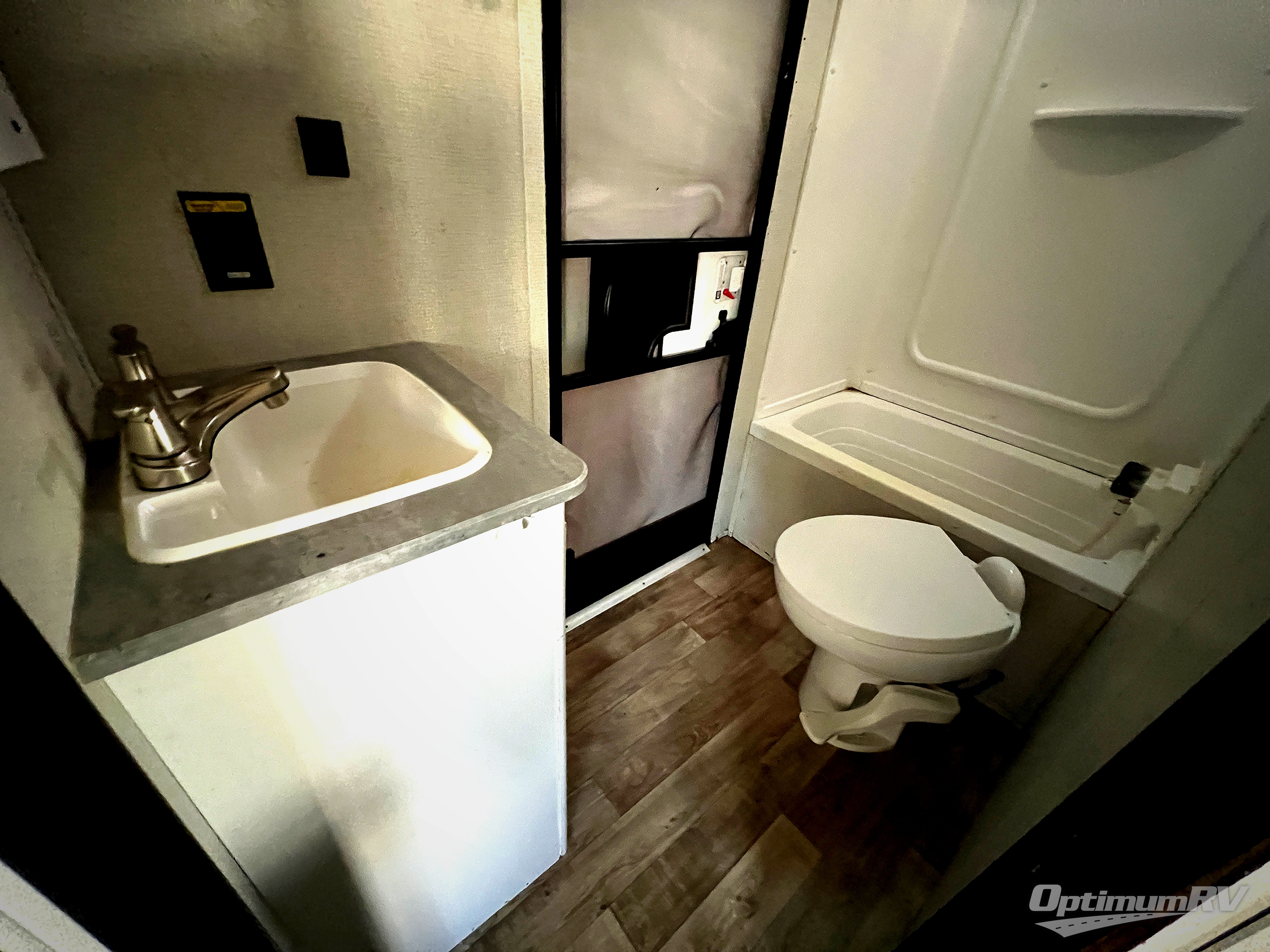Get away with ease in this Hideout travel trailer! You will have your own private place to sleep in each night with the private bedroom up front. This bedroom has a queen-size bed, closets and nightstands on either side of the bed, overhead cabinets, and a laundry chute. Just outside the bedroom is where the entertainment center is located. The entertainment center has been prepped for a fireplace, and you can add an optional 40" HDTV too. The large slide holds the booth dinette and jackknife sofa, and the central vacuum will help you clean up any messes that are made throughout the trip.